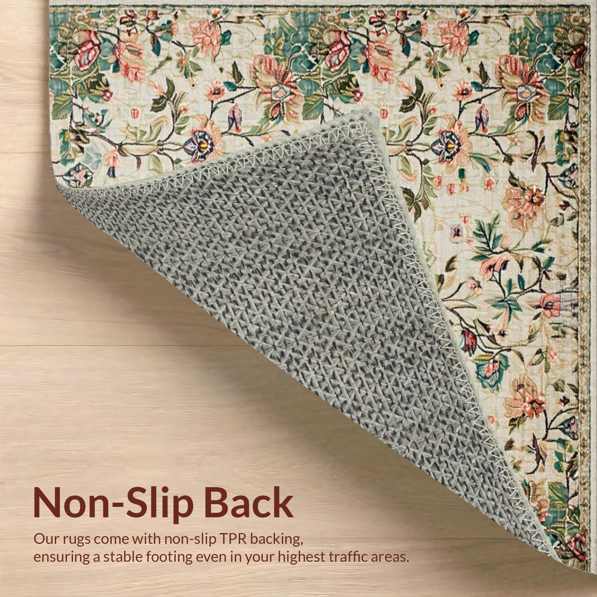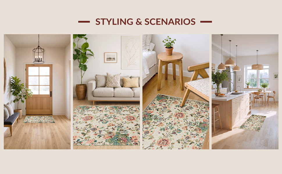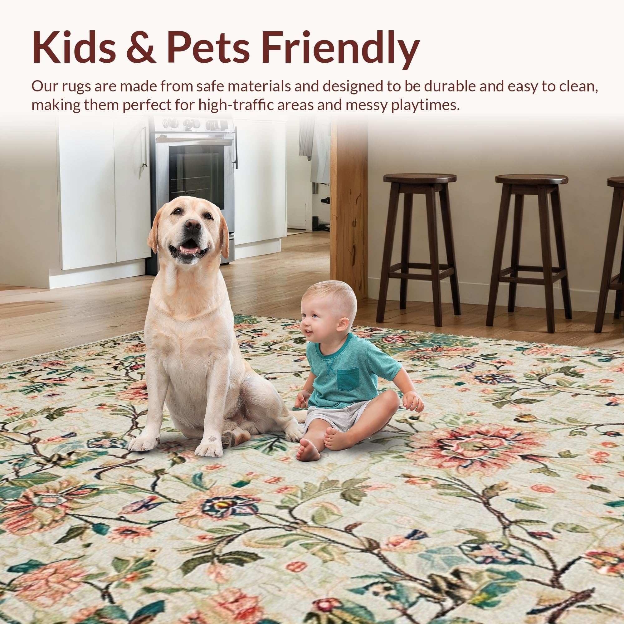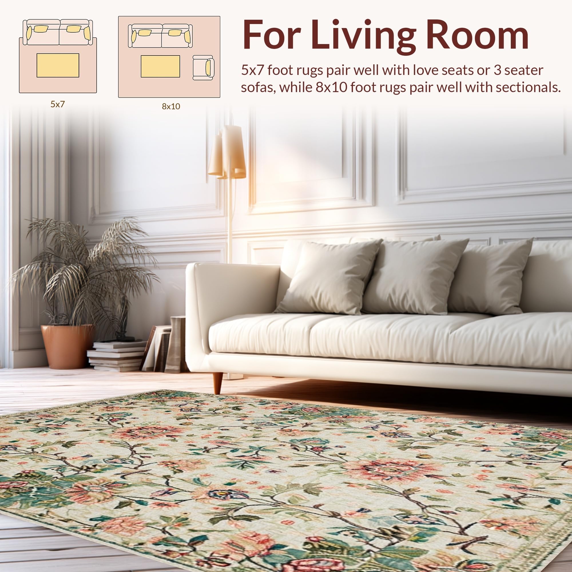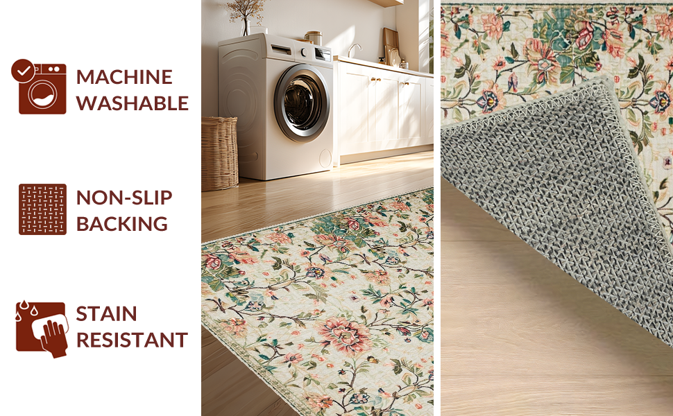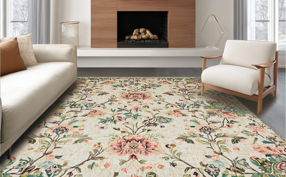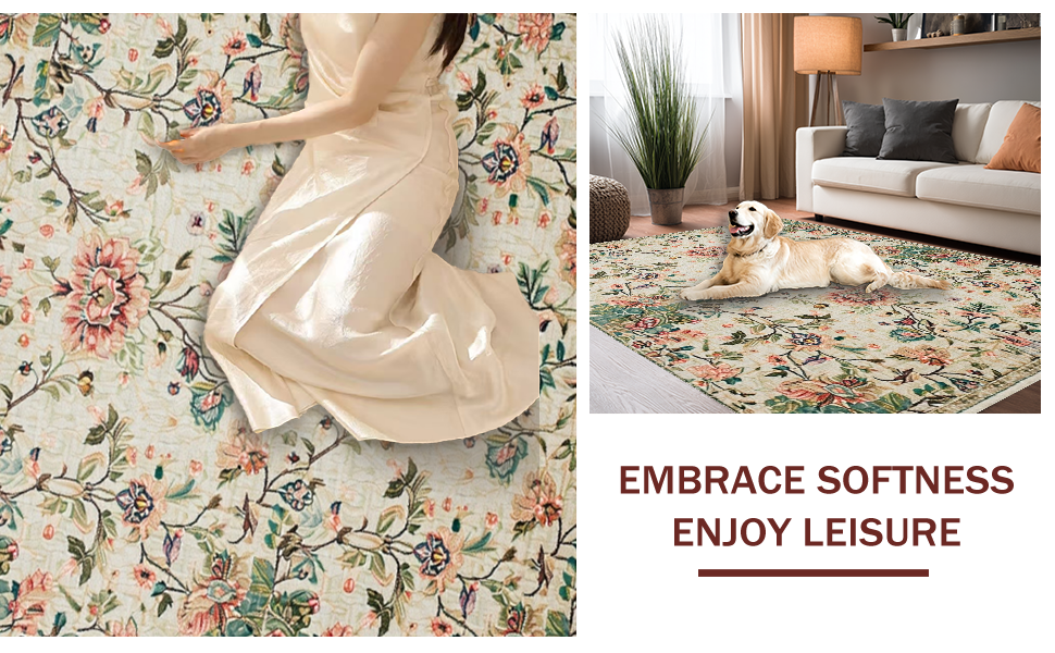Ultra Soft Area Rug, Non Slip, Stain Resistant, Washable Area Rugs for Living Room, Bedroom, Cozy Warm Tones Floral Pattern(Beige) Overview: