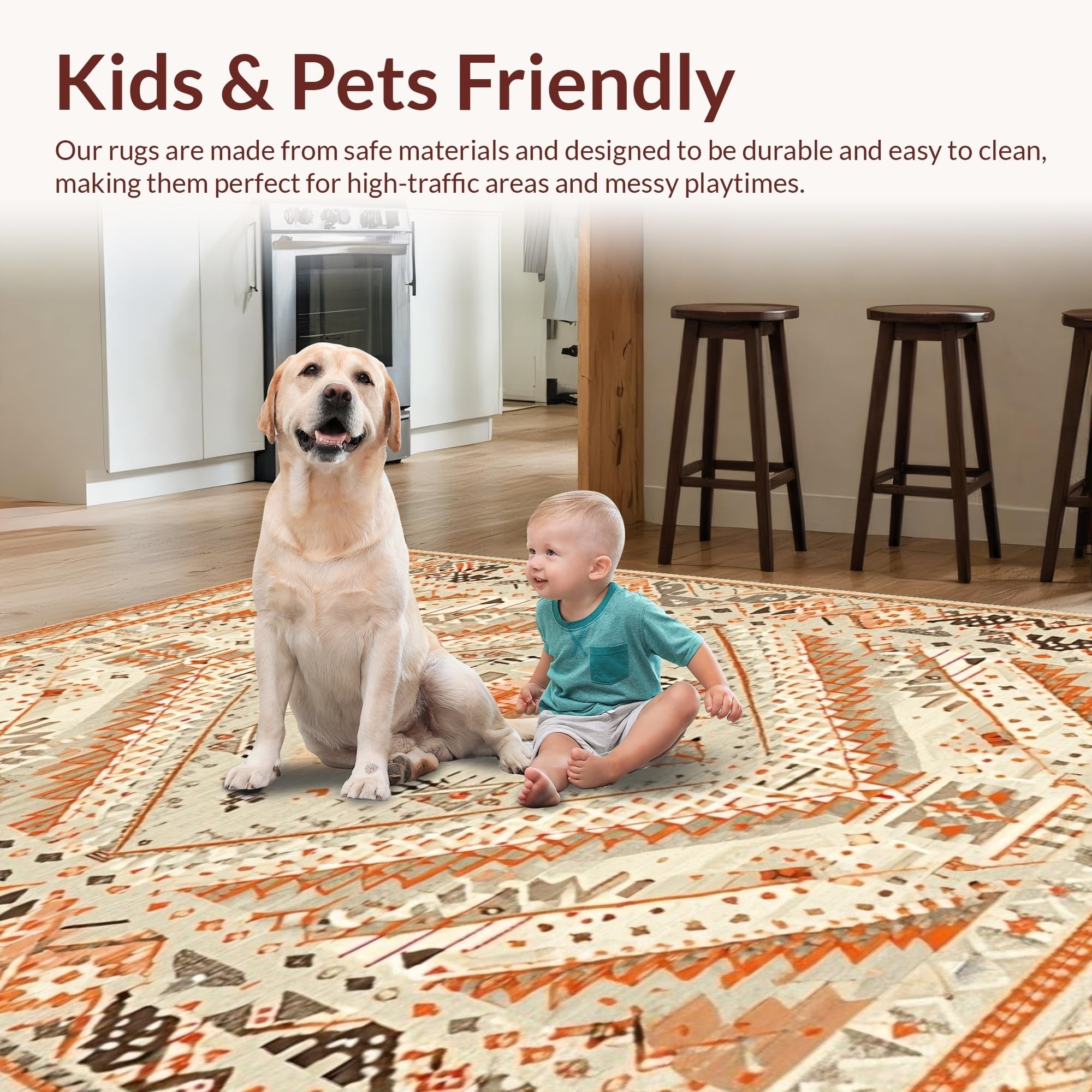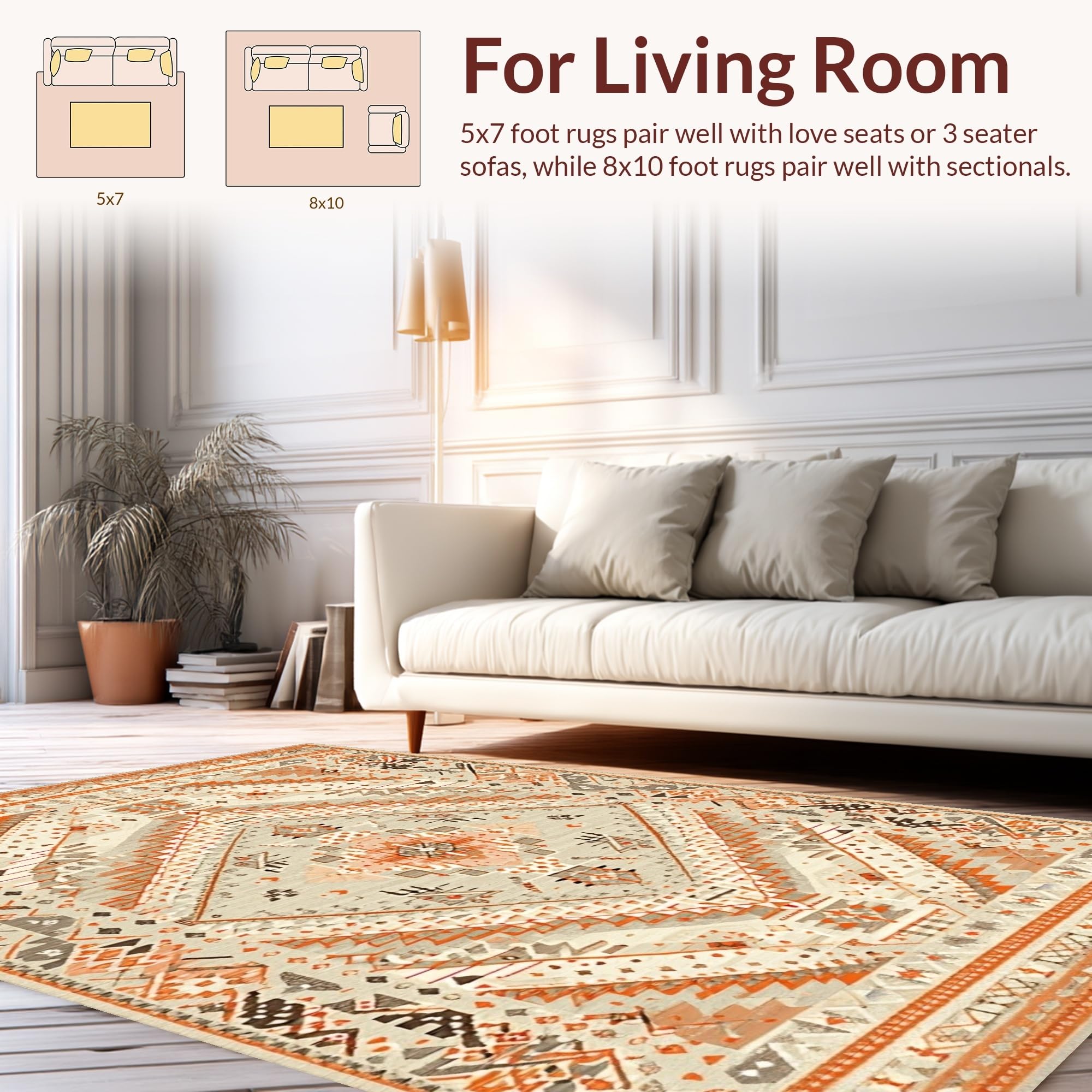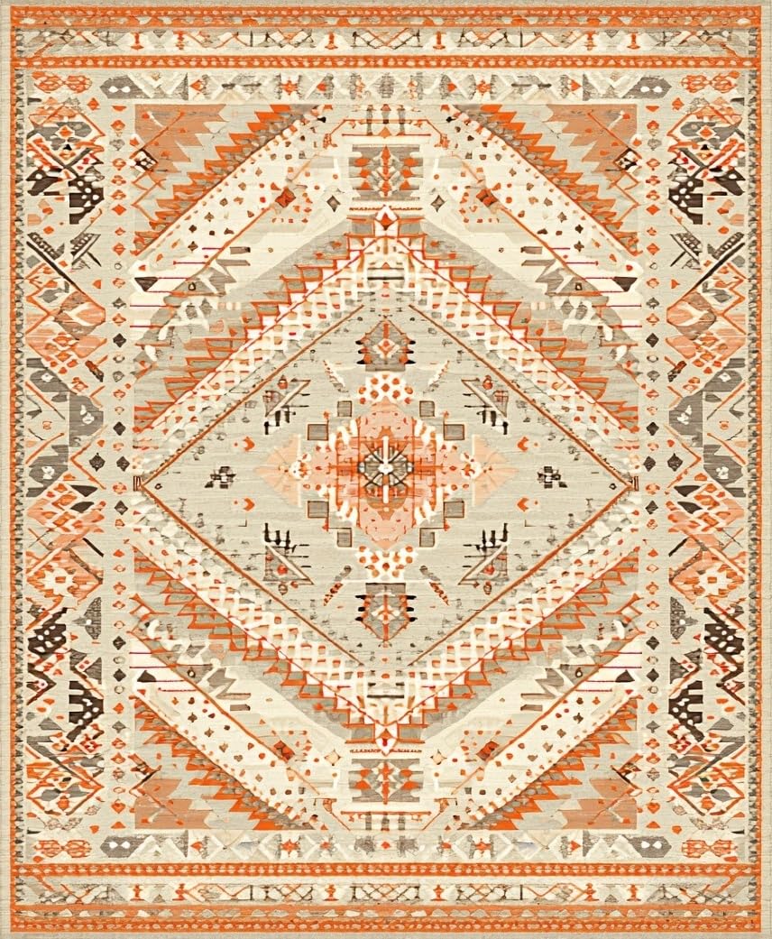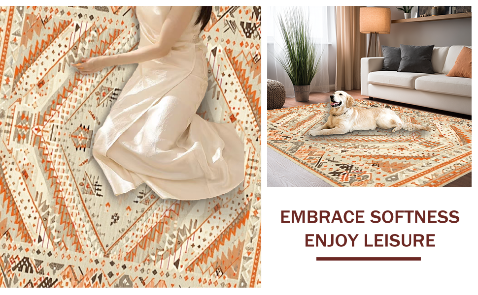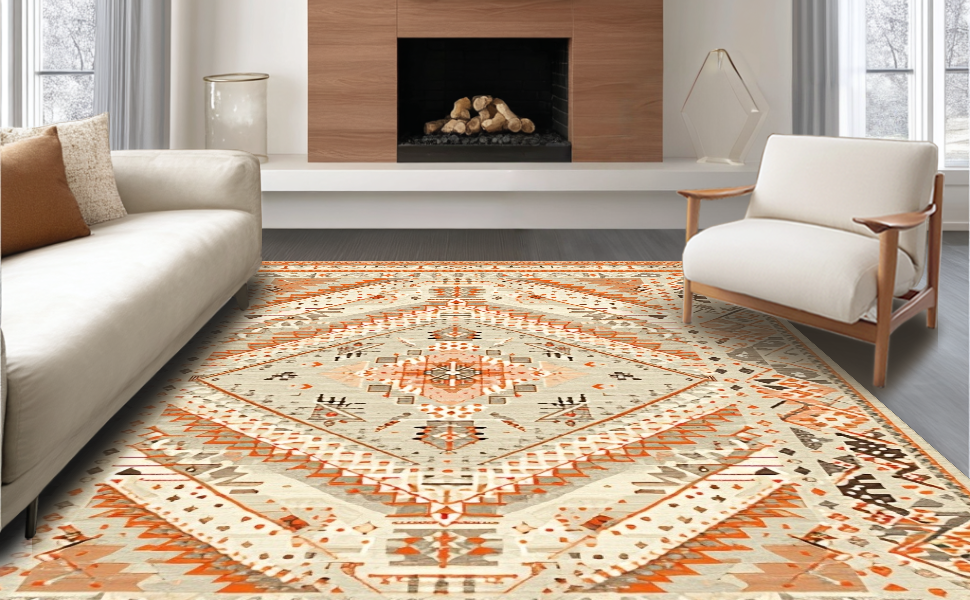 Ultra Soft Area Rug, Non Slip, Stain Resistant, Washable Area Rugs for Living Room, Bedroom, Cozy Warm Tones Geometric Theme(Beige) Overview: