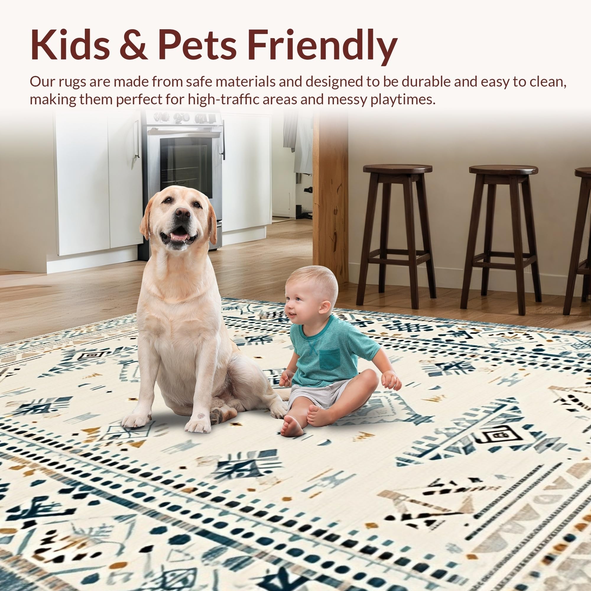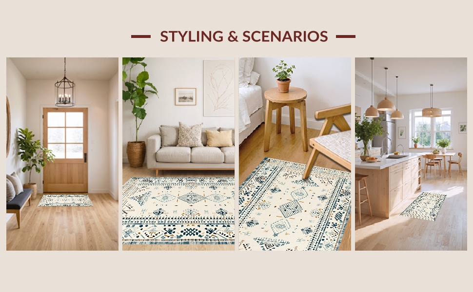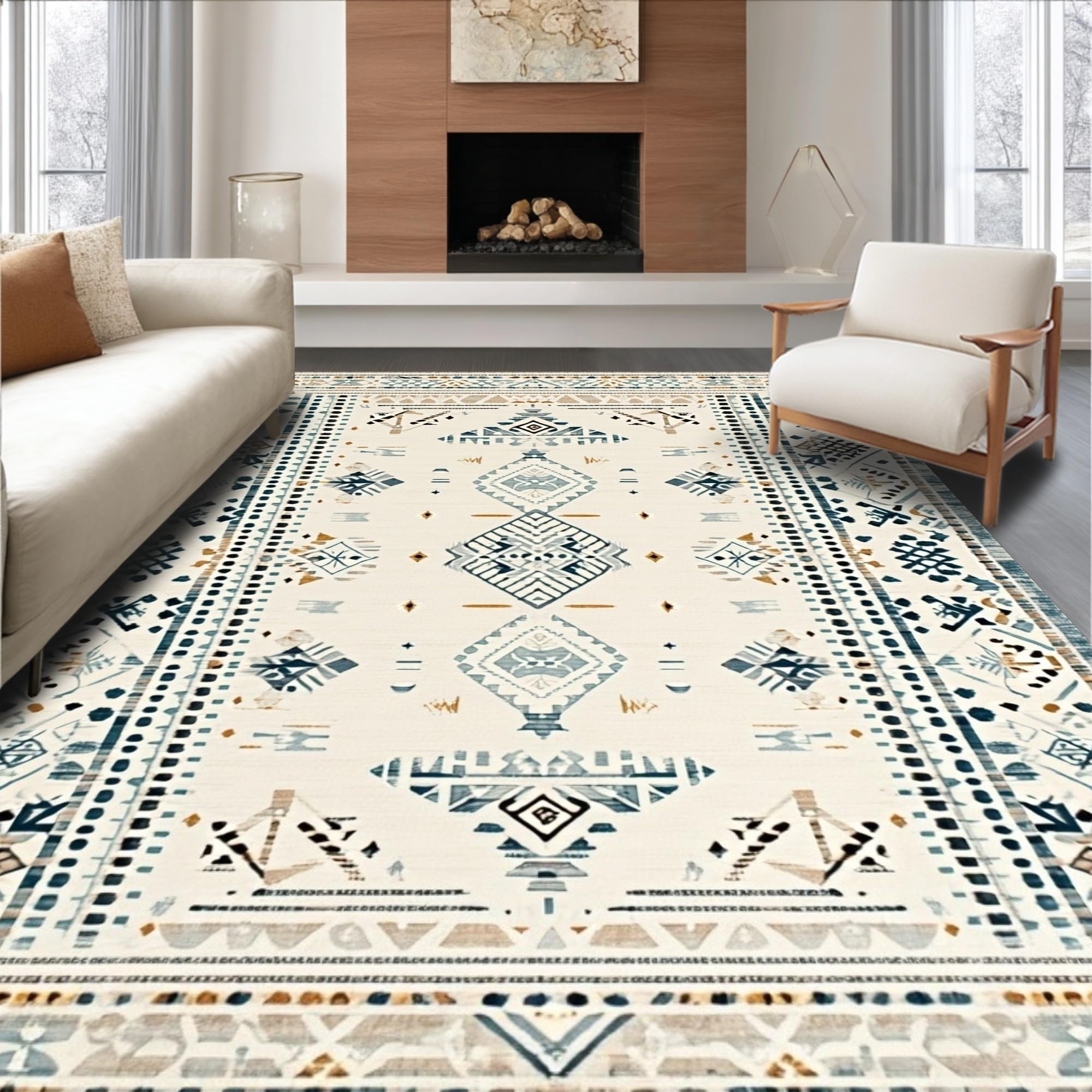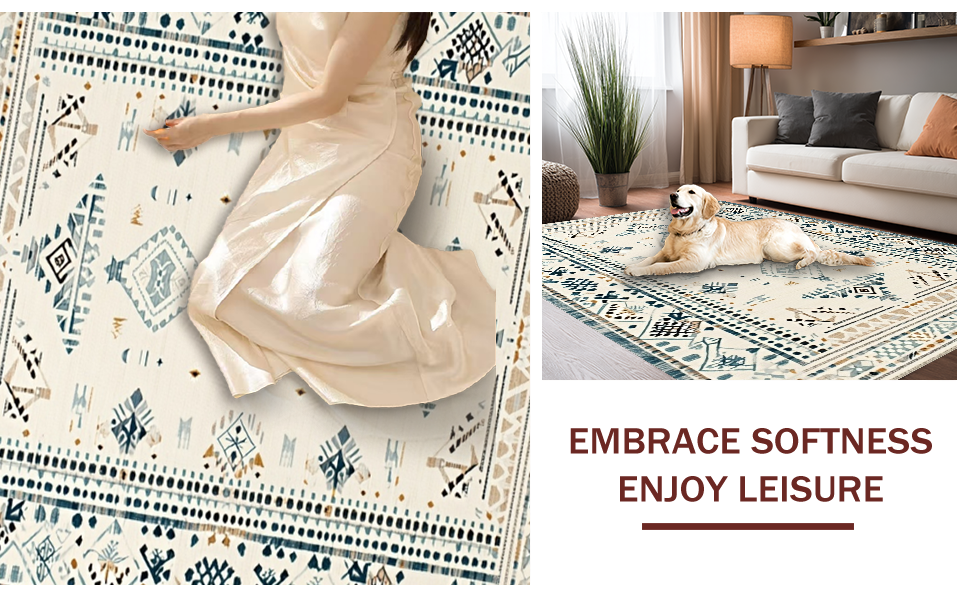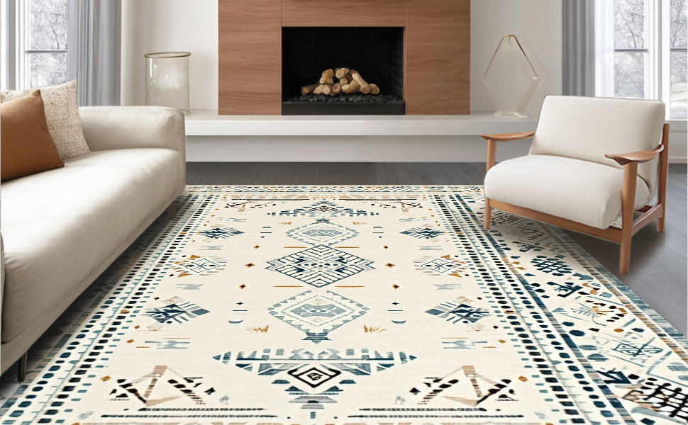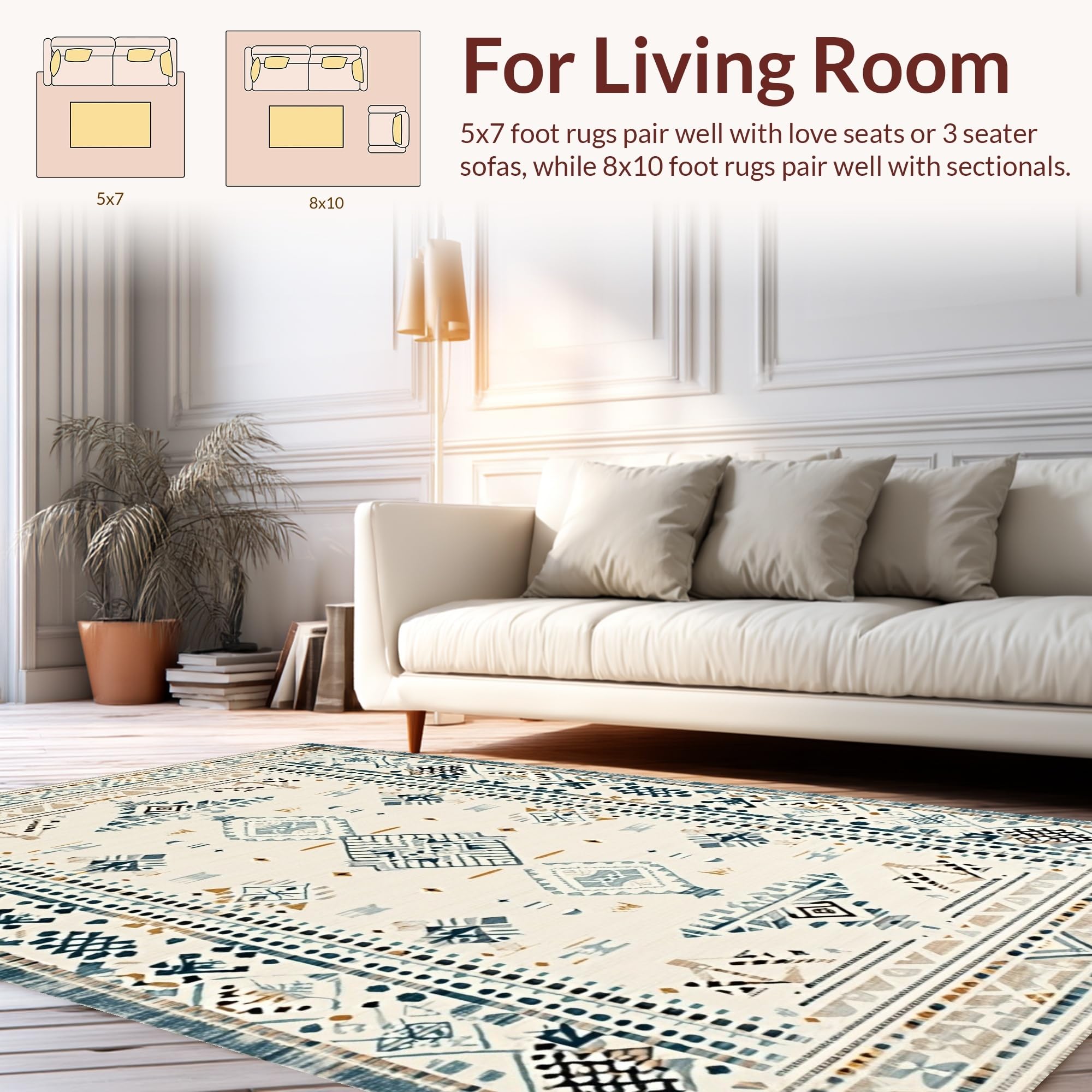 Ultra Soft Area Rug, Non Slip, Stain Resistant, Washable Area Rugs for Living Room, Bedroom, Cozy Woven Rustic Aesthetic(Beige) Overview: