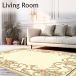 Ultra Soft Area Rug, Non Slip, Stain Resistant, Washable Area Rugs for Living Room, Bedroom, Cream and Beige Ornamental Swirl with Sophisticated Floral Accents(Beige) Overview: