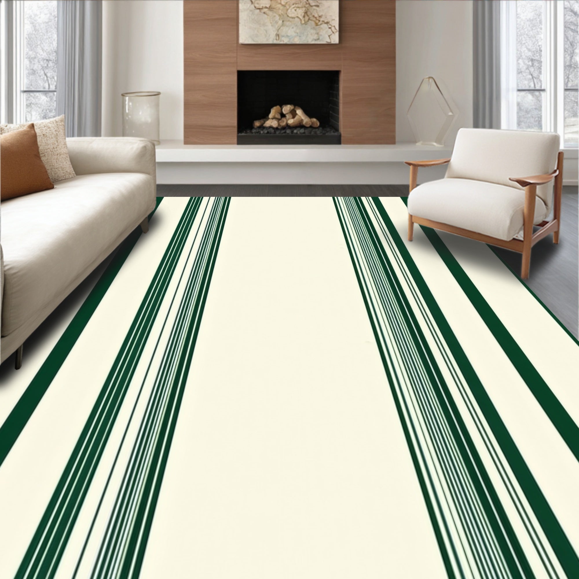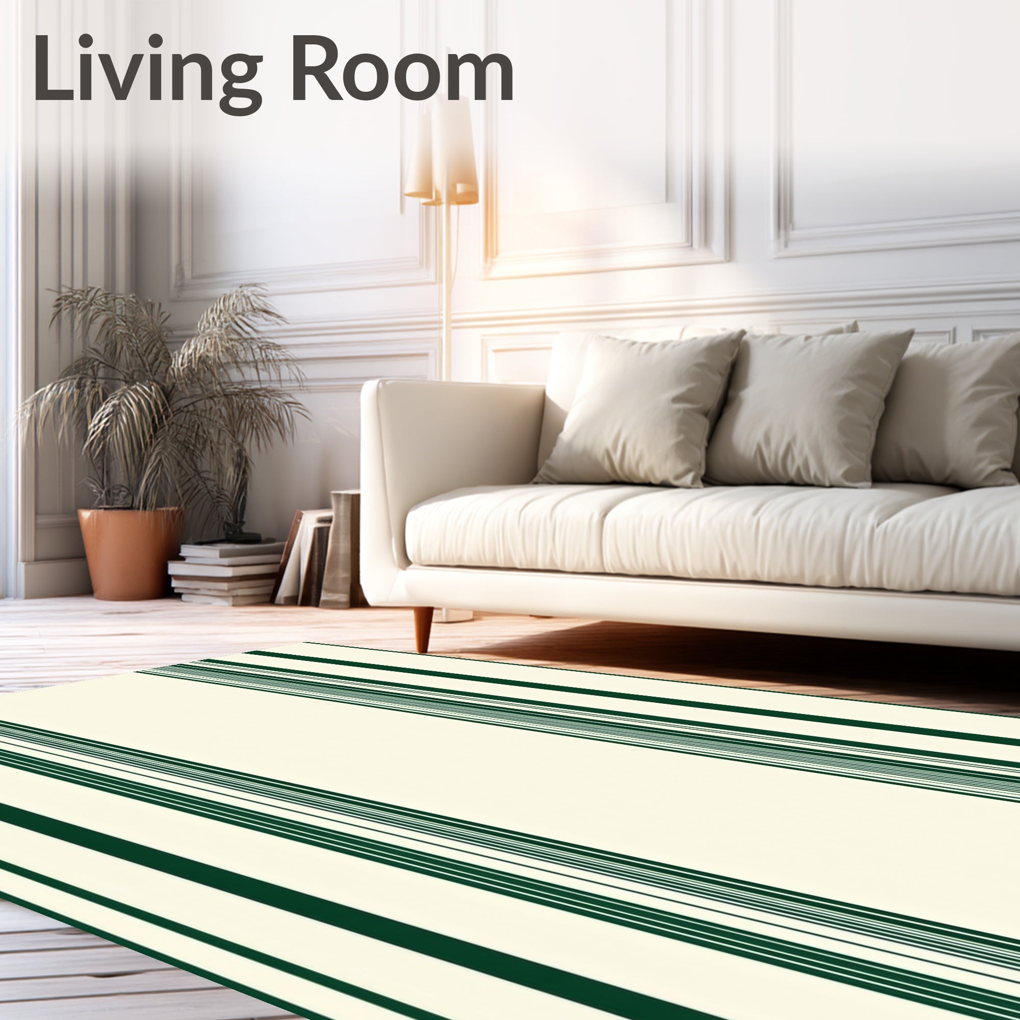 Flatwoven High Traffic Area Rug, Cream and Green Stripe, Non Slip, Stain Resistant, Washable Area Rugs for Living Room, Bedroom (Beige) Overview: