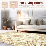 Ultra Soft Area Rug, Non Slip, Stain Resistant, Washable Area Rugs for Living Room, Bedroom, Cream Dream Vintage Inspired Floral Medallion Motif(Beige) Overview: