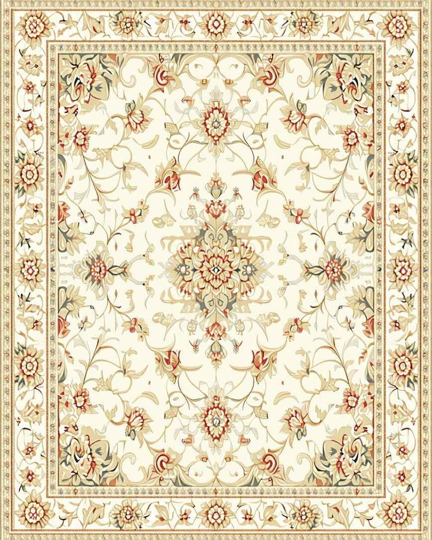 Cream Dream Vintage Inspired Floral Medallion Motif(Beige)