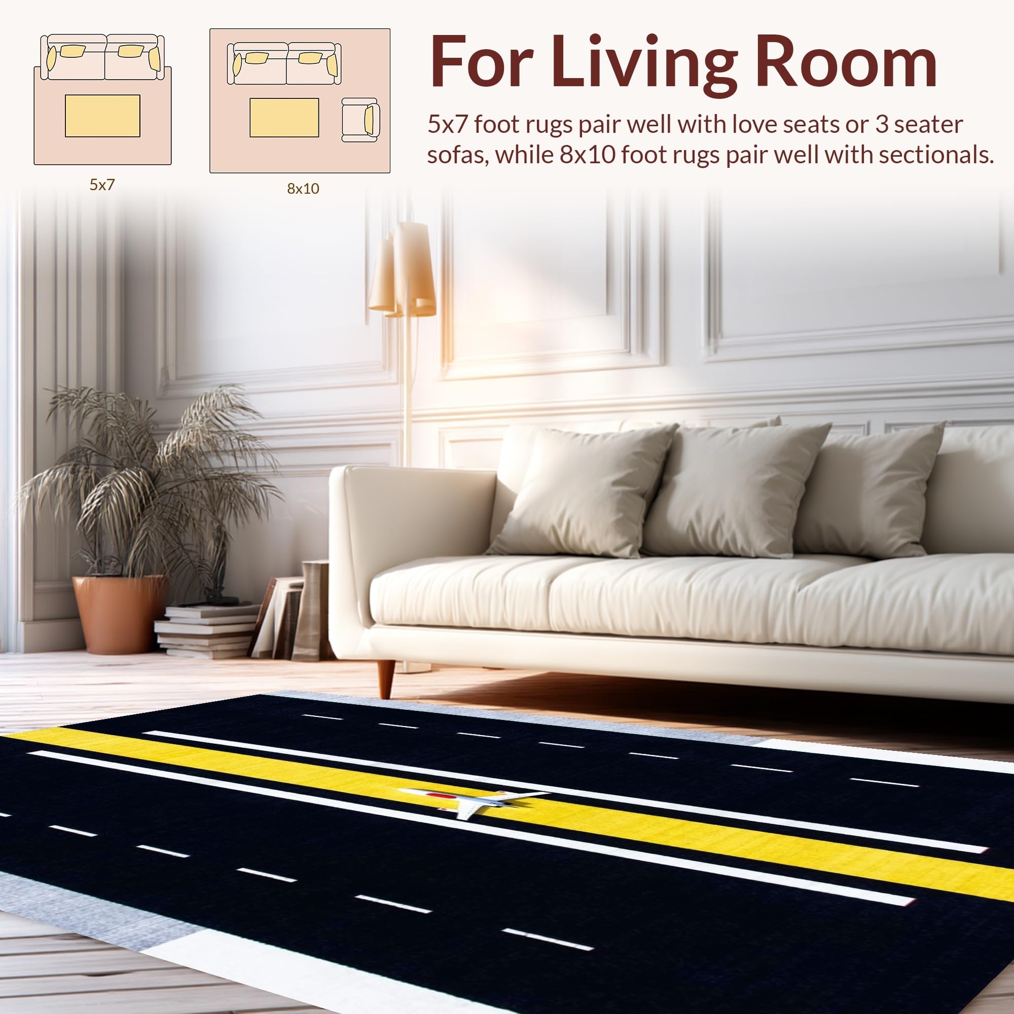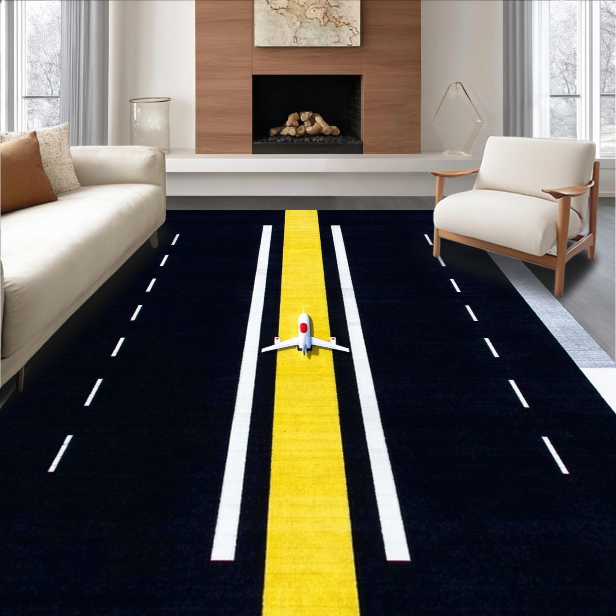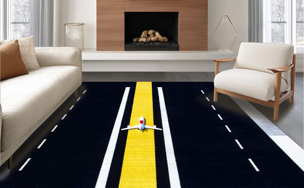 Ultra Soft Area Rug, Non Slip, Stain Resistant, Washable Area Rugs for Living Room, Bedroom, Creative Travel Adventure Design Textile(Black) Overview: