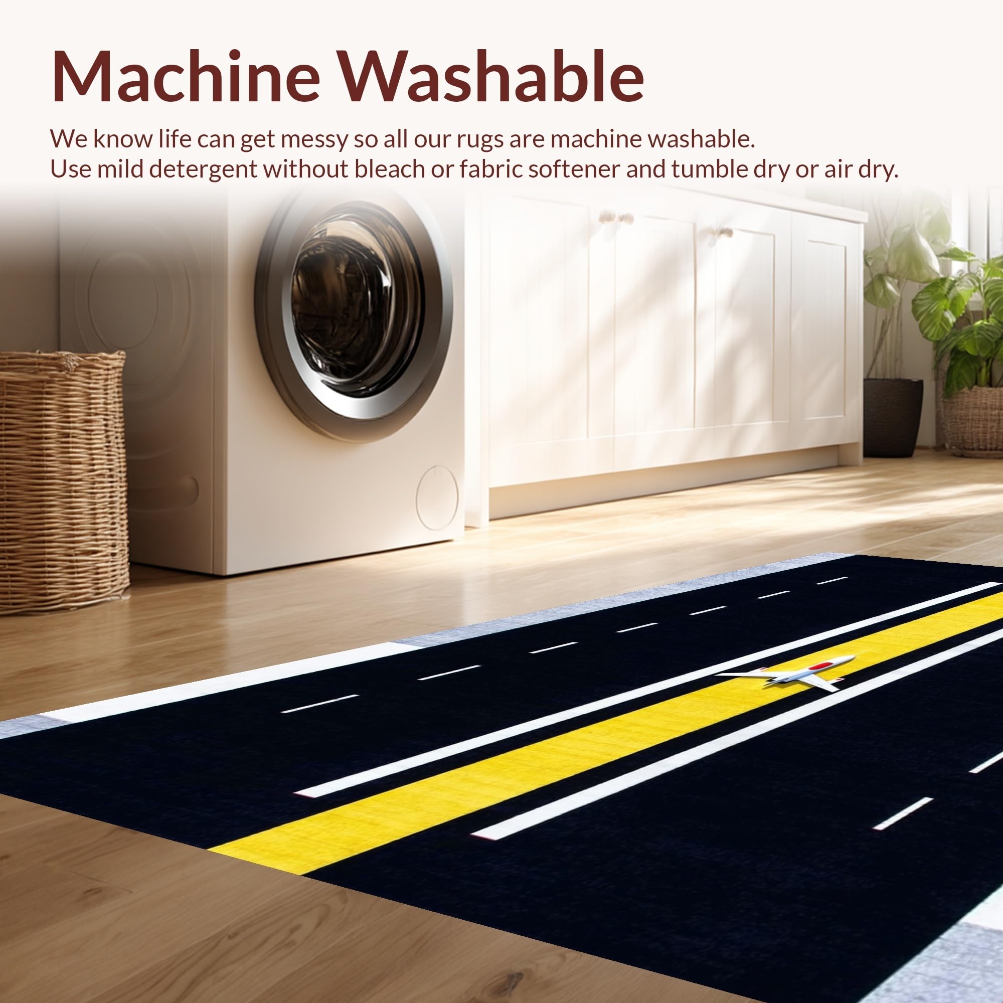 - Machine Washable: Our rugs can be easily thrown in the wash machine.