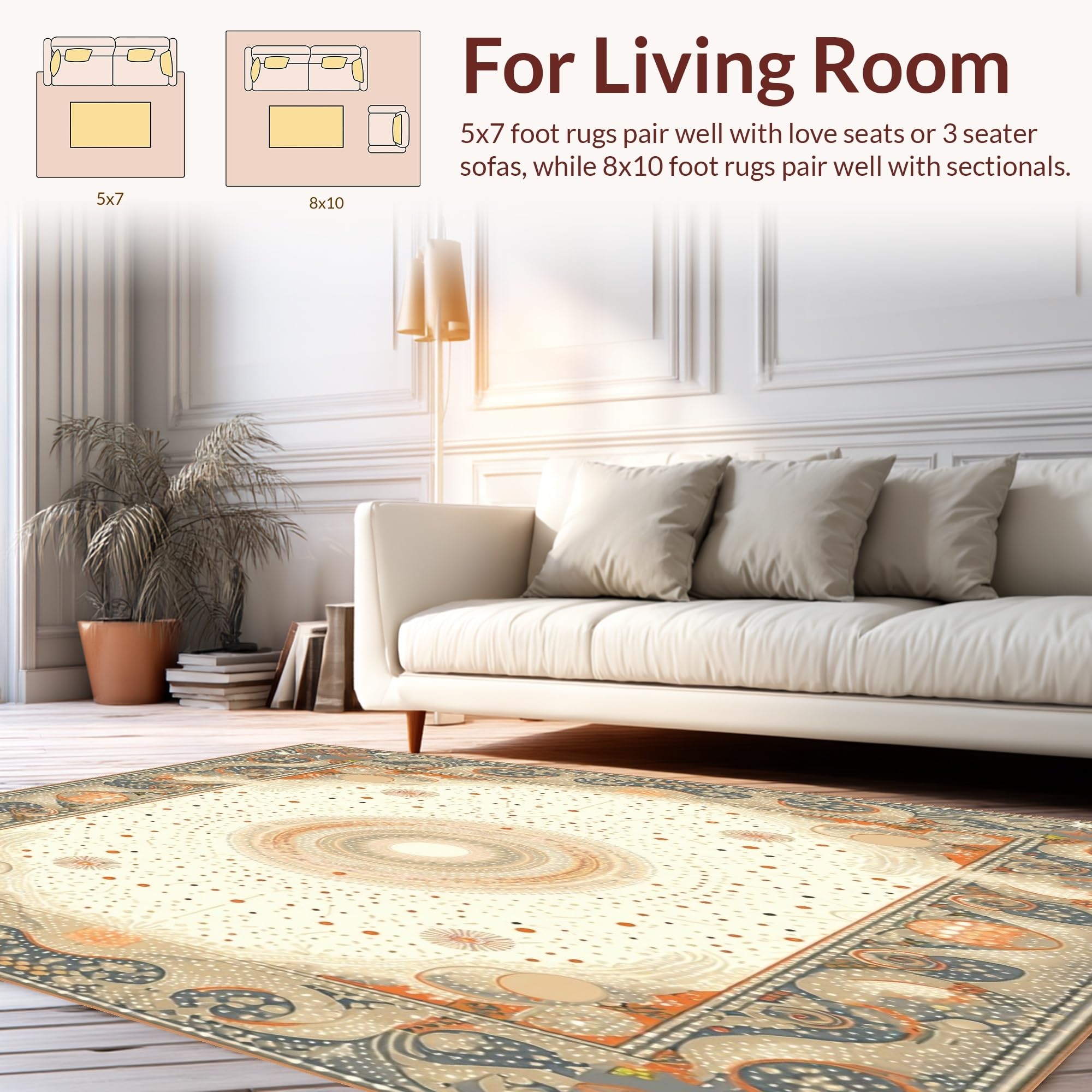 Ultra Soft Area Rug, Non Slip, Stain Resistant, Washable Area Rugs for Living Room, Bedroom, Crescent Moon Area Mystical(Beige) Overview: