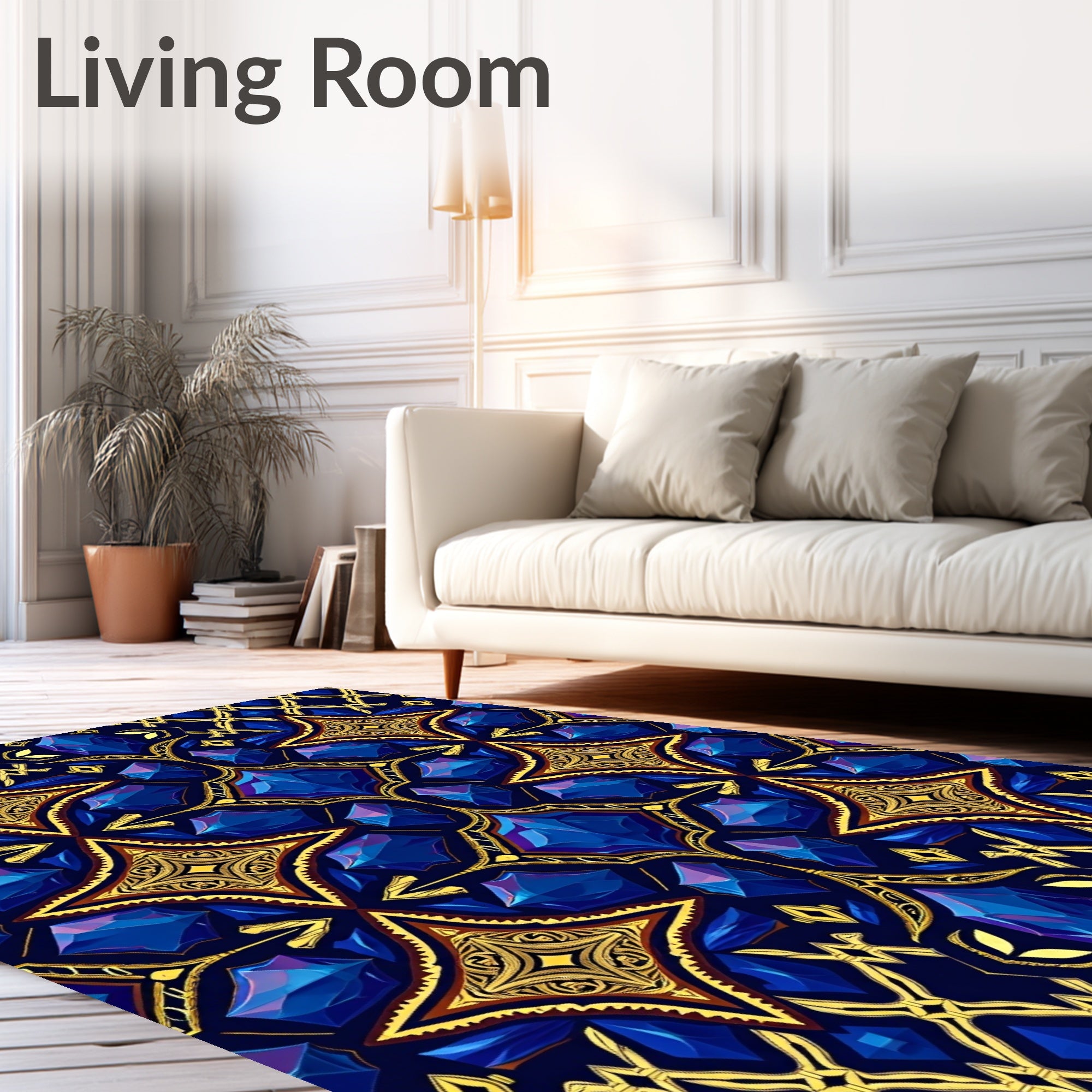 Flatwoven High Traffic Area Rug, Crystalline Precious Stone Jewel Luxury Accent, Non Slip, Stain Resistant, Washable Area Rugs for Living Room, Bedroom (Blue) Overview: