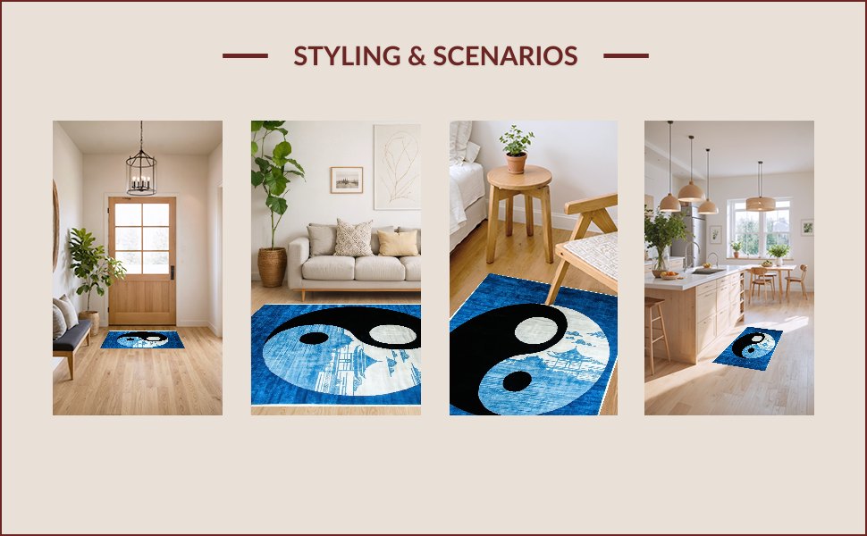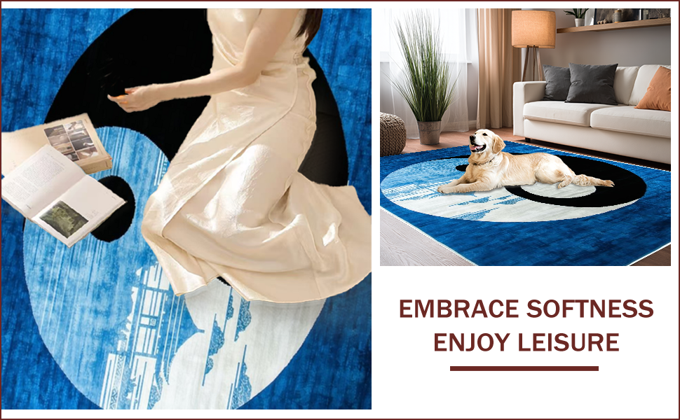 Ultra Soft Area Rug, Non Slip, Stain Resistant, Washable Area Rugs for Living Room, Bedroom, Cultural Harmony Circular Motif(Blue) Overview: