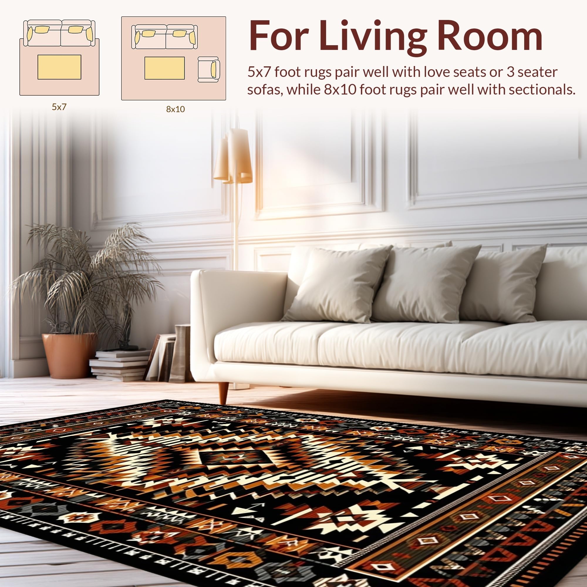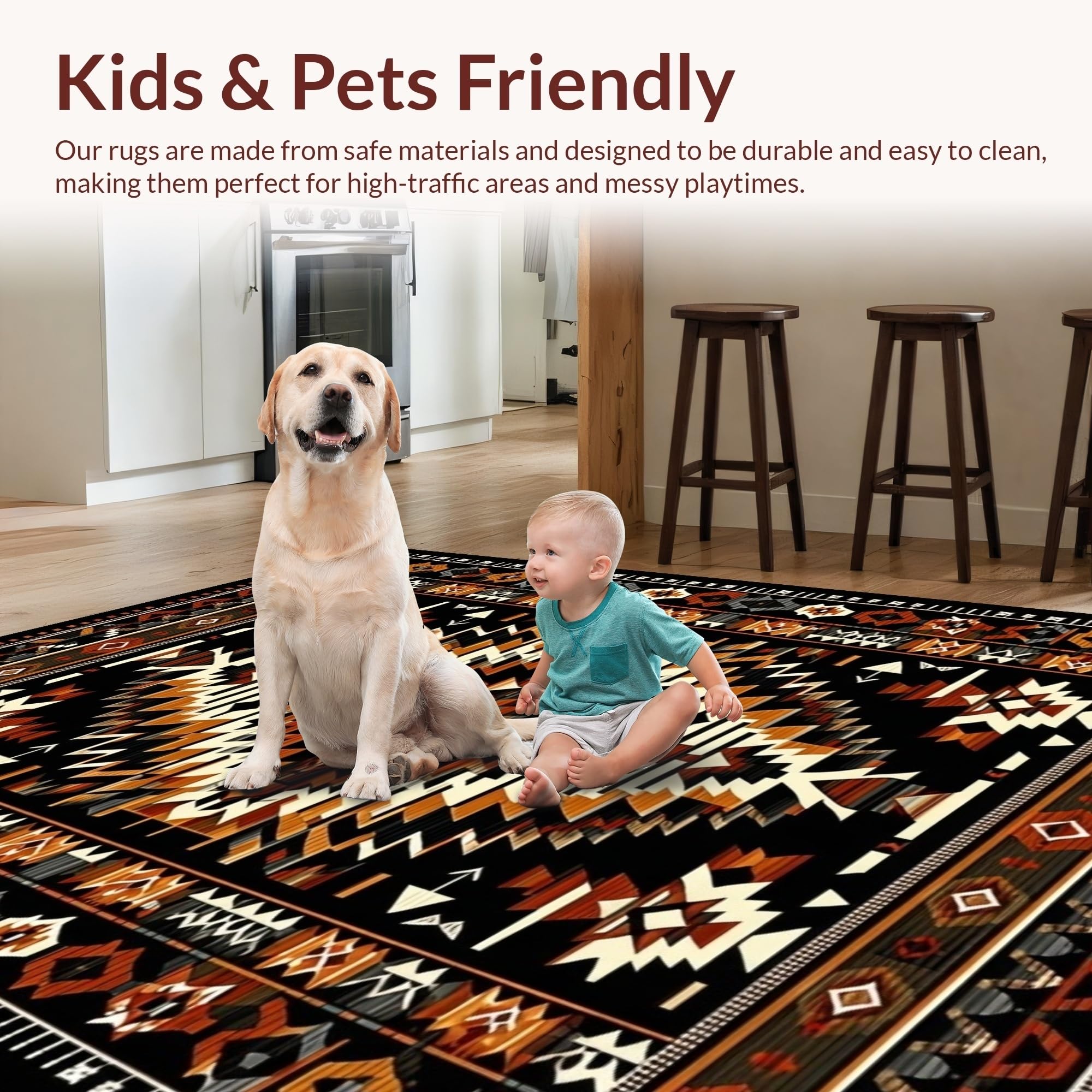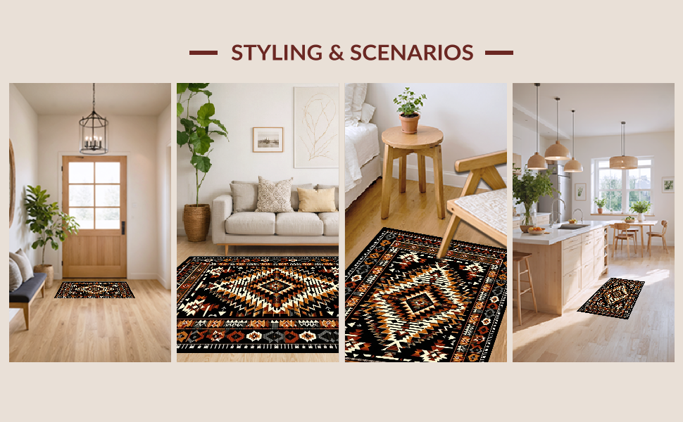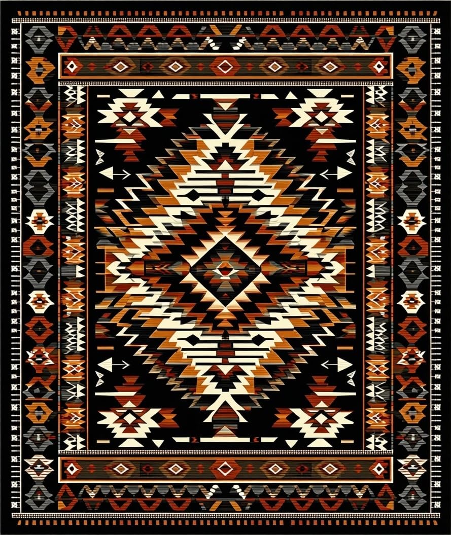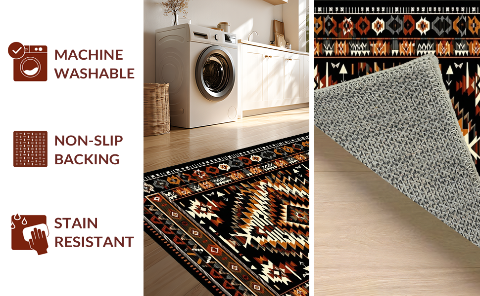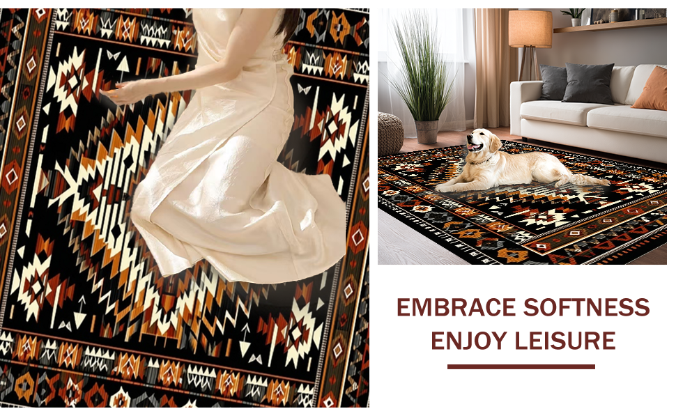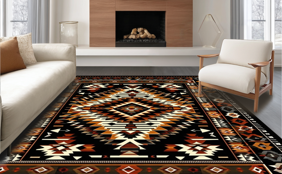 Ultra Soft Area Rug, Non Slip, Stain Resistant, Washable Area Rugs for Living Room, Bedroom, Cultural Heritage in Contemporary Design(Black) Overview: