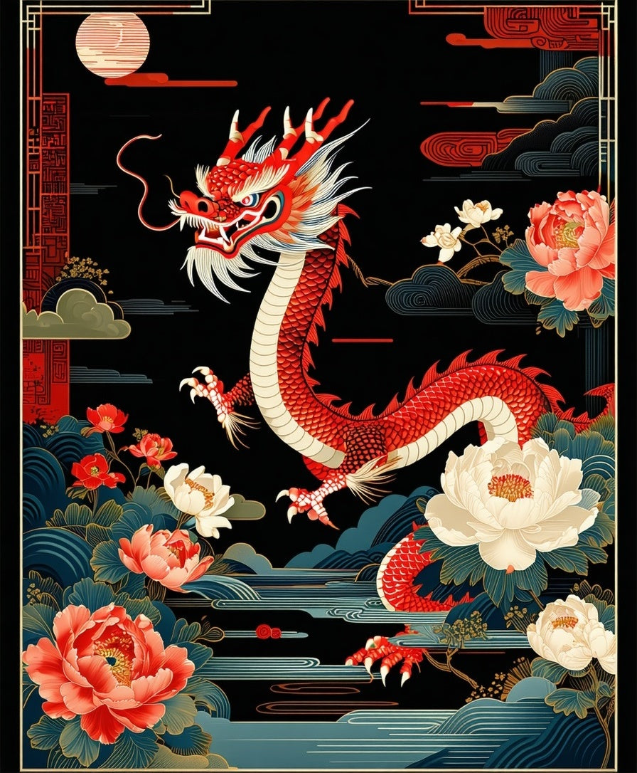 Flatwoven High Traffic Area Rug, Cultural Symbolic Dragon Flourish, Non Slip, Stain Resistant, Washable Area Rugs for Living Room, Bedroom (Red) Overview: