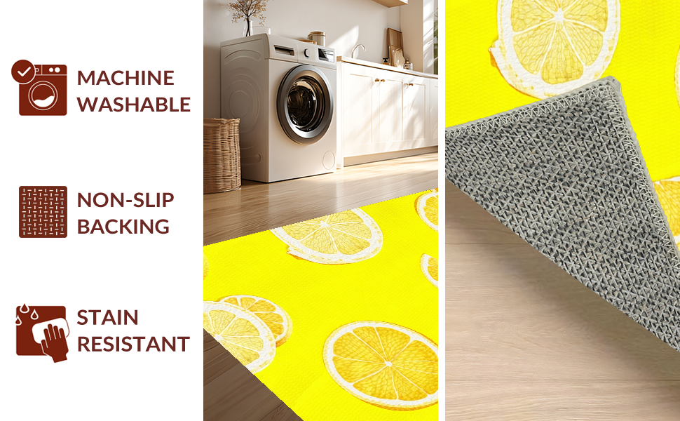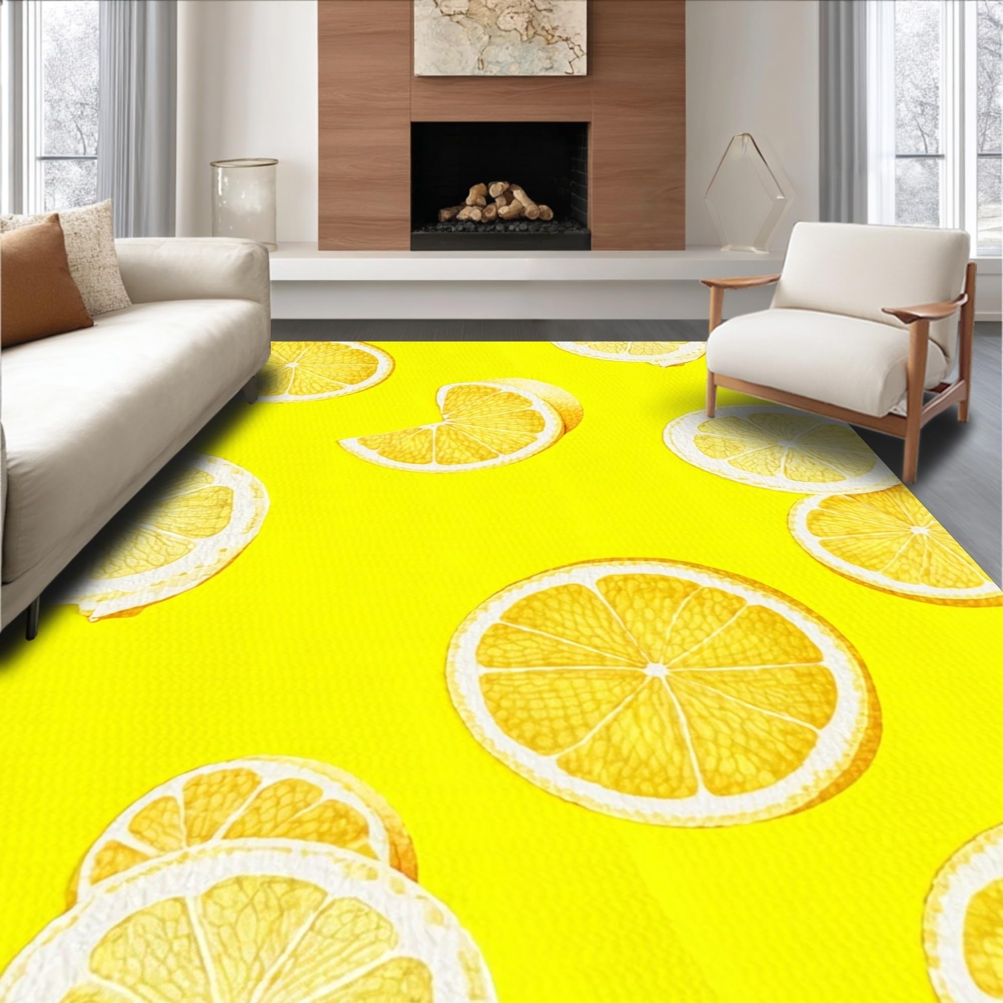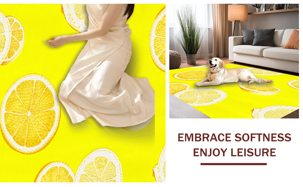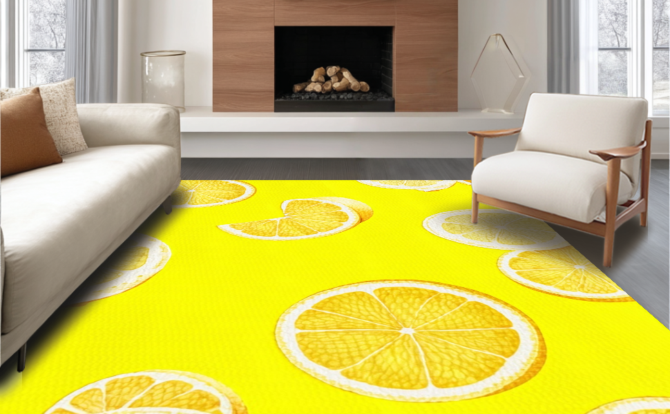 Ultra Soft Area Rug, Non Slip, Stain Resistant, Washable Area Rugs for Living Room, Bedroom, Cute Abstract Lemon Artistry(Yellow) Overview: