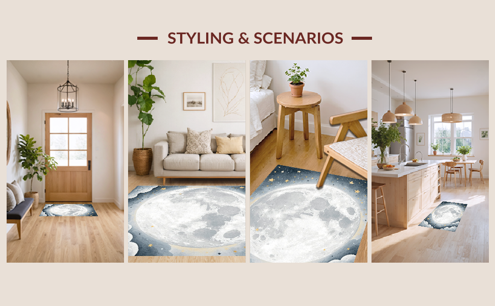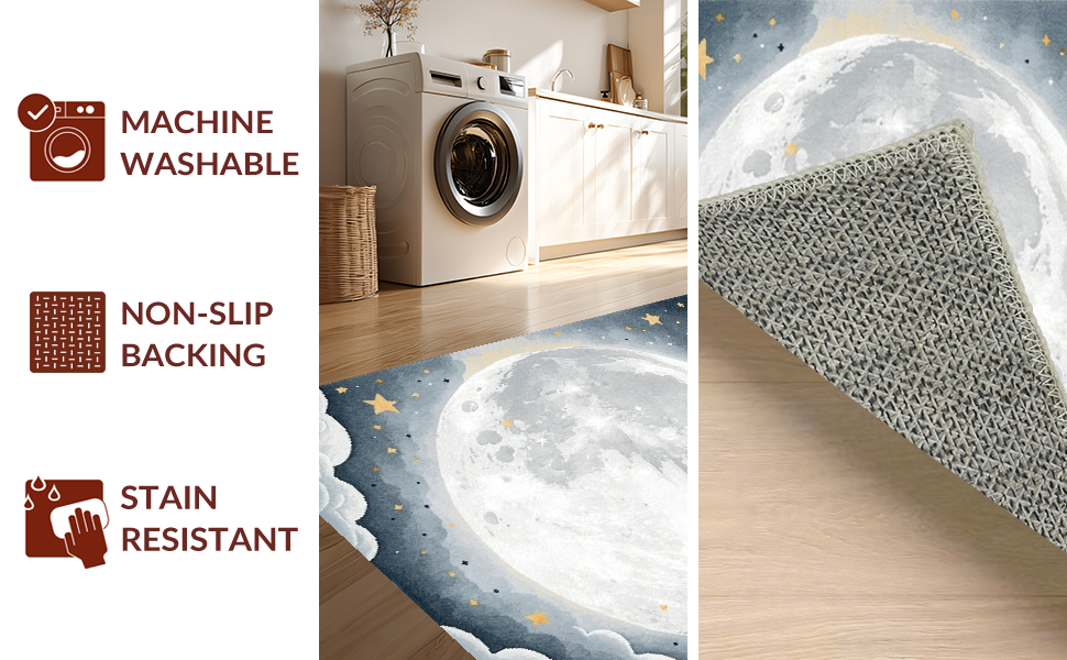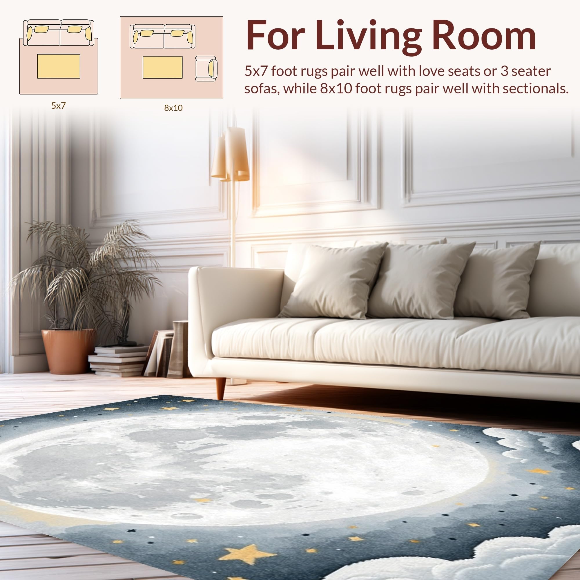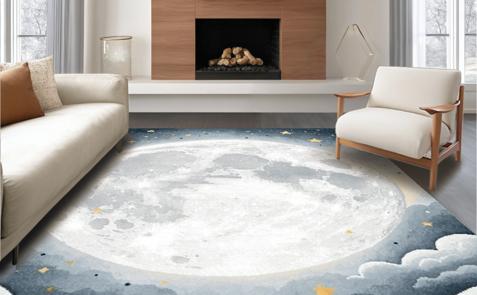 Ultra Soft Area Rug, Non Slip, Stain Resistant, Washable Area Rugs for Living Room, Bedroom, Cute Abstract Night Sky Elements(Gray) Overview: