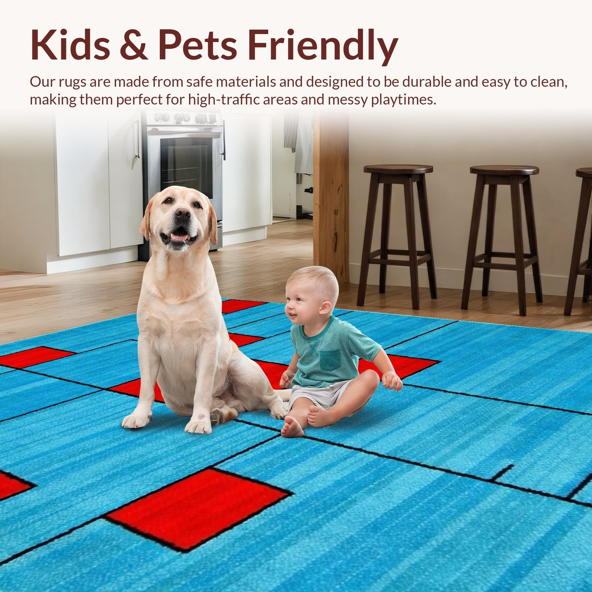 Ultra Soft Area Rug, Non Slip, Stain Resistant, Washable Area Rugs for Living Room, Bedroom, Cute Animated Creature Pattern(Blue) Overview: