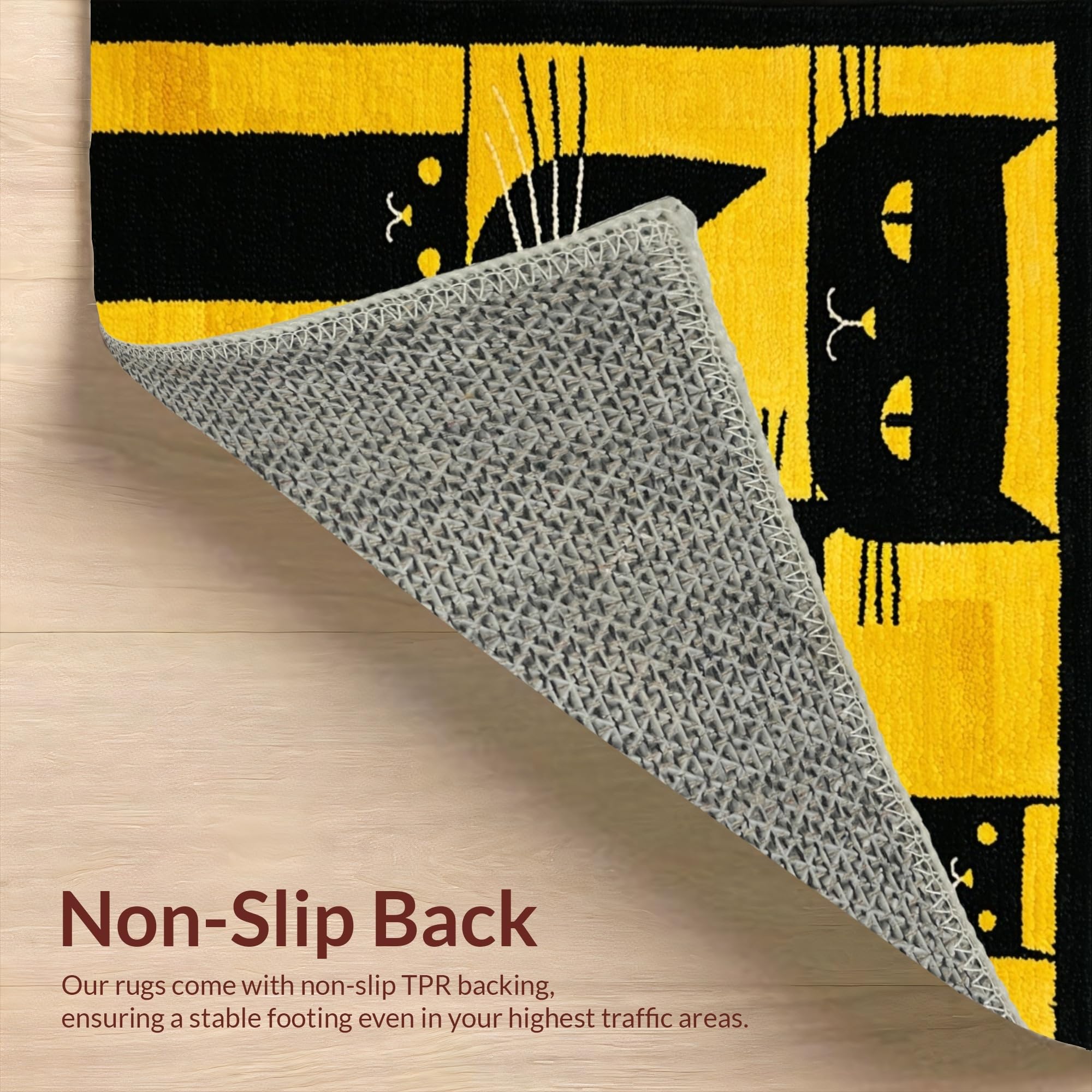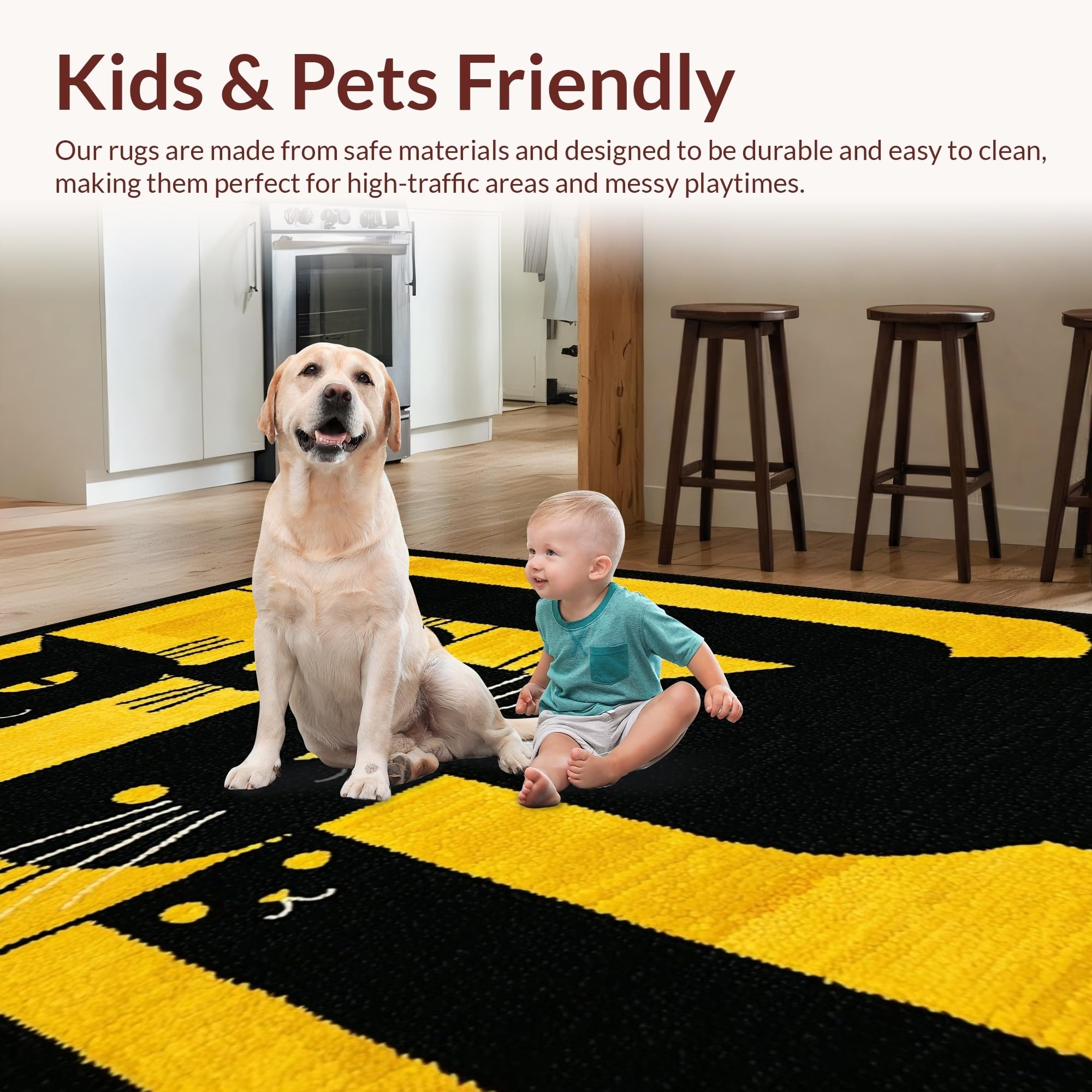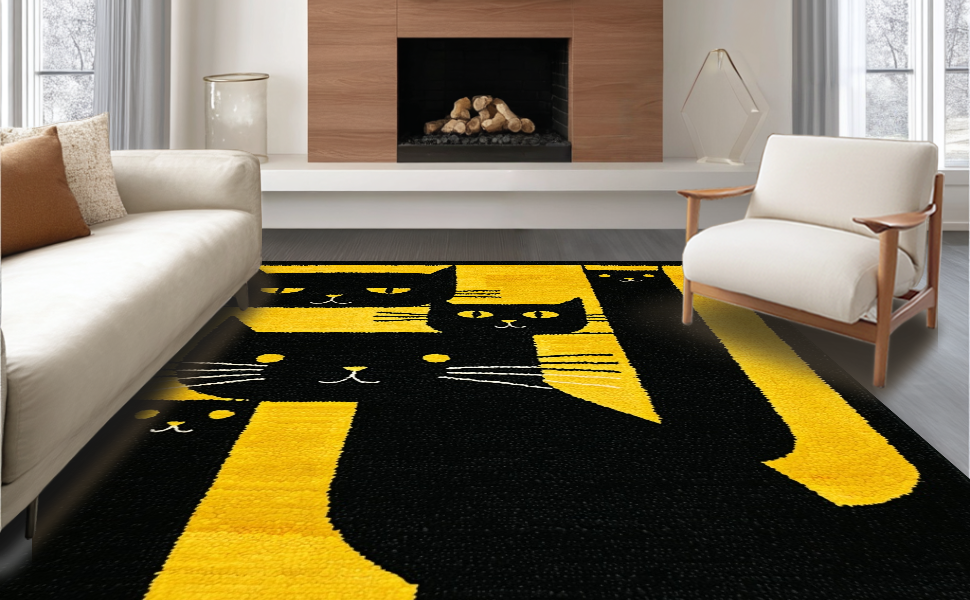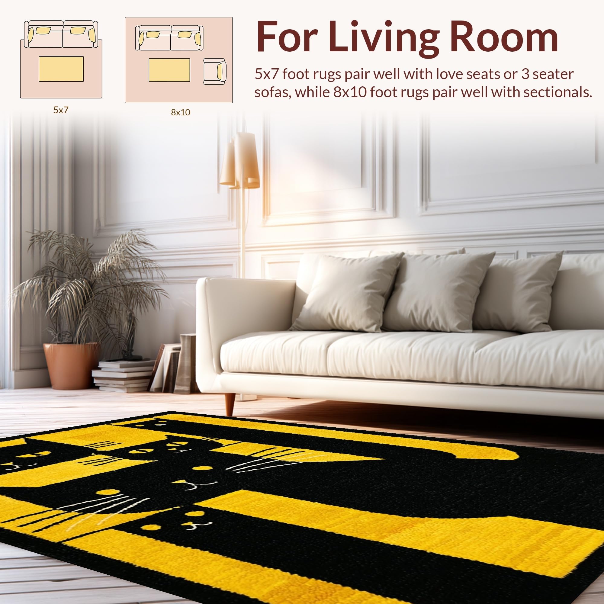 Ultra Soft Area Rug, Non Slip, Stain Resistant, Washable Area Rugs for Living Room, Bedroom, Cute Black Cat Graphic Theme(Black) Overview: