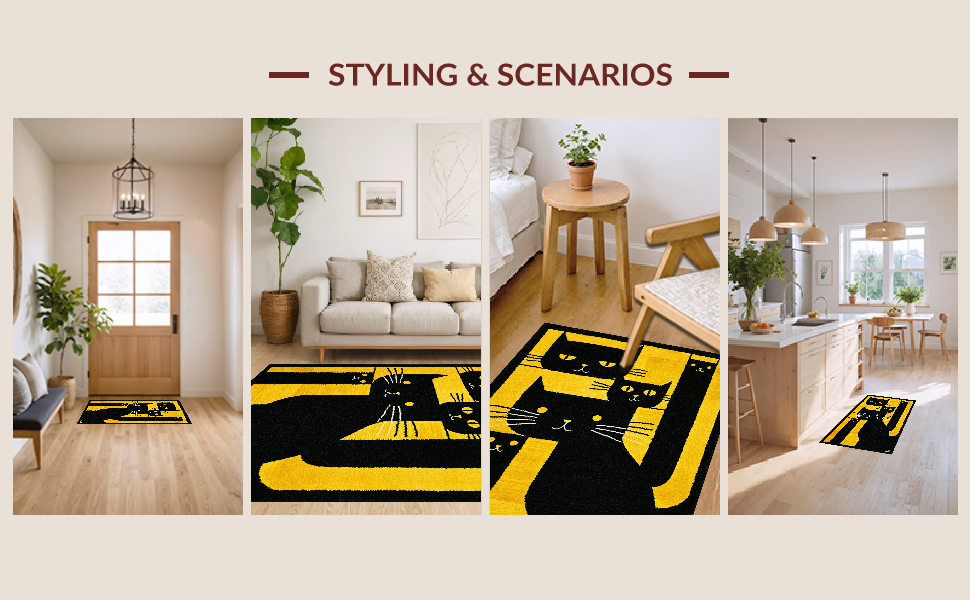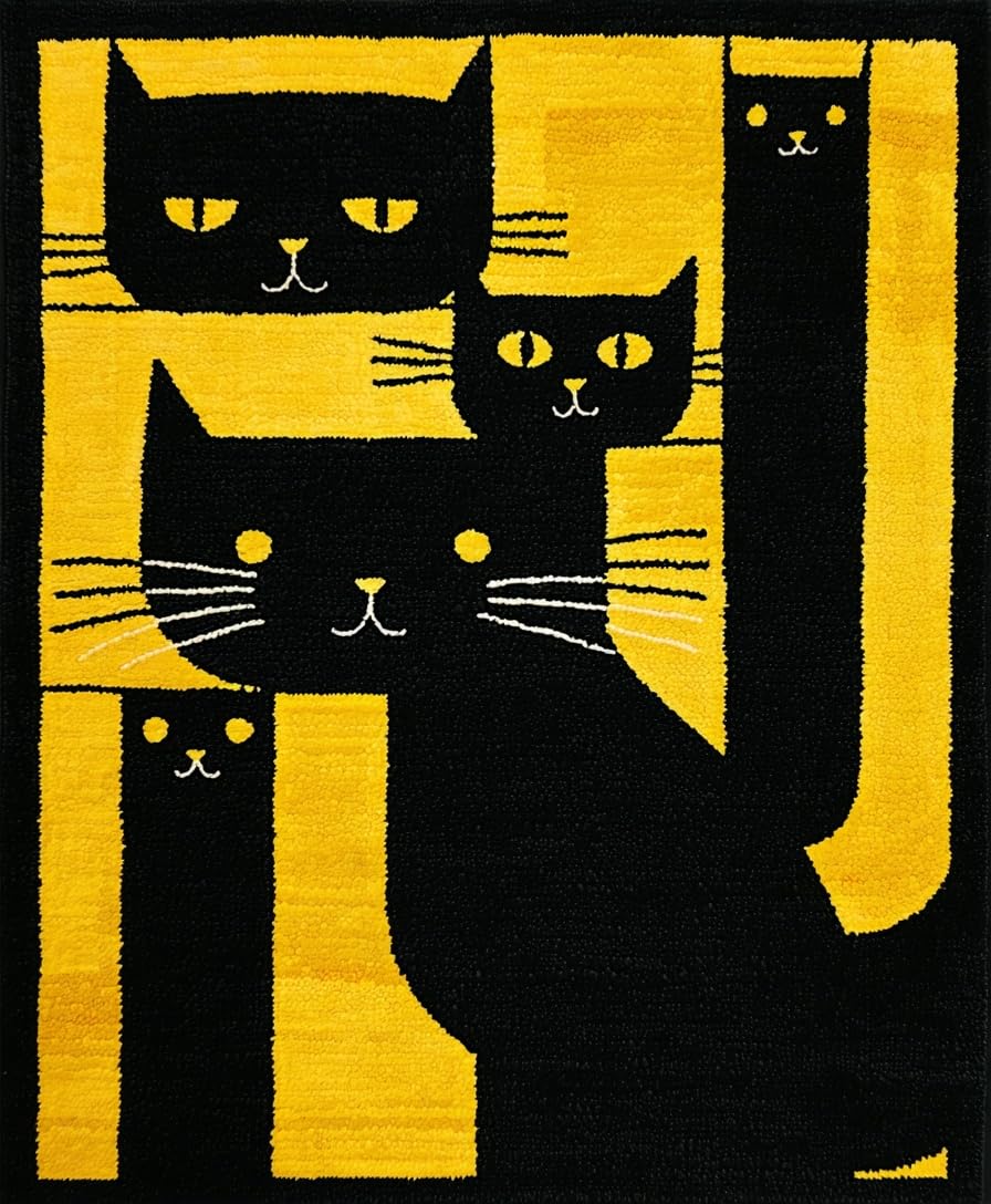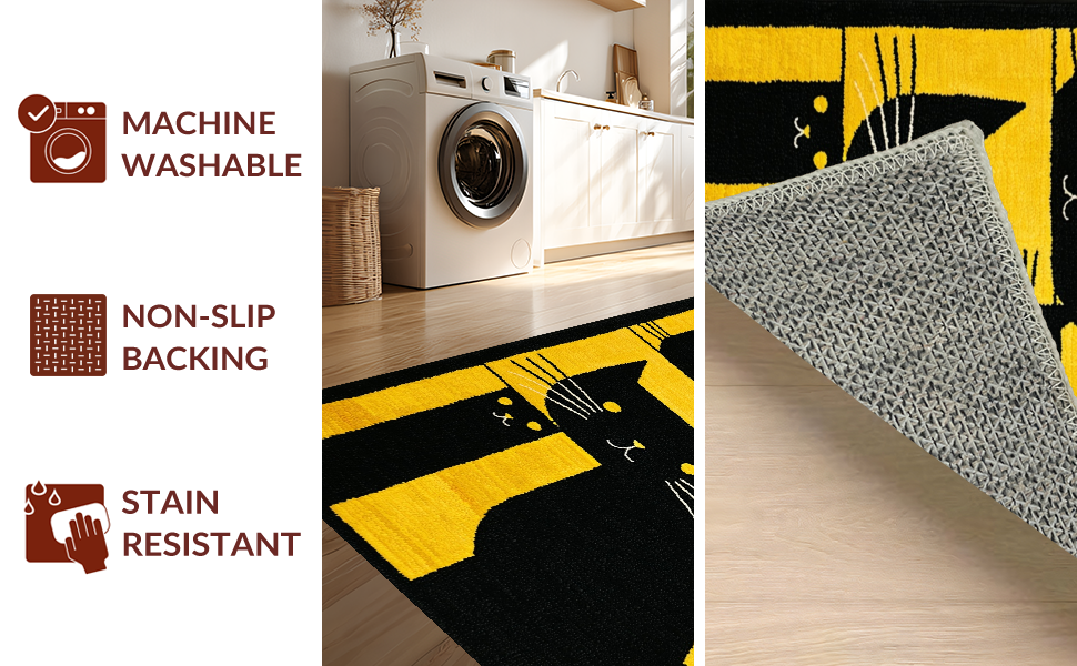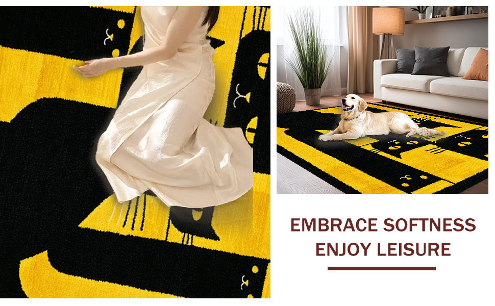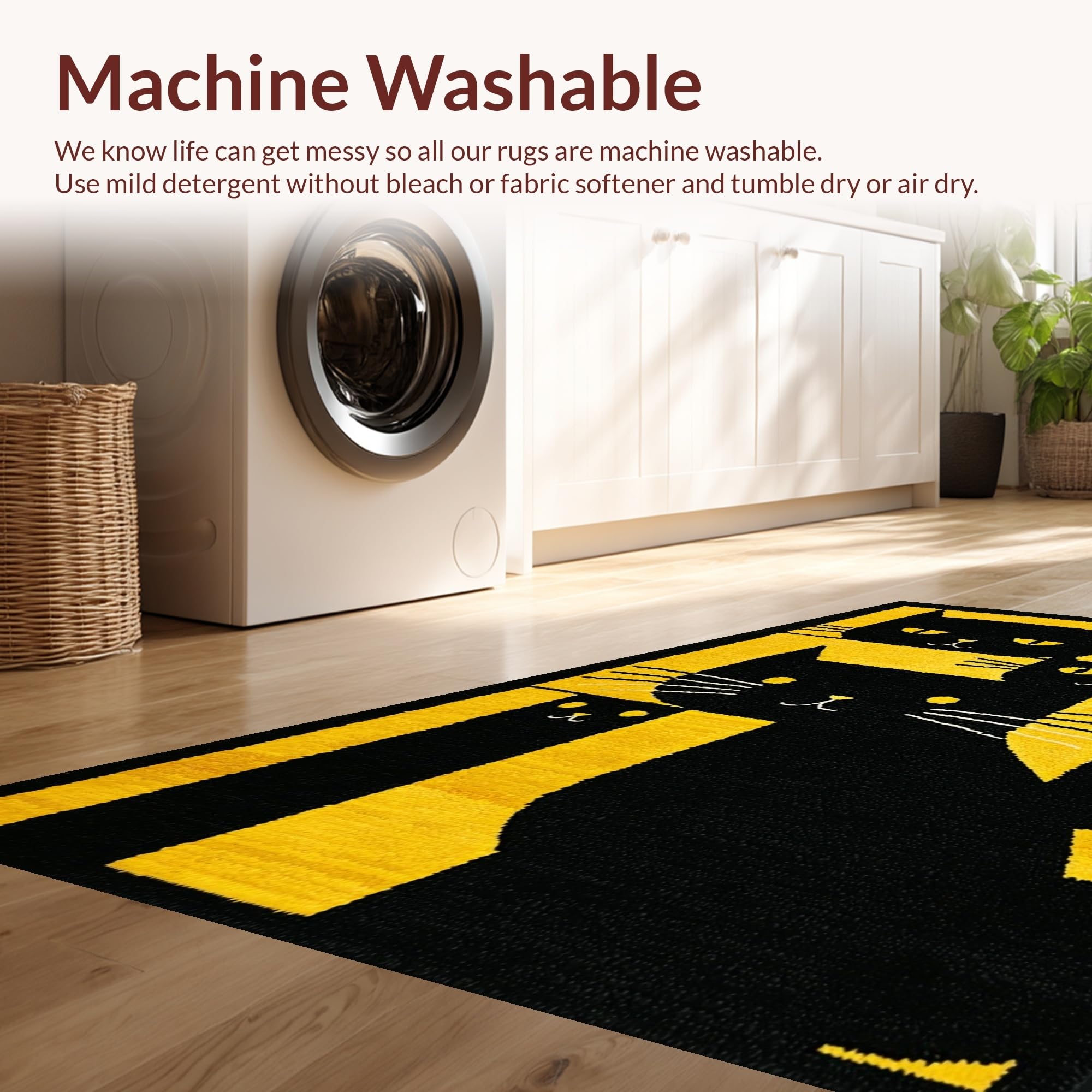 Ultra Soft Area Rug, Non Slip, Stain Resistant, Washable Area Rugs for Living Room, Bedroom, Cute Black Cat Graphic Theme(Black) Overview: