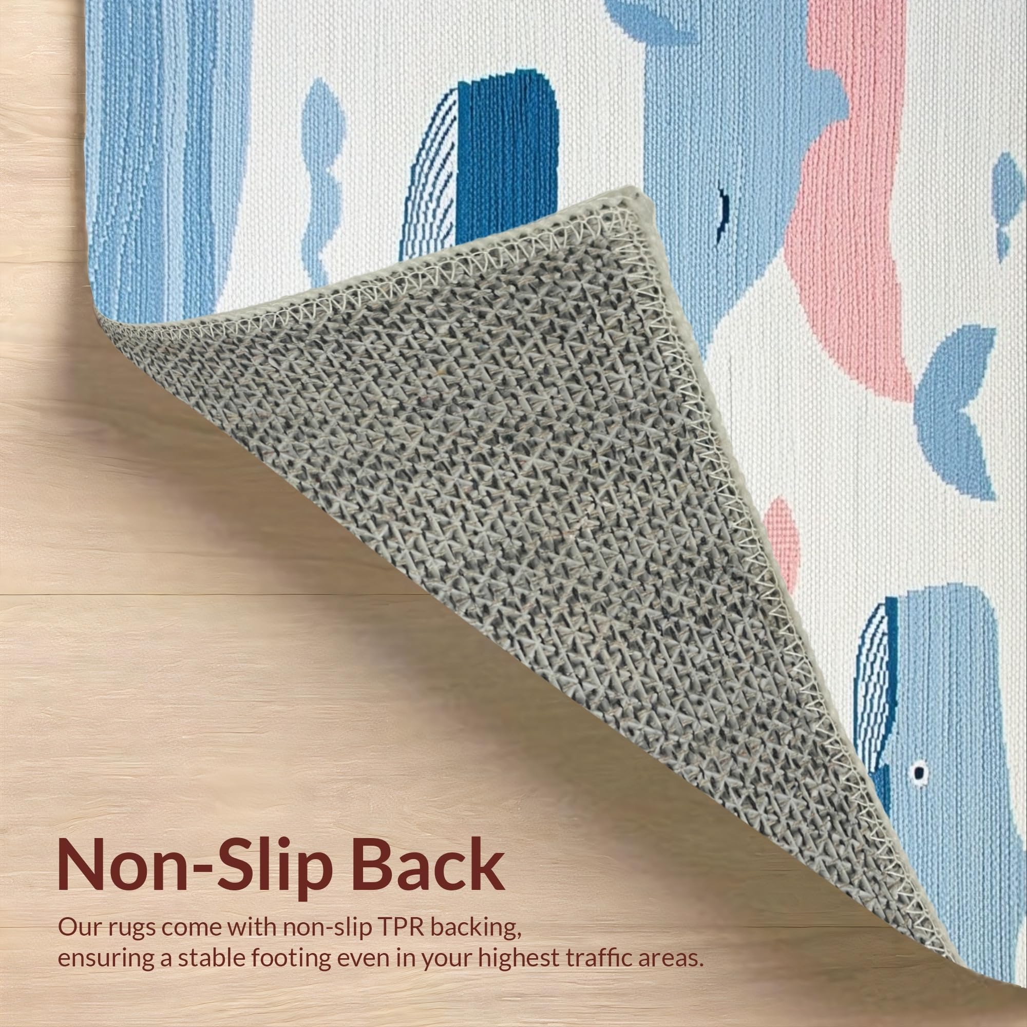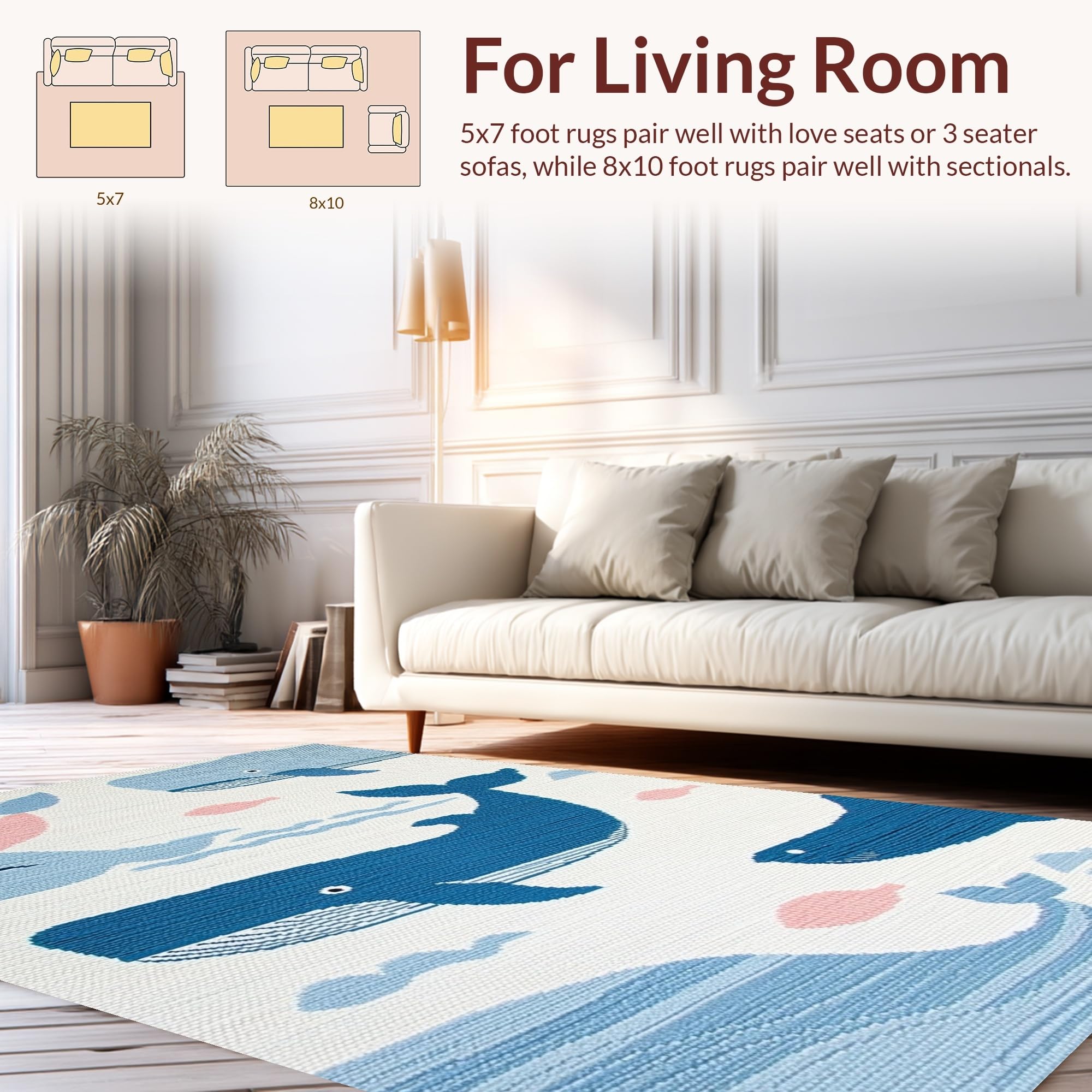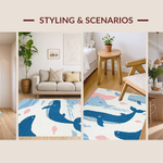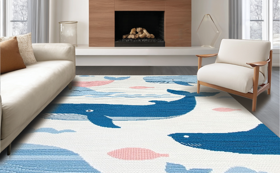 Ultra Soft Area Rug, Non Slip, Stain Resistant, Washable Area Rugs for Living Room, Bedroom, Cute Cartoon Whale Concept(Blue) Overview: