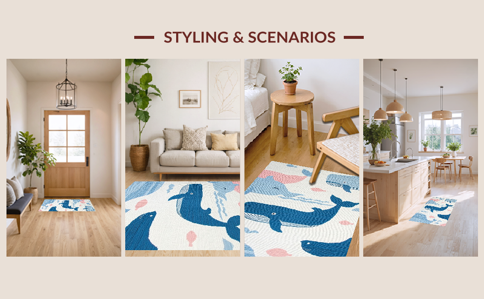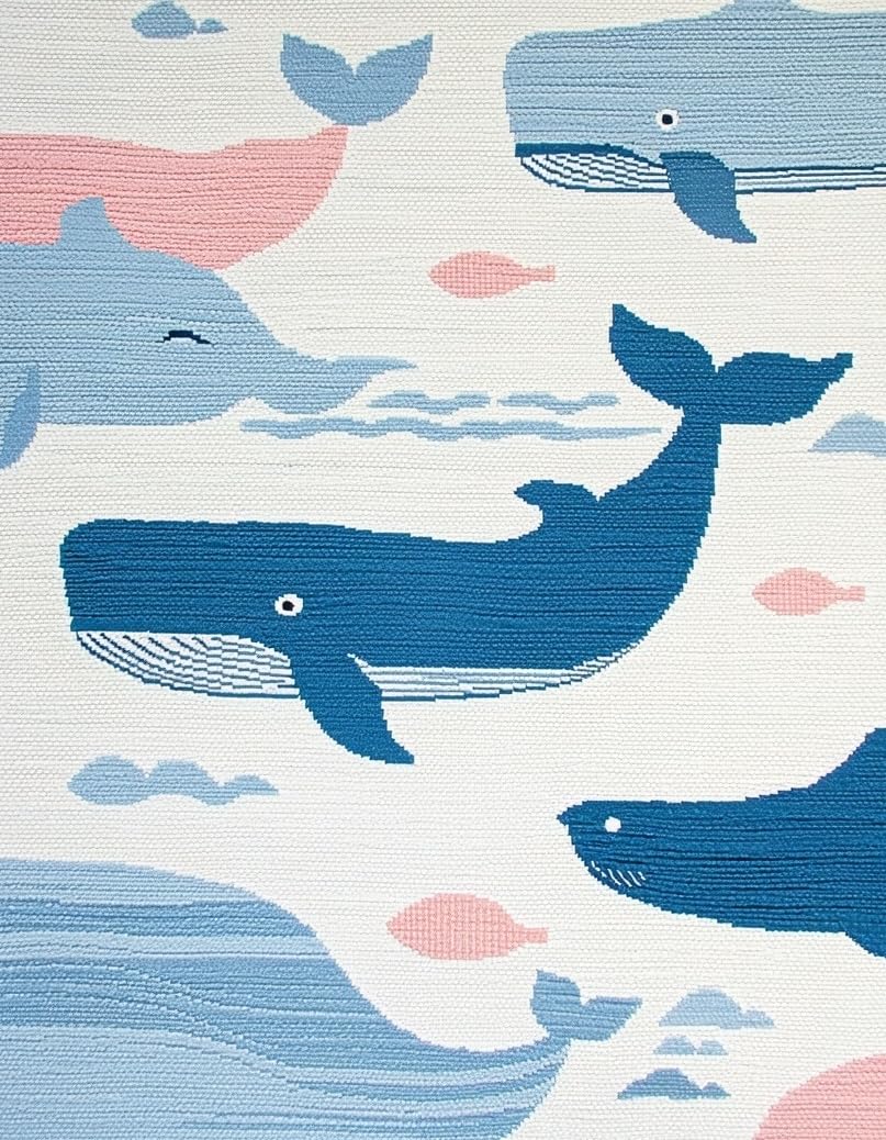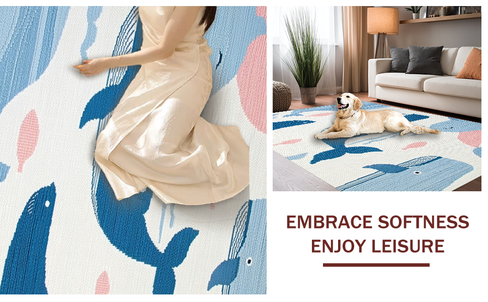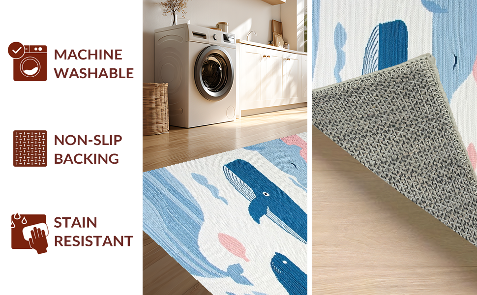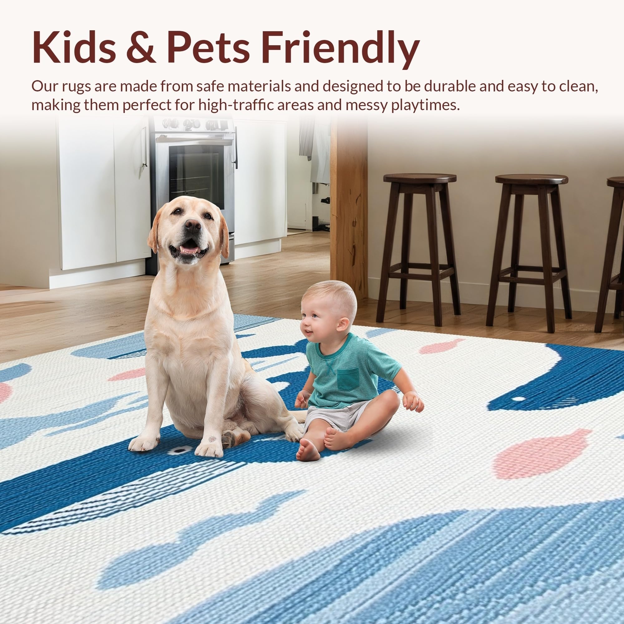 Ultra Soft Area Rug, Non Slip, Stain Resistant, Washable Area Rugs for Living Room, Bedroom, Cute Cartoon Whale Concept(Blue) Overview: