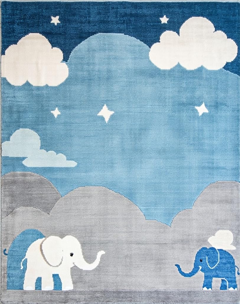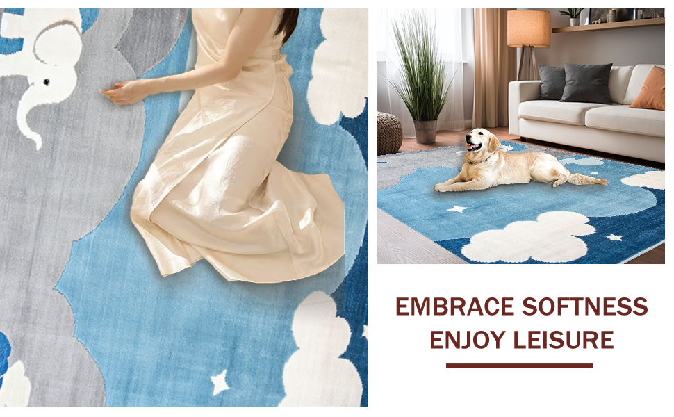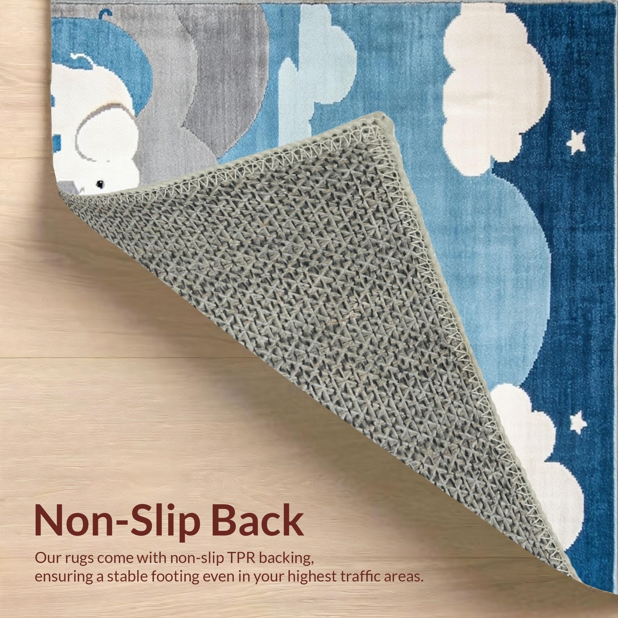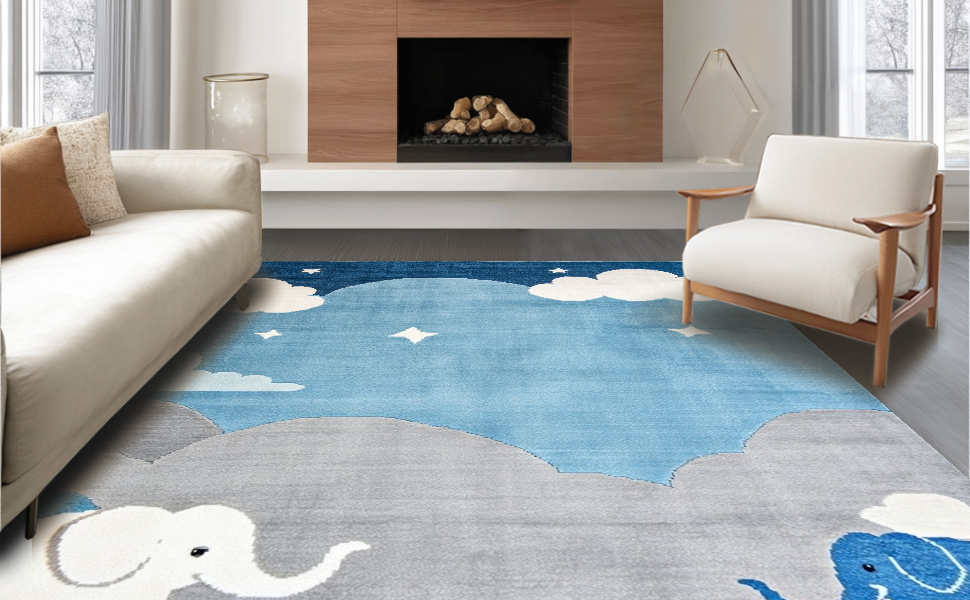 Ultra Soft Area Rug, Non Slip, Stain Resistant, Washable Area Rugs for Living Room, Bedroom, Cute Cloud and Elephant Design(Blue) Overview: