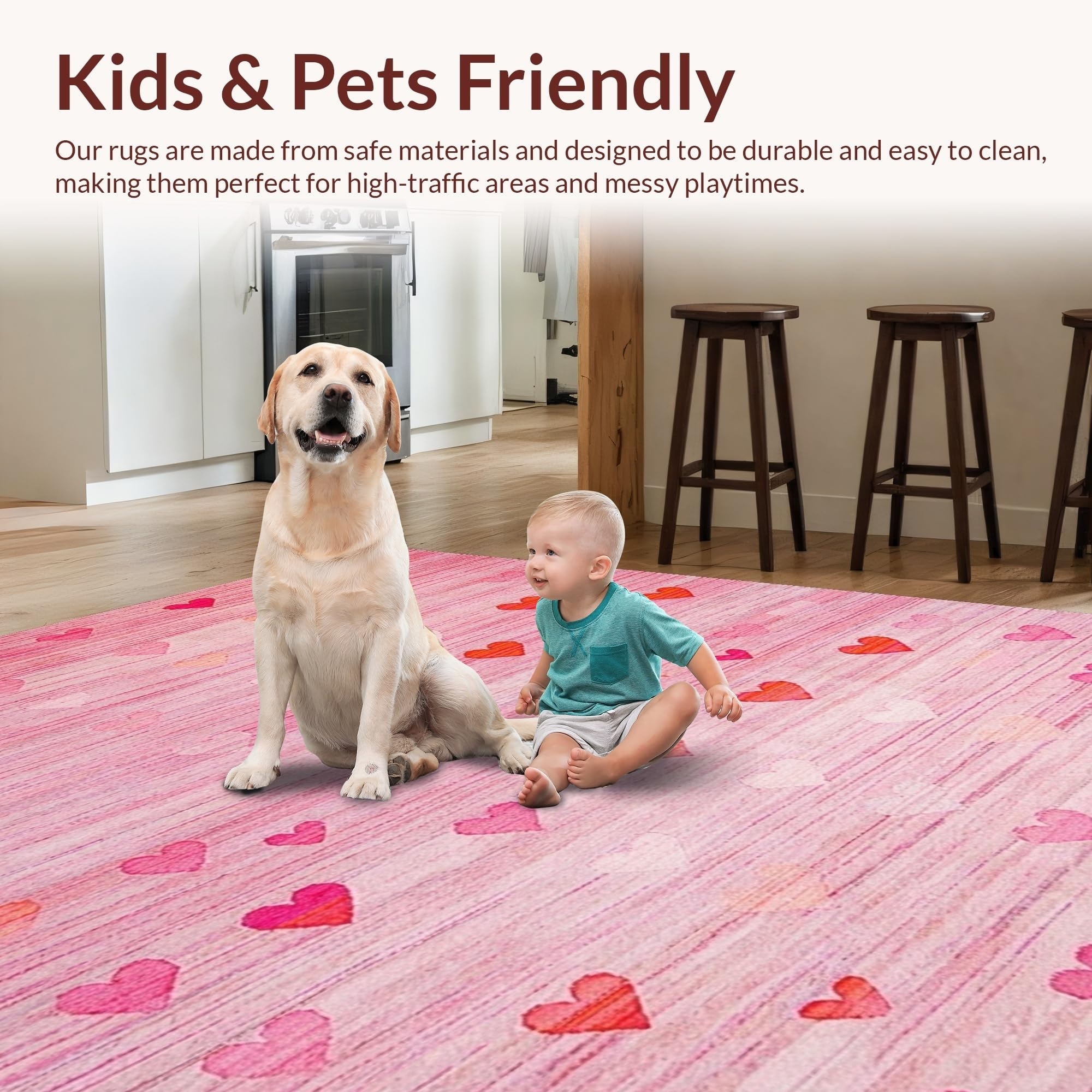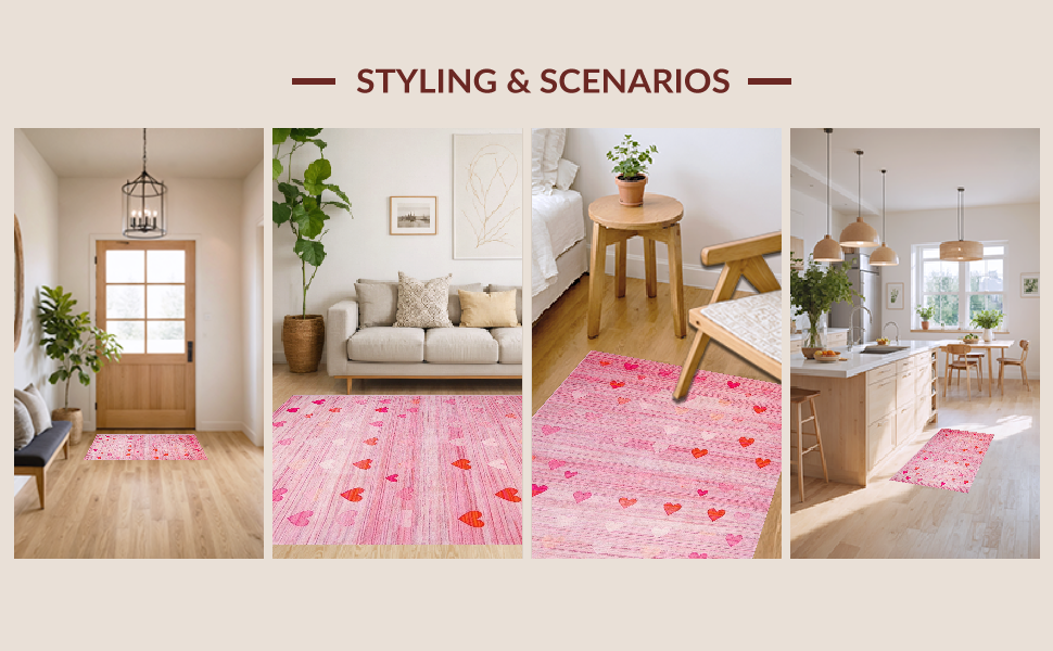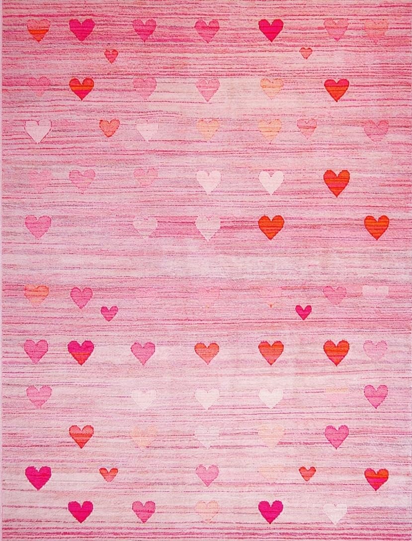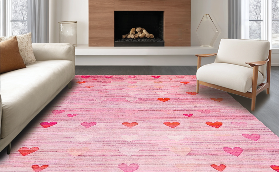 Ultra Soft Area Rug, Non Slip, Stain Resistant, Washable Area Rugs for Living Room, Bedroom, Cute Contemporary Pink Flair(Pink) Overview: