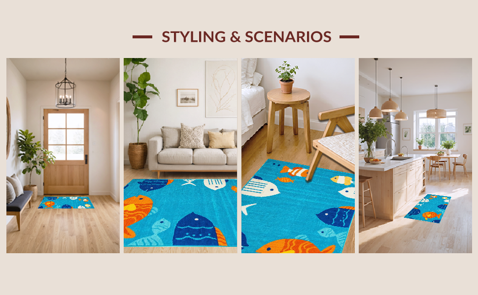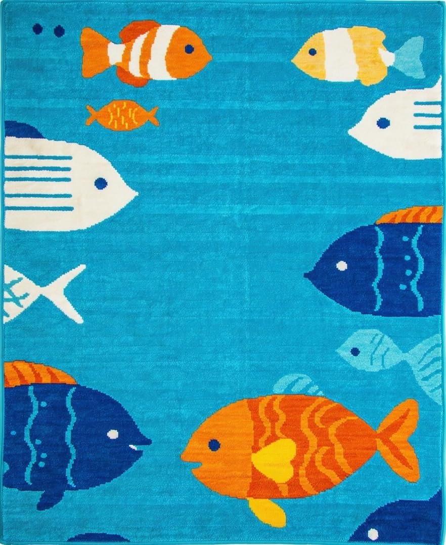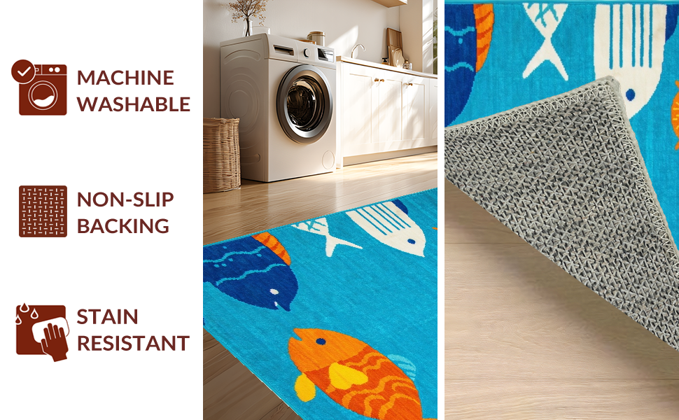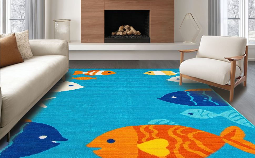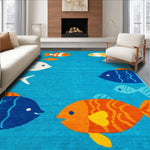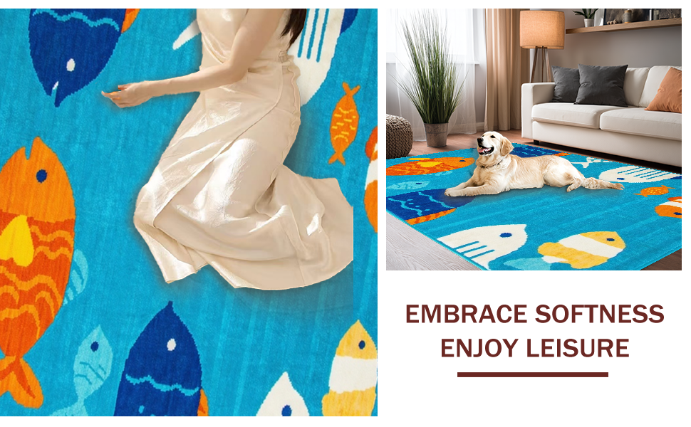 Ultra Soft Area Rug, Non Slip, Stain Resistant, Washable Area Rugs for Living Room, Bedroom, Cute Fish Print Decorative Runner(Blue) Overview:
