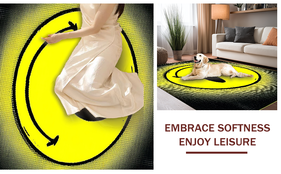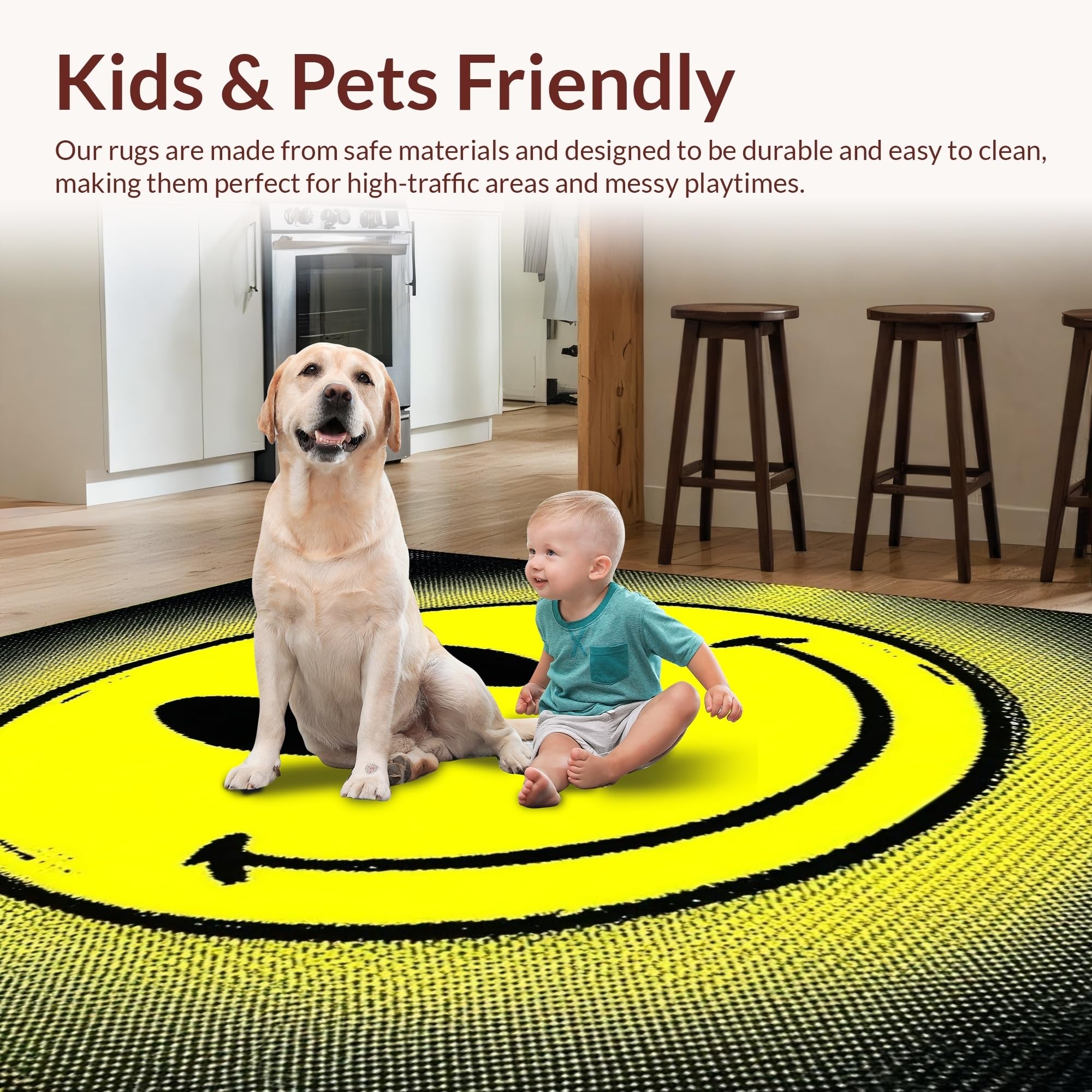 Ultra Soft Area Rug, Non Slip, Stain Resistant, Washable Area Rugs for Living Room, Bedroom, Cute Fun Hipster Abstract Style(Yellow) Overview: