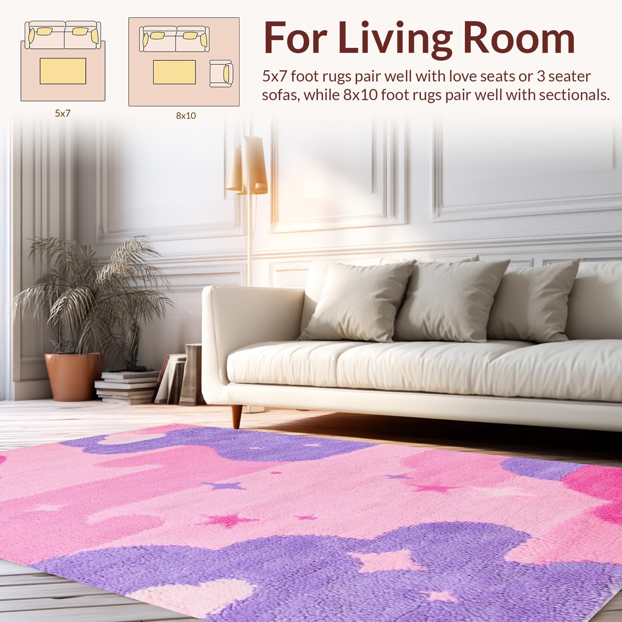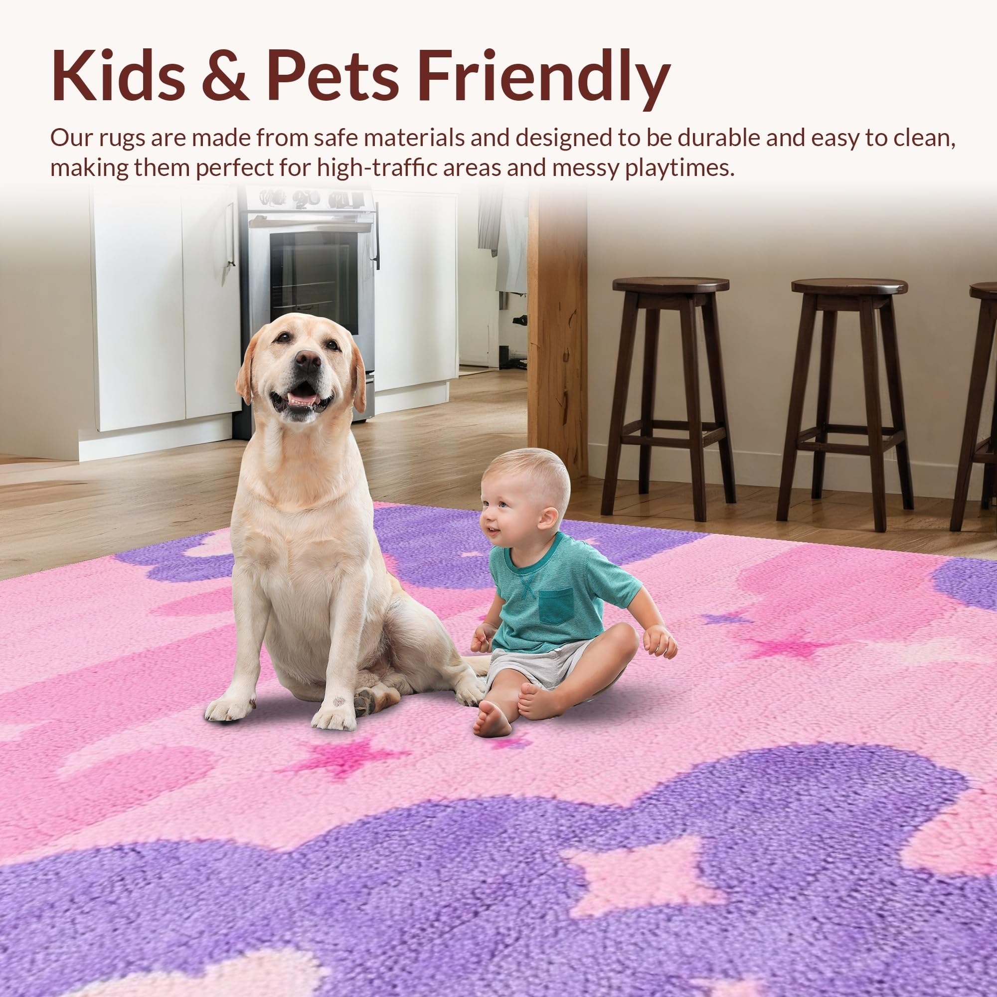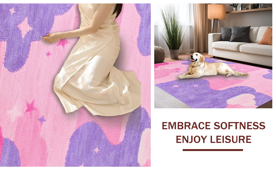 Ultra Soft Area Rug, Non Slip, Stain Resistant, Washable Area Rugs for Living Room, Bedroom, Cute Furry Pastel Waves(Pink) Overview: