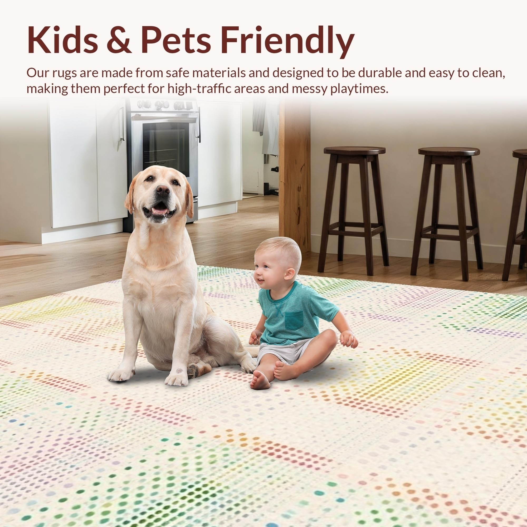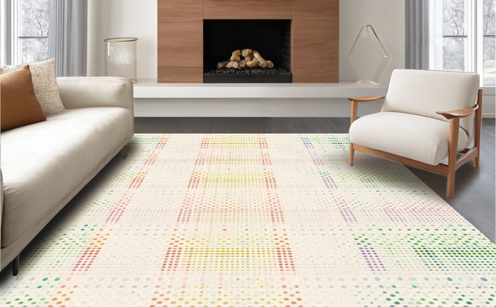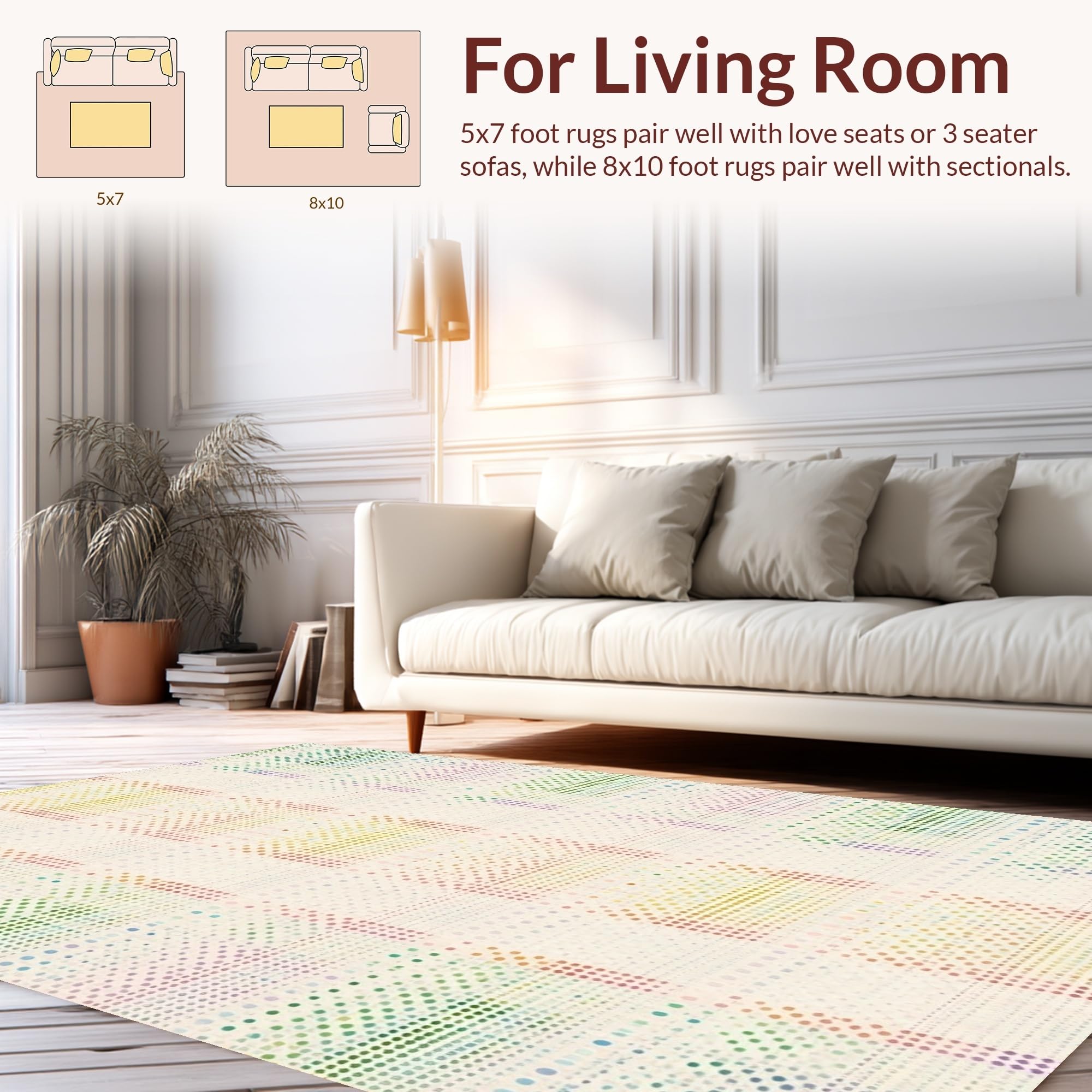 Ultra Soft Area Rug, Non Slip, Stain Resistant, Washable Area Rugs for Living Room, Bedroom, Cute Ivory Spot Patterned Accent(Ivory) Overview: