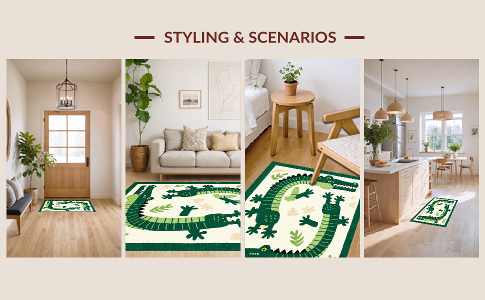 Ultra Soft Area Rug, Non Slip, Stain Resistant, Washable Area Rugs for Living Room, Bedroom, Cute Kids' Bath Decor Classic(Green) Overview: