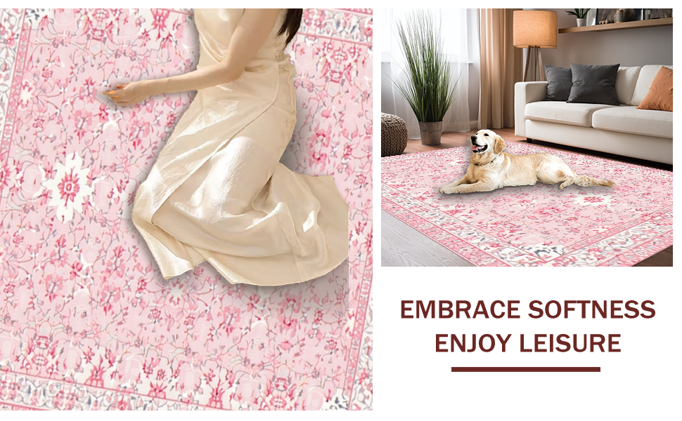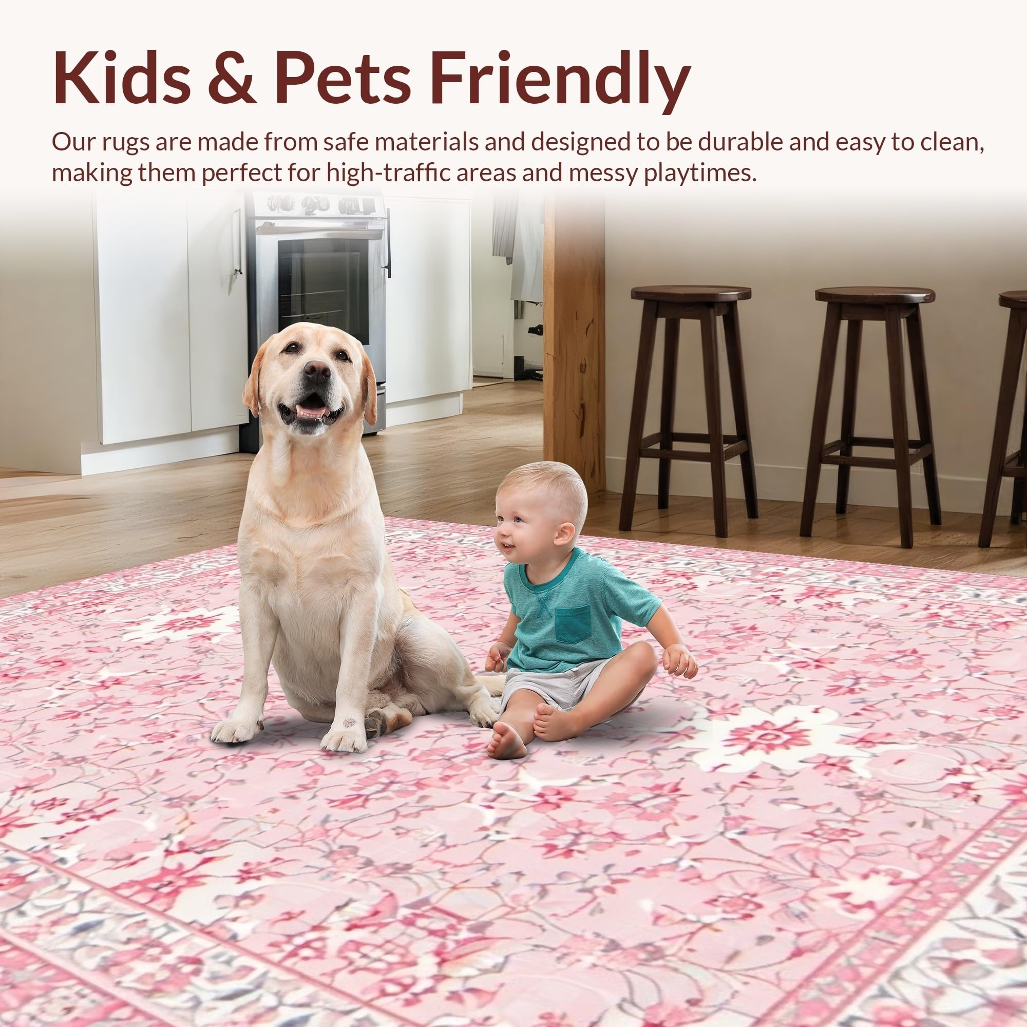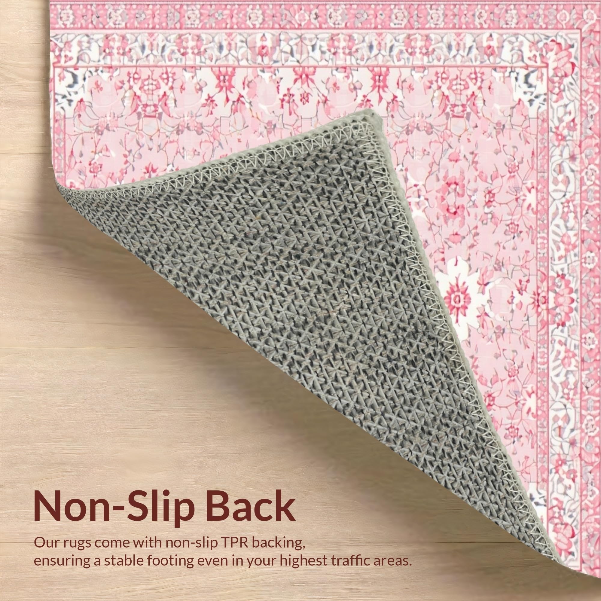Ultra Soft Area Rug, Non Slip, Stain Resistant, Washable Area Rugs for Living Room, Bedroom, Cute Light Pink Botanical Design(Pink) Overview: