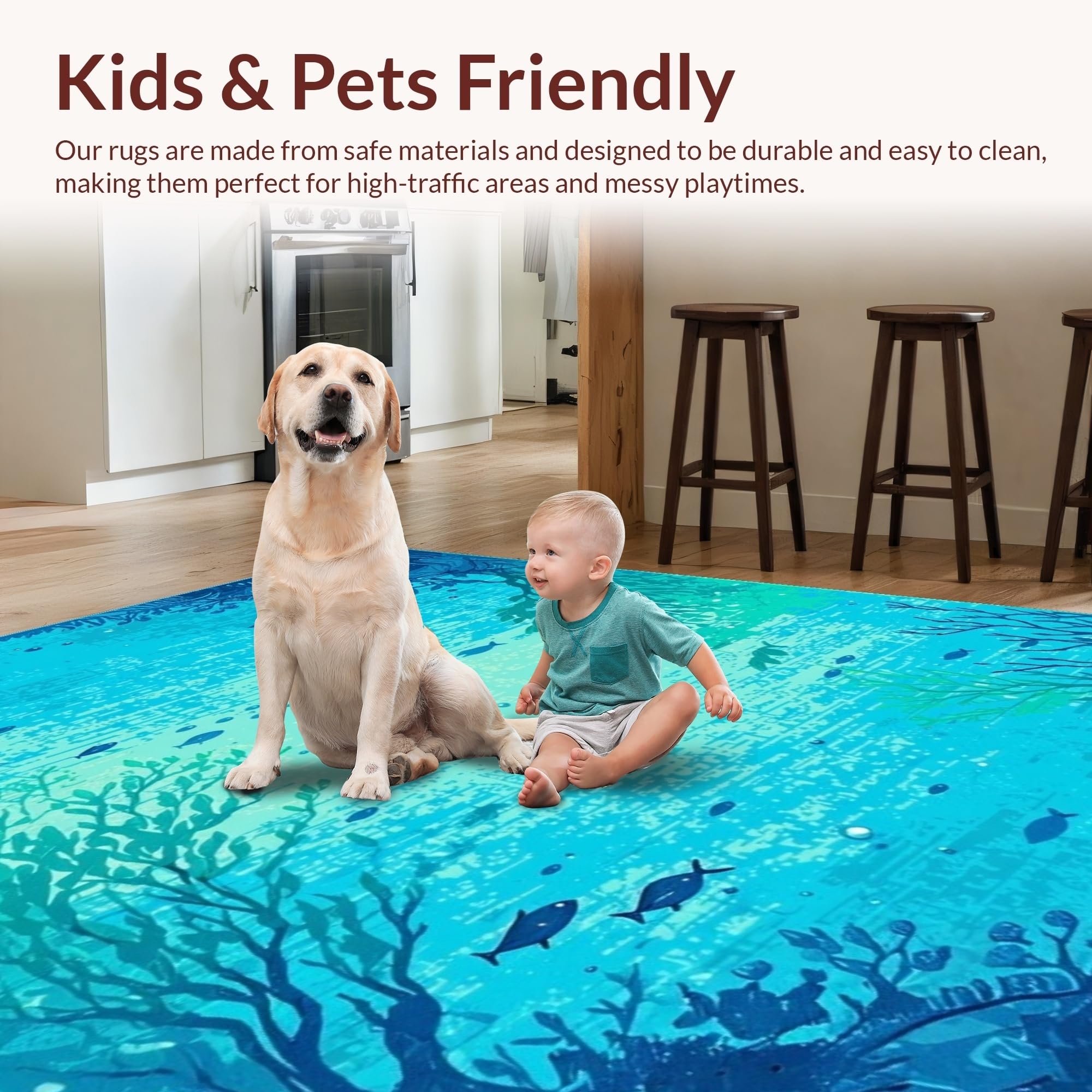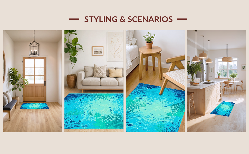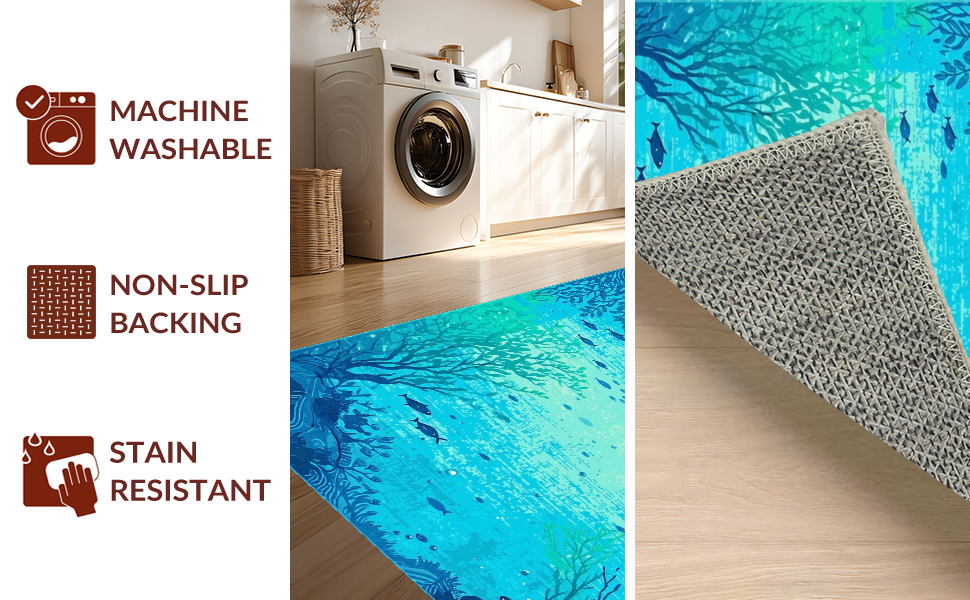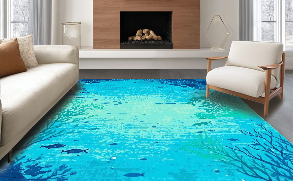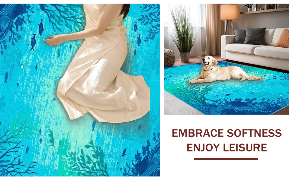 Ultra Soft Area Rug, Non Slip, Stain Resistant, Washable Area Rugs for Living Room, Bedroom, Cute Multi-Toned Mermaid Aesthetic(Blue) Overview:
