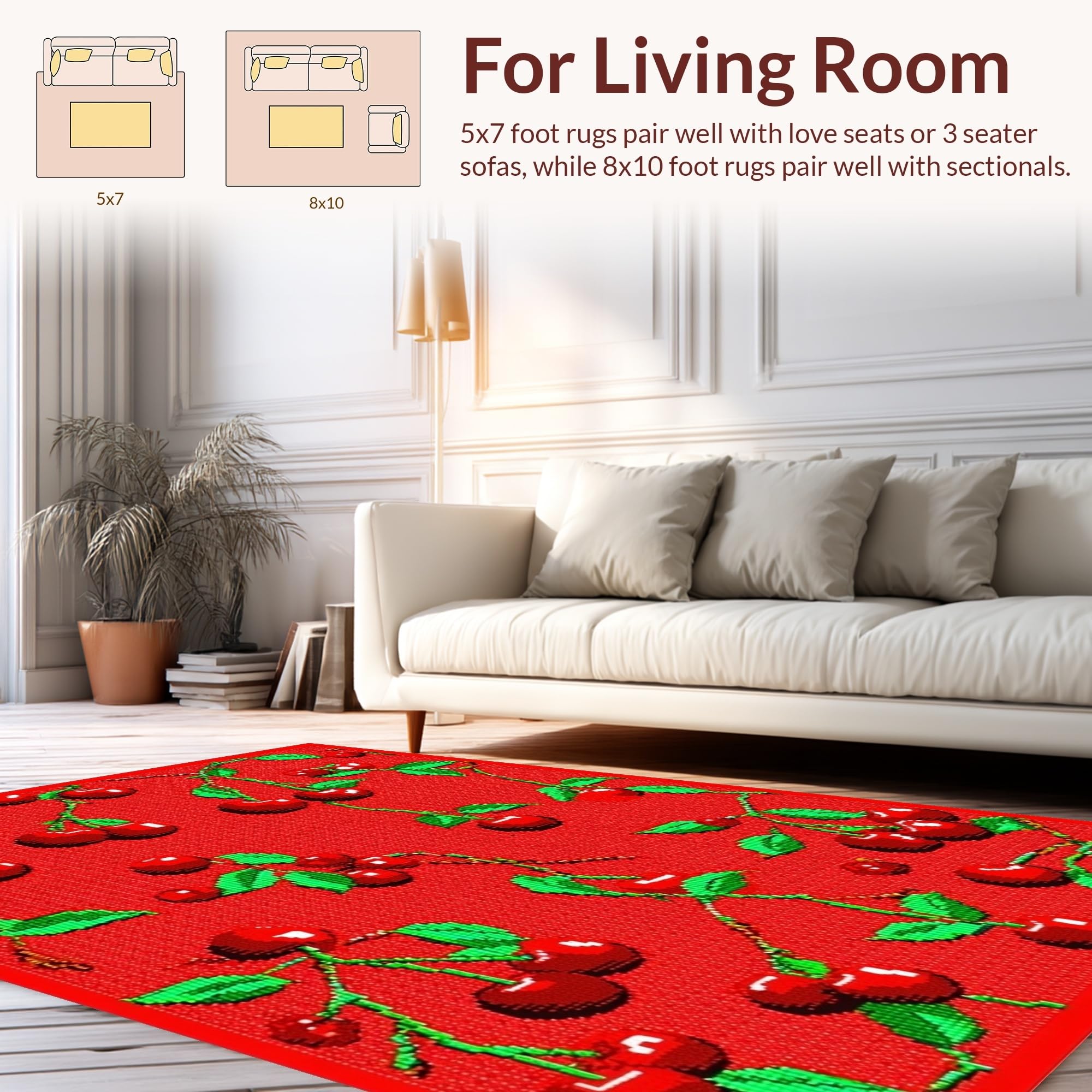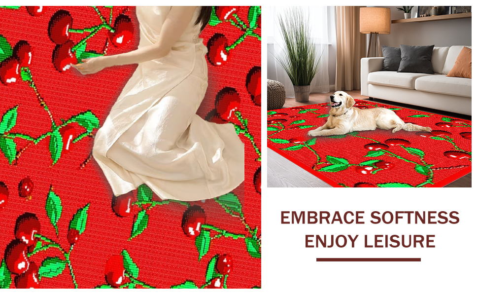 Ultra Soft Area Rug, Non Slip, Stain Resistant, Washable Area Rugs for Living Room, Bedroom, Cute Nature-Inspired Decor Element(Red) Overview: