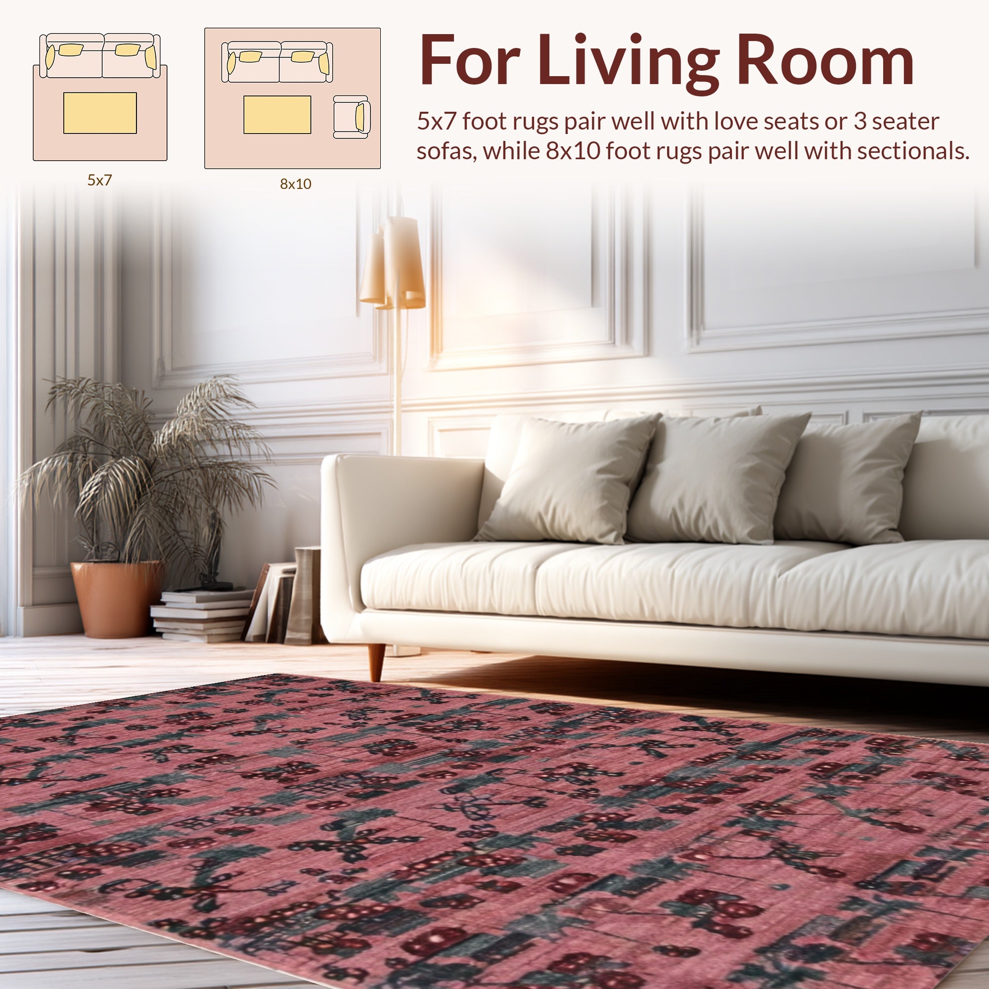 Ultra Soft Area Rug, Non Slip, Stain Resistant, Washable Area Rugs for Living Room, Bedroom, Cute Pink Ribbon and Cherry Bomb Rug Design(Pink) Overview: