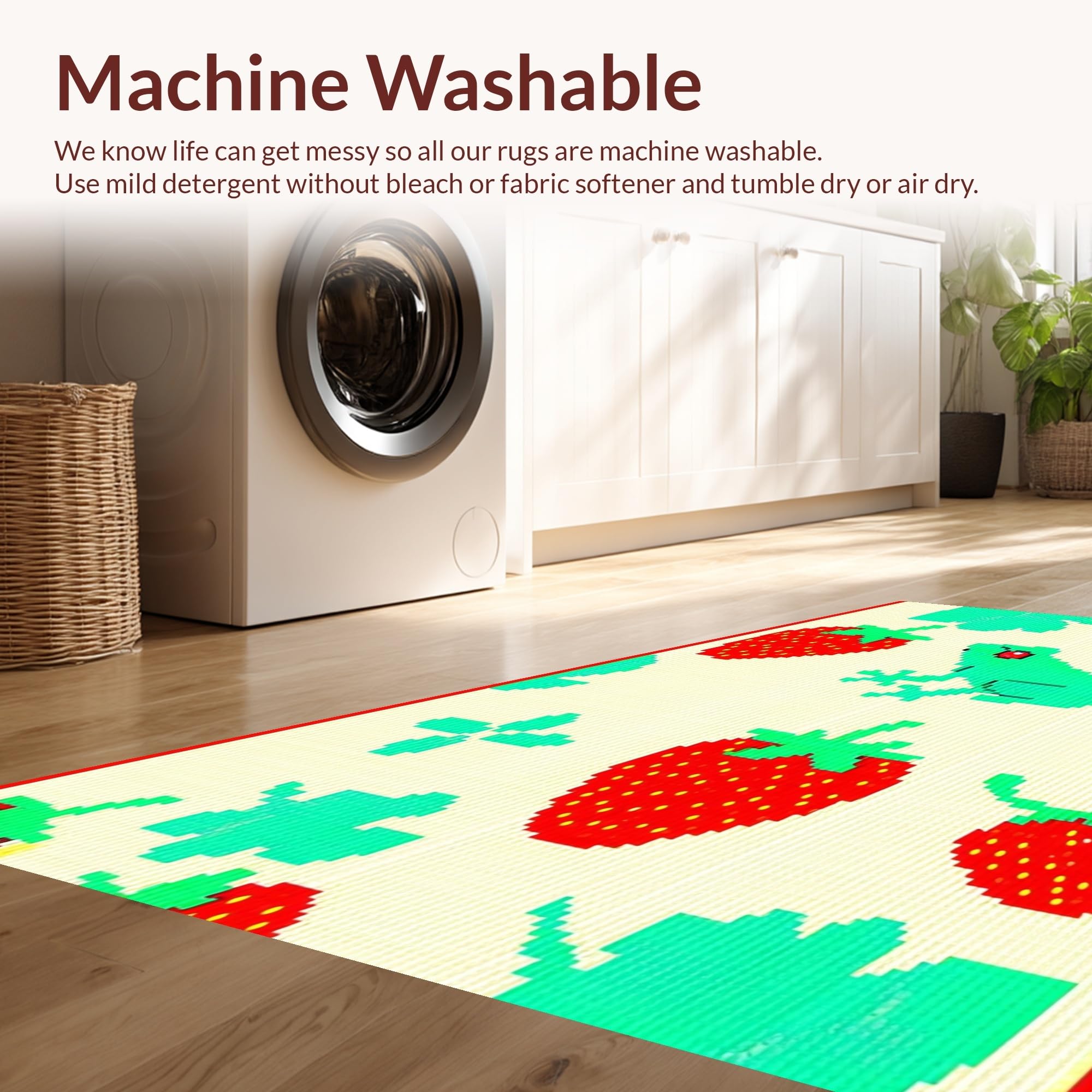 - Machine Washable: Our rugs can be easily thrown in the wash machine.