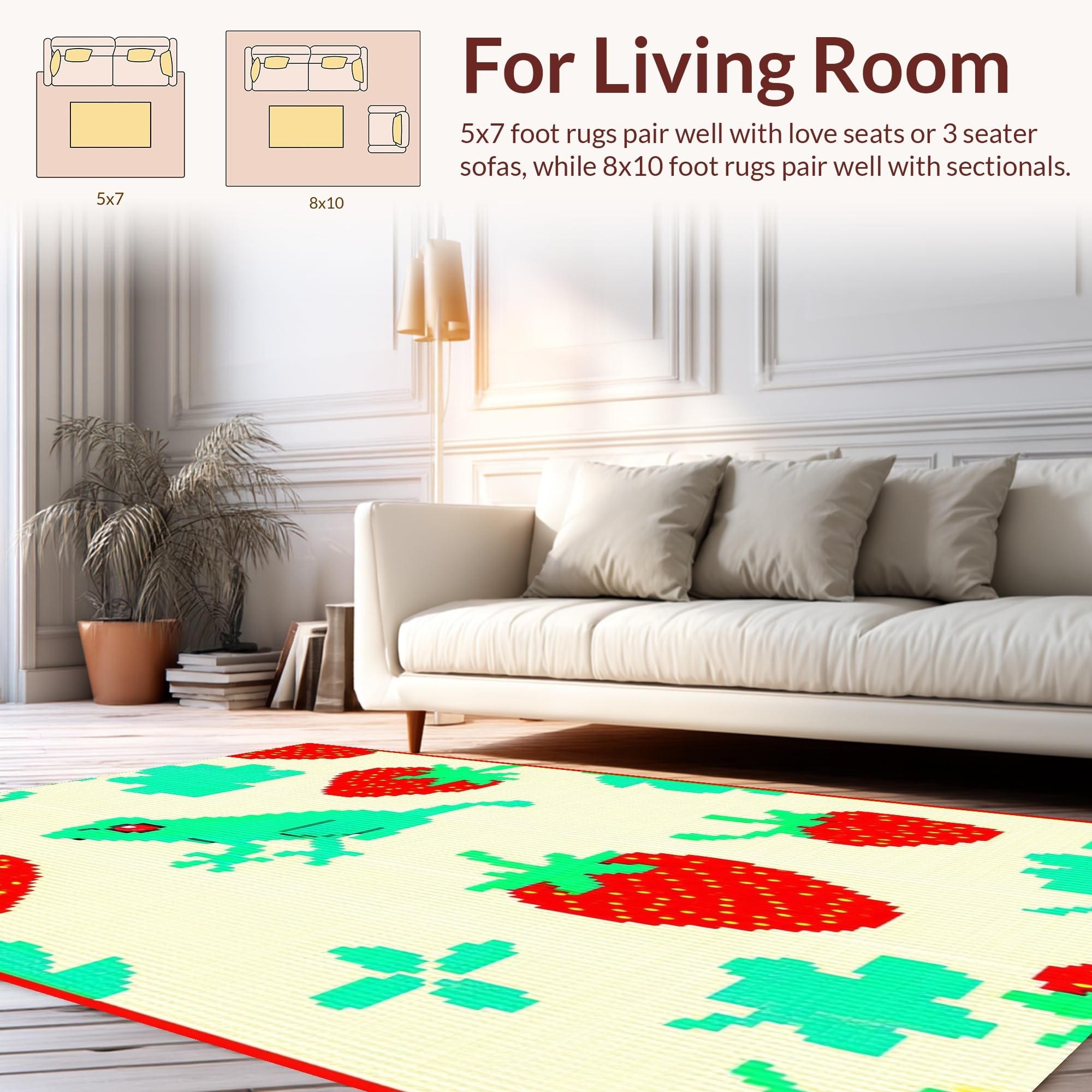 Ultra Soft Area Rug, Non Slip, Stain Resistant, Washable Area Rugs for Living Room, Bedroom, Cute Quirky Botanical Theme(Green) Overview: