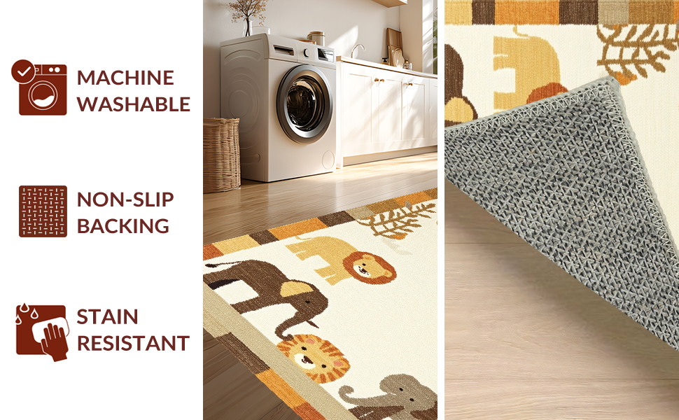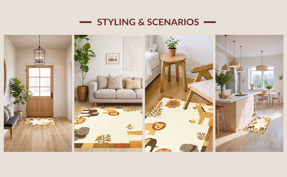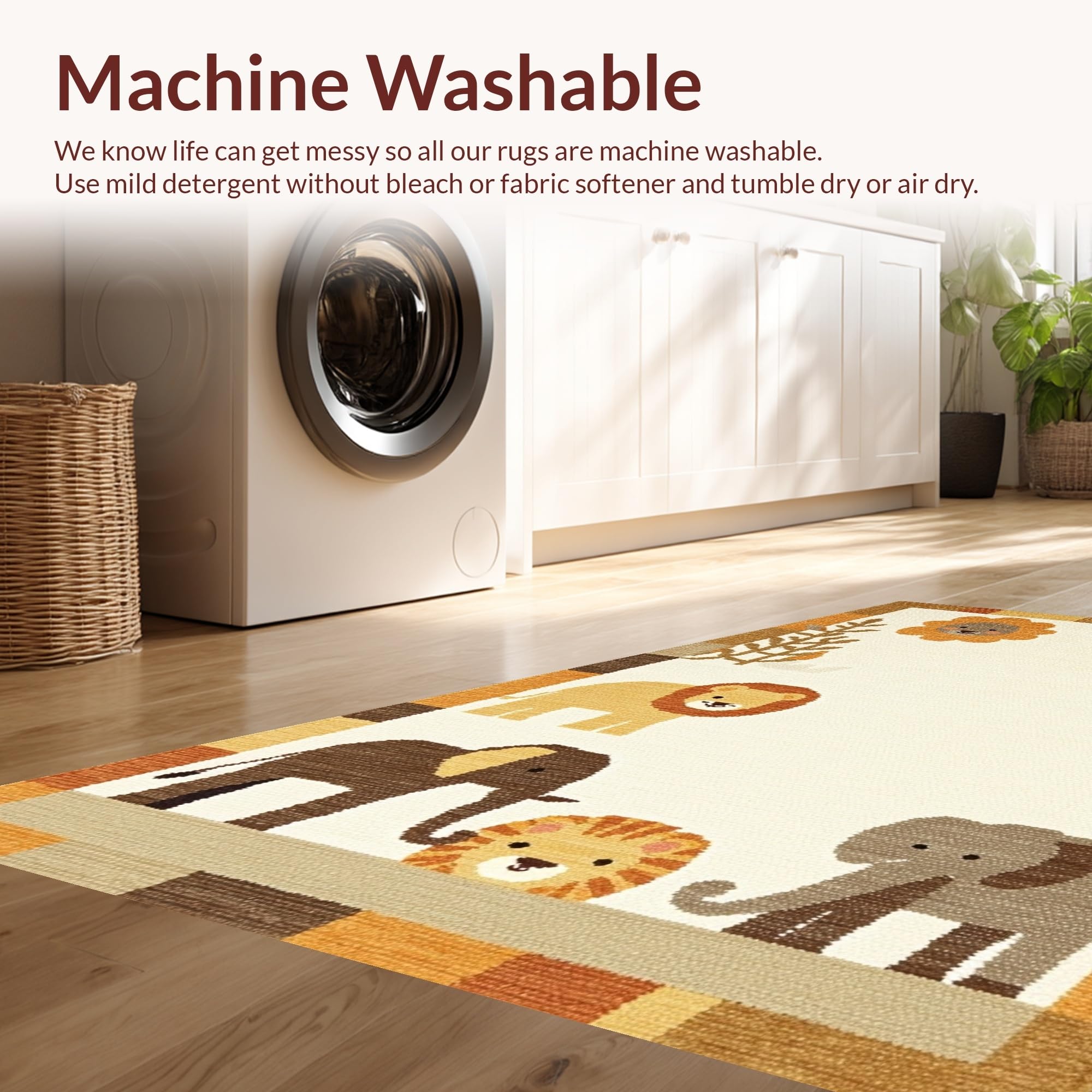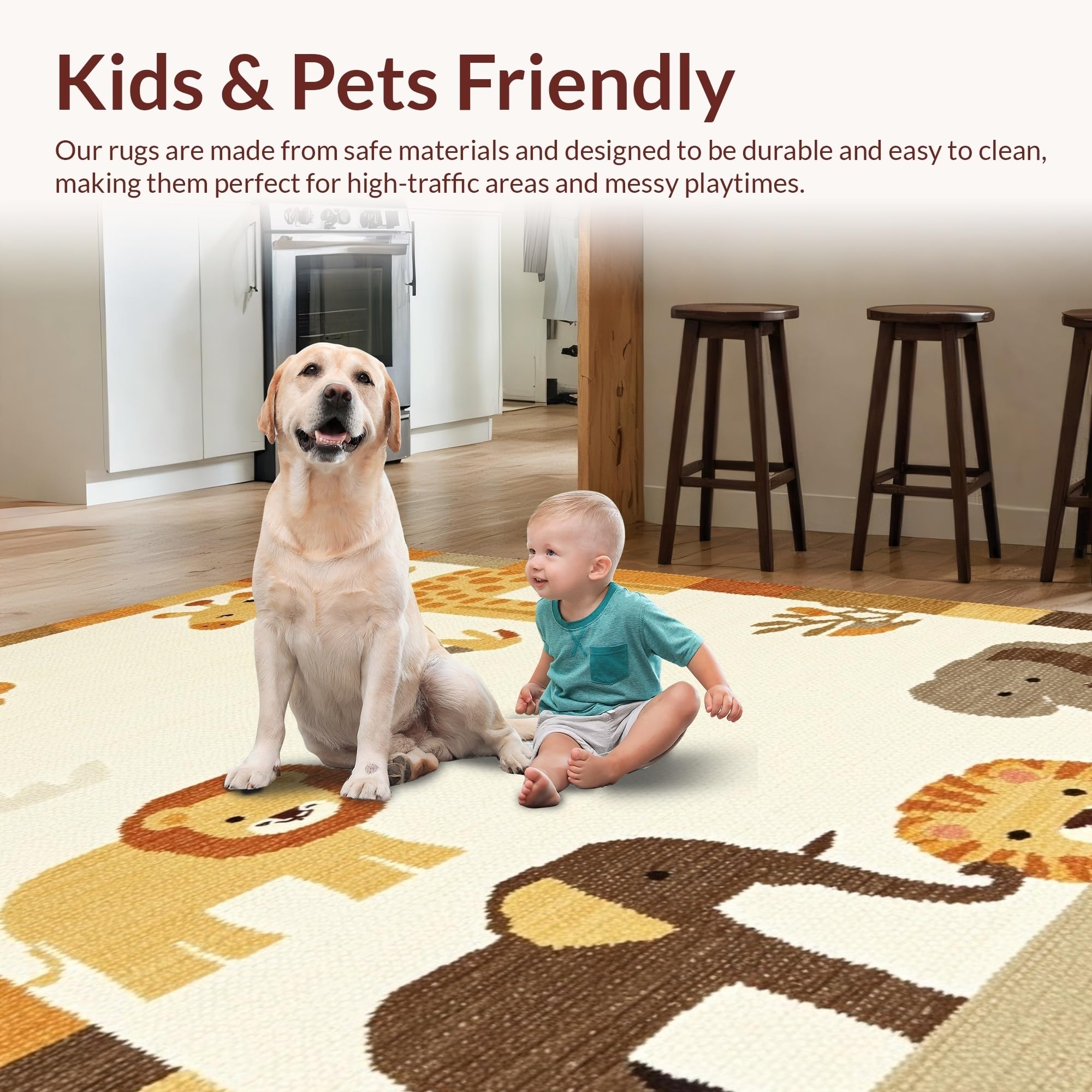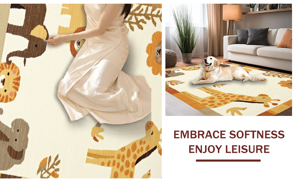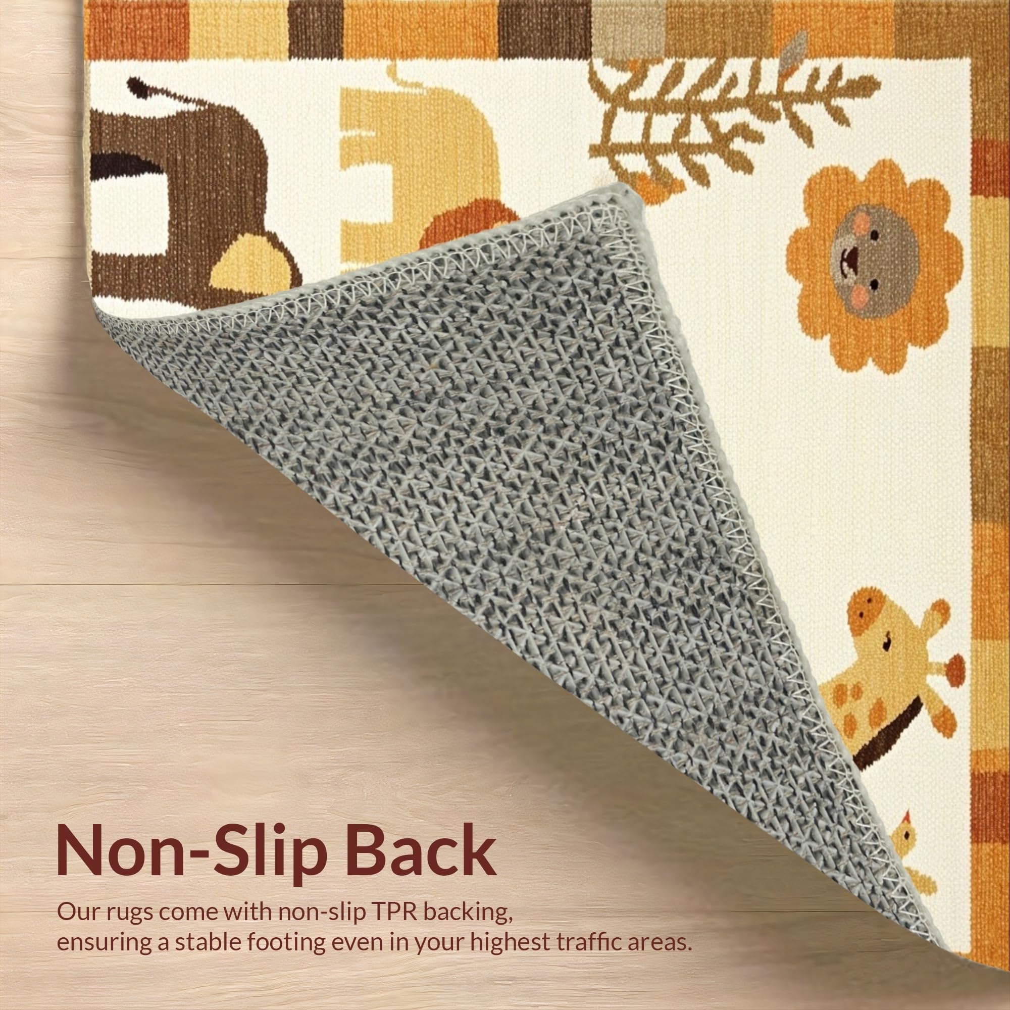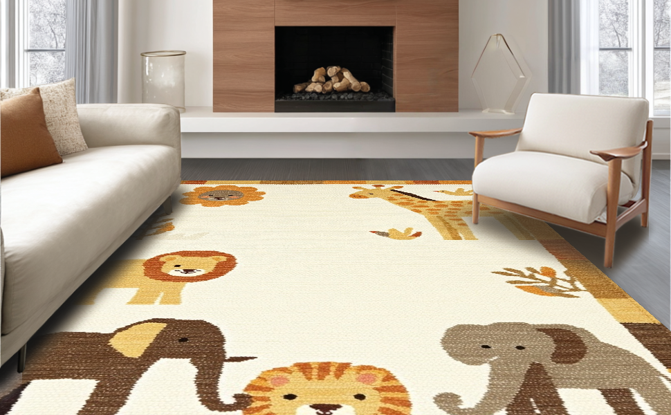 Ultra Soft Area Rug, Non Slip, Stain Resistant, Washable Area Rugs for Living Room, Bedroom, Cute Safari Creature Ensemble(Beige) Overview: