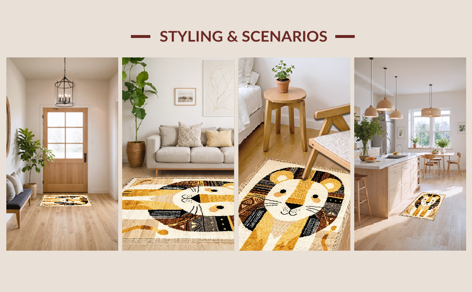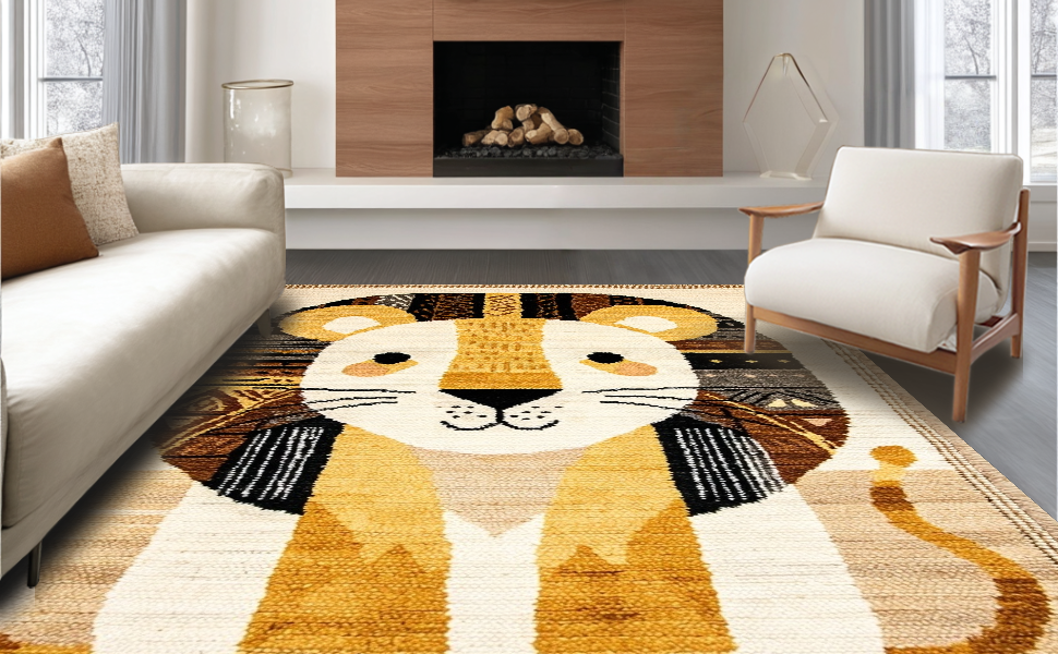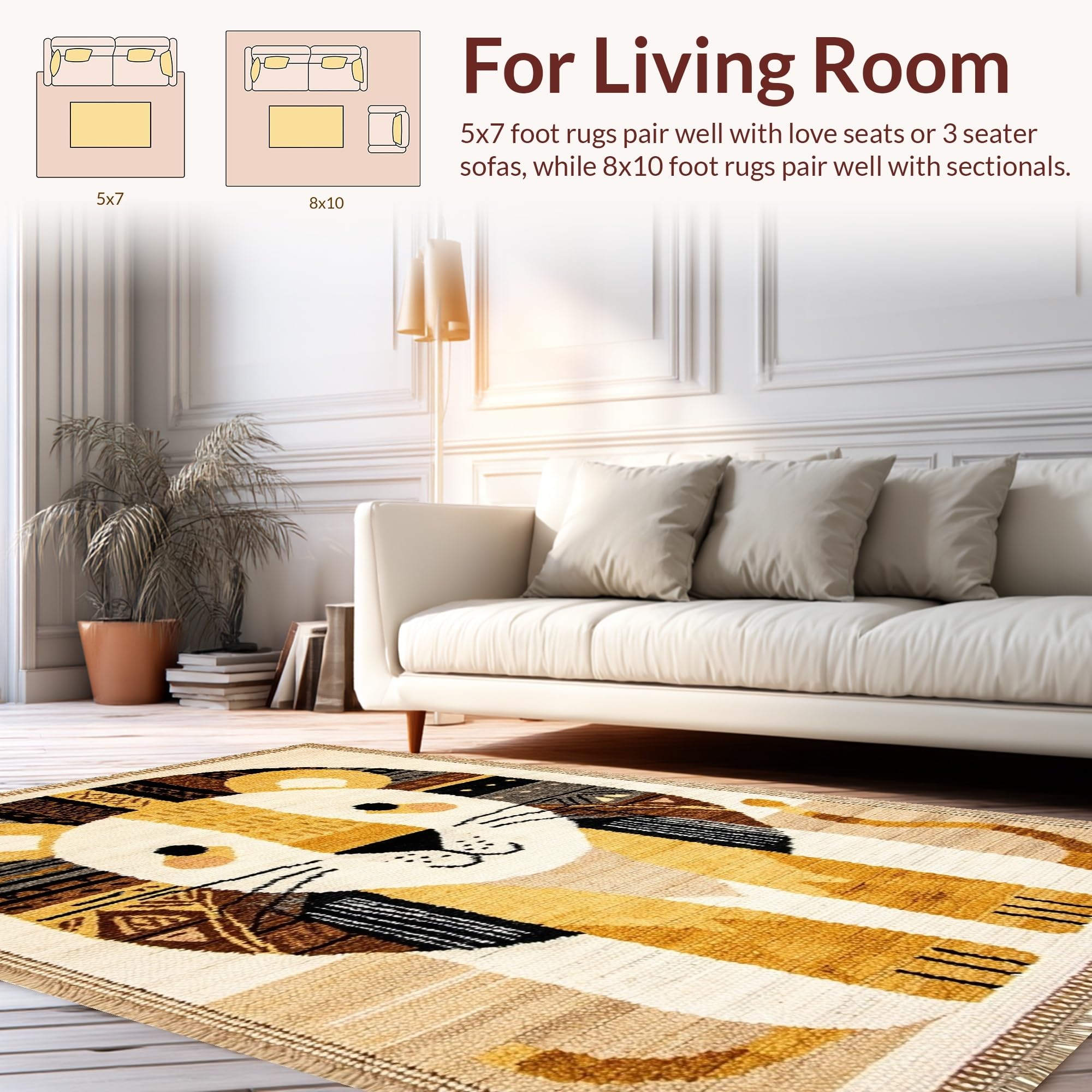 Ultra Soft Area Rug, Non Slip, Stain Resistant, Washable Area Rugs for Living Room, Bedroom, Cute Wildlife Themed Accent(Beige) Overview: