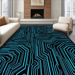 Flatwoven High Traffic Area Rug, Cyberpunk Gaming Floor with Futuristic Circuit Motifs, Non Slip, Stain Resistant, Washable Area Rugs for Living Room, Bedroom (Blue) Overview:
