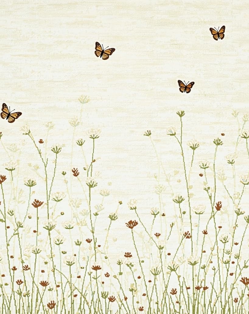 Dainty Beige Meadow Whimsical Floral Butterfly Indoor(Beige)