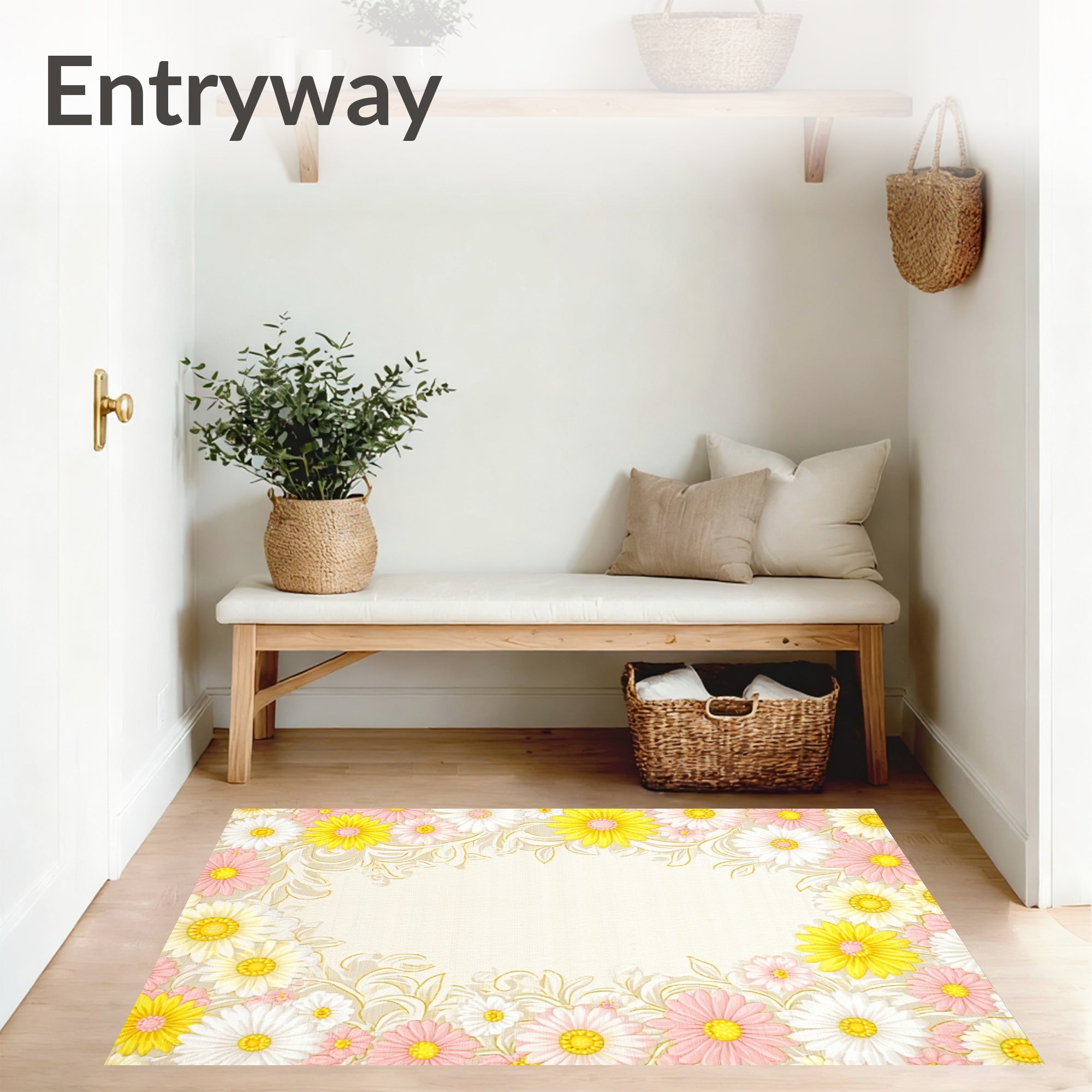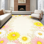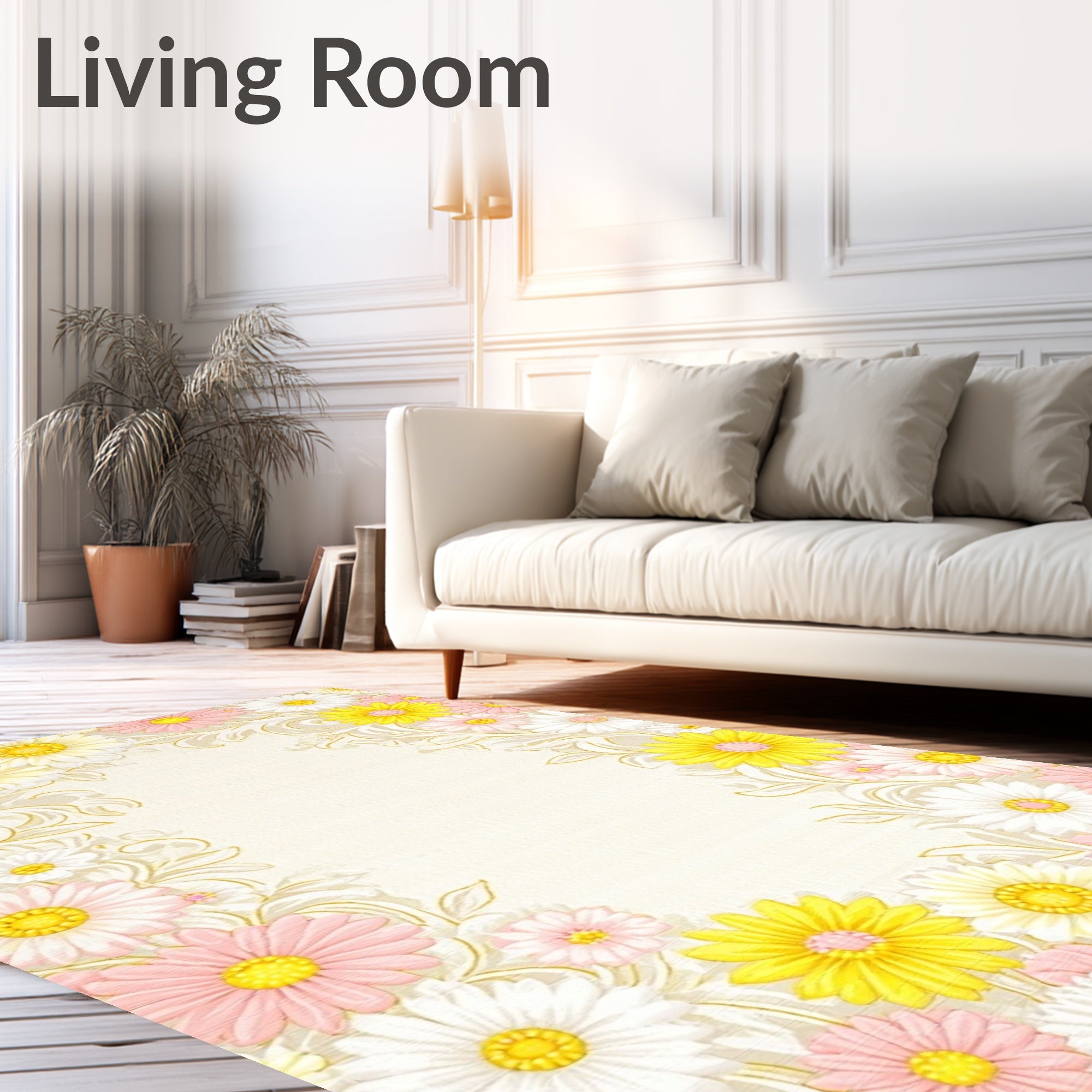 Ultra Soft Area Rug, Non Slip, Stain Resistant, Washable Area Rugs for Living Room, Bedroom, Daisy Burst Featuring Playful Flower Motifs and Artistic Flourishes(Beige) Overview: