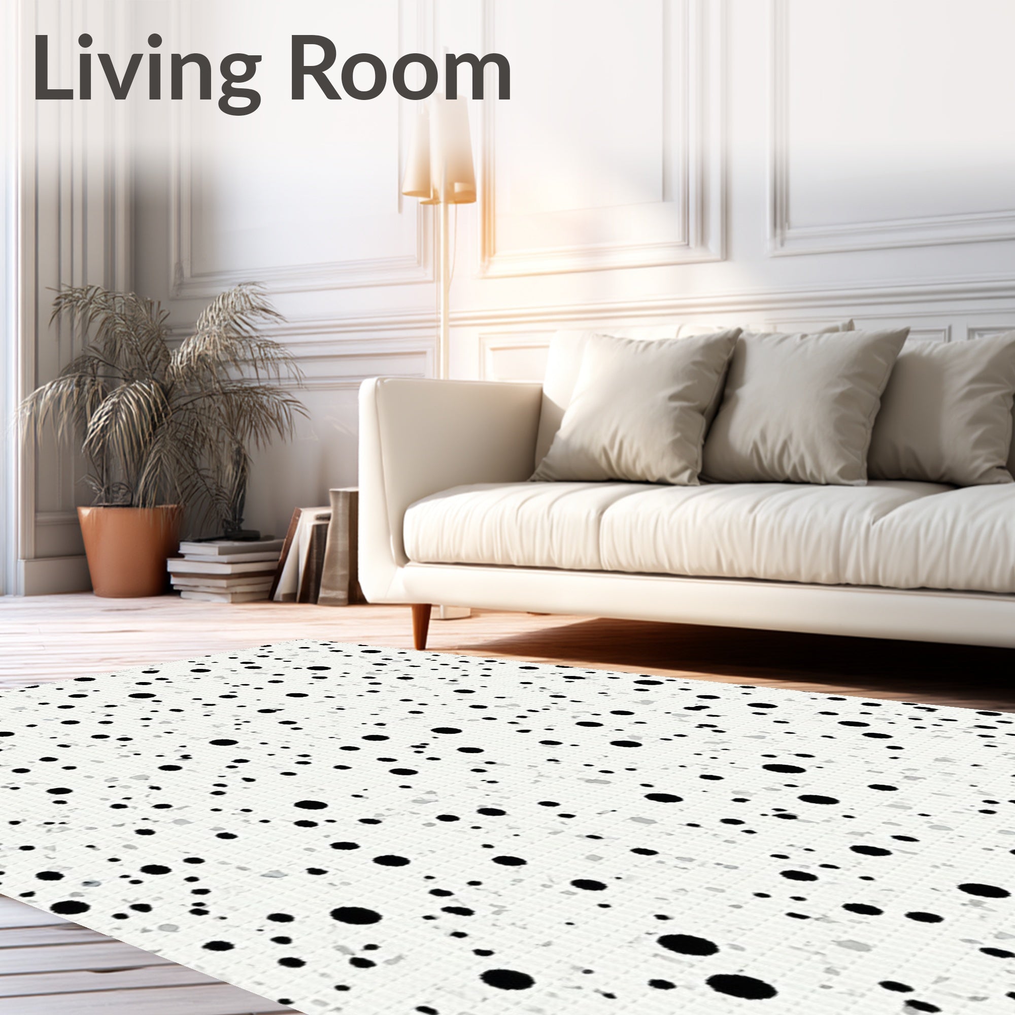 Ultra Soft Area Rug, Non Slip, Stain Resistant, Washable Area Rugs for Living Room, Bedroom, Dalmatian Inspired Shag Area Playful Dot(White) Overview: