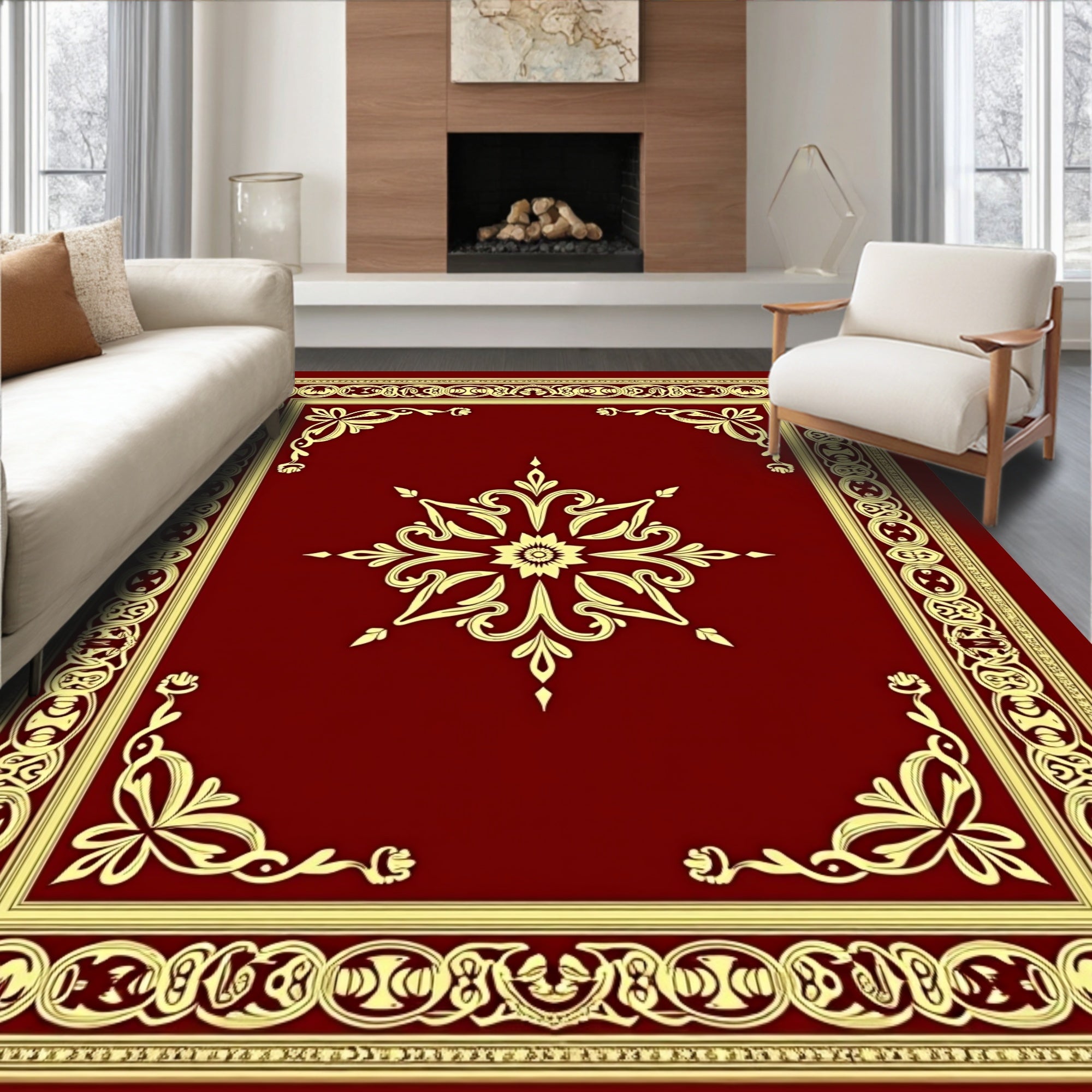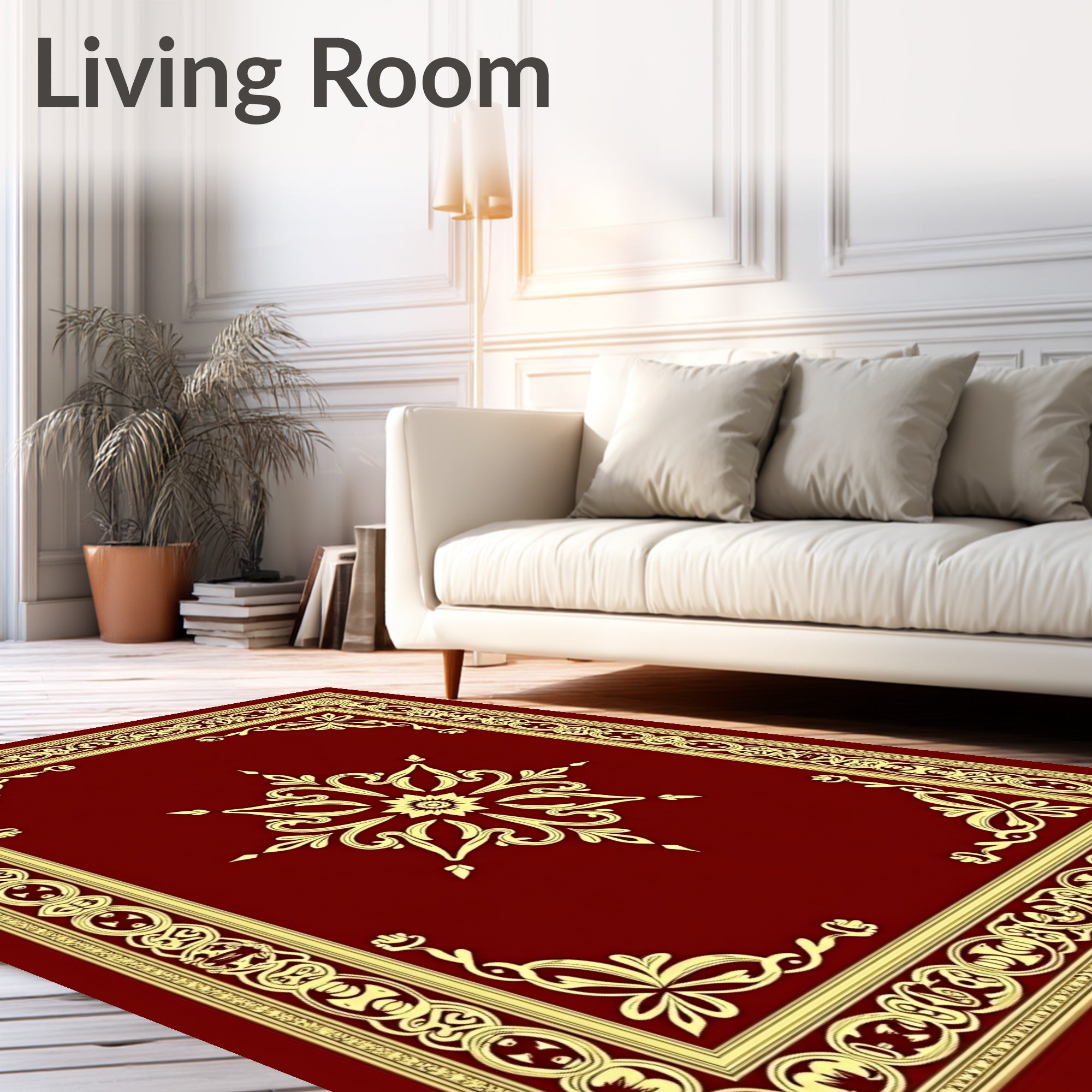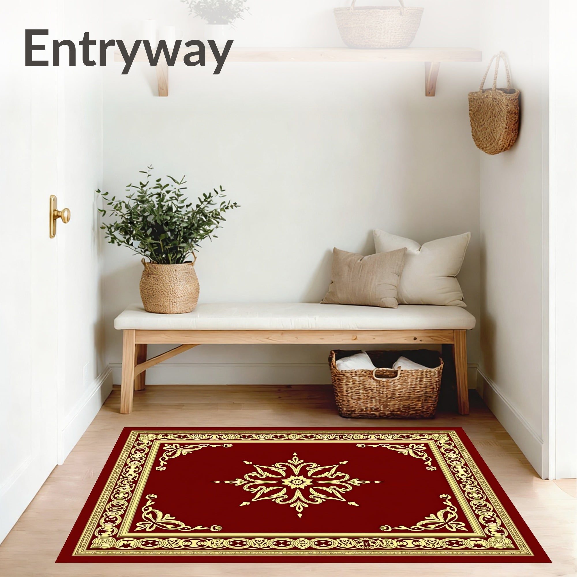 Ultra Soft Area Rug, Non Slip, Stain Resistant, Washable Area Rugs for Living Room, Bedroom, Damask Brocade with Vintage Court Elegance(Burgundy) Overview: