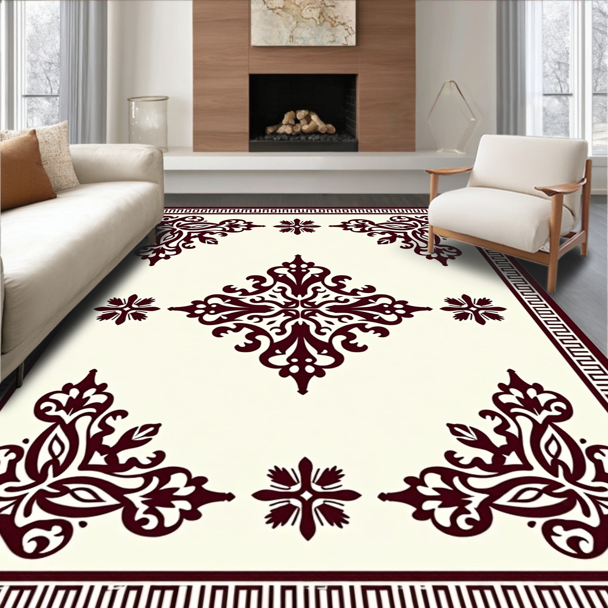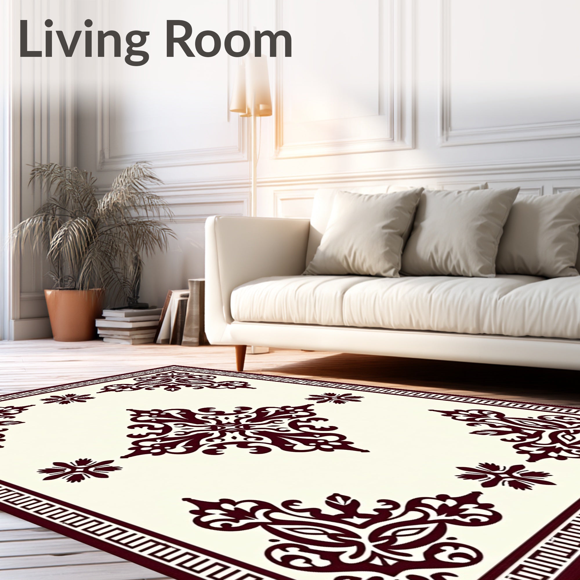 Ultra Soft Area Rug, Non Slip, Stain Resistant, Washable Area Rugs for Living Room, Bedroom, Damask Court Heirloom Treasure Ancient(Ivory) Overview: