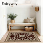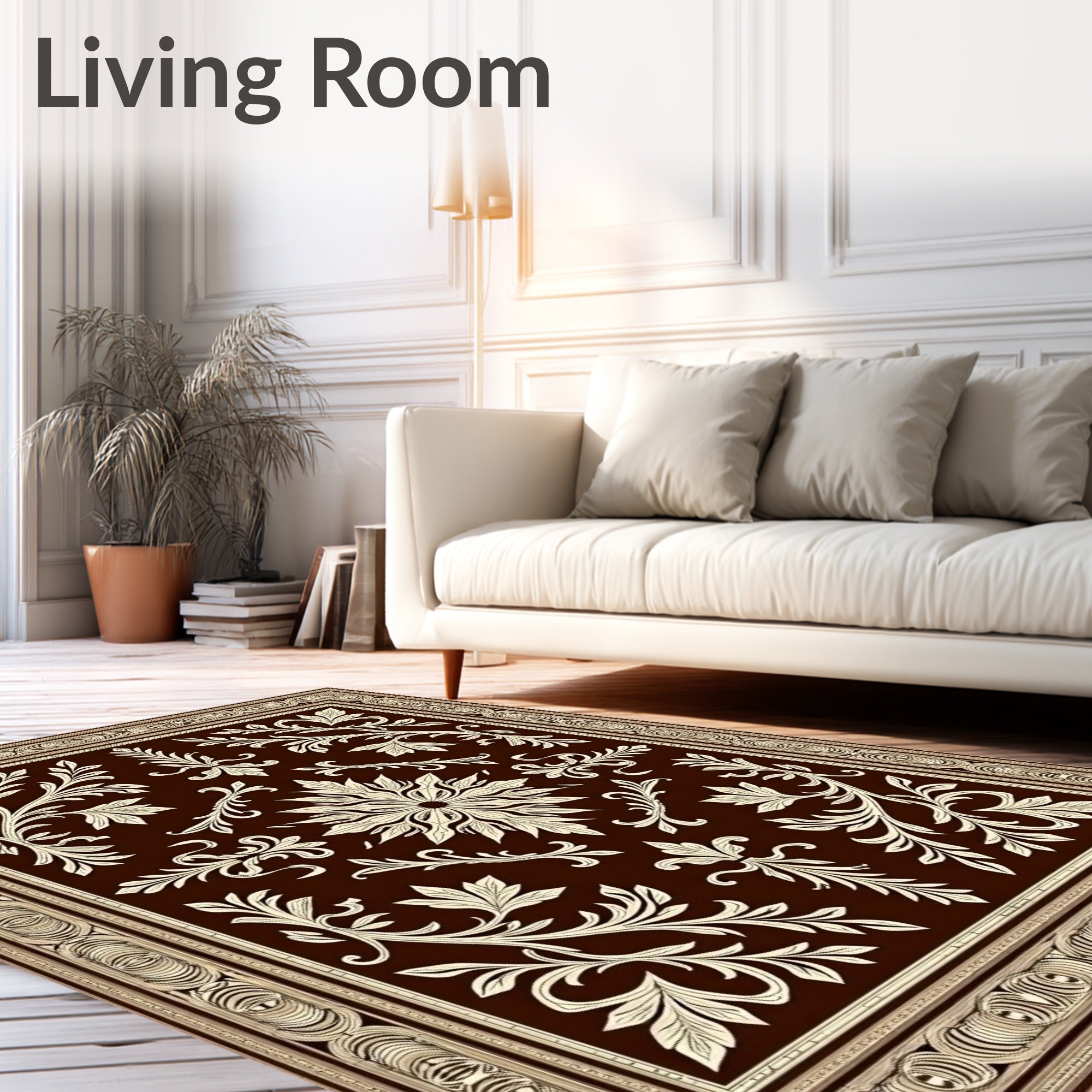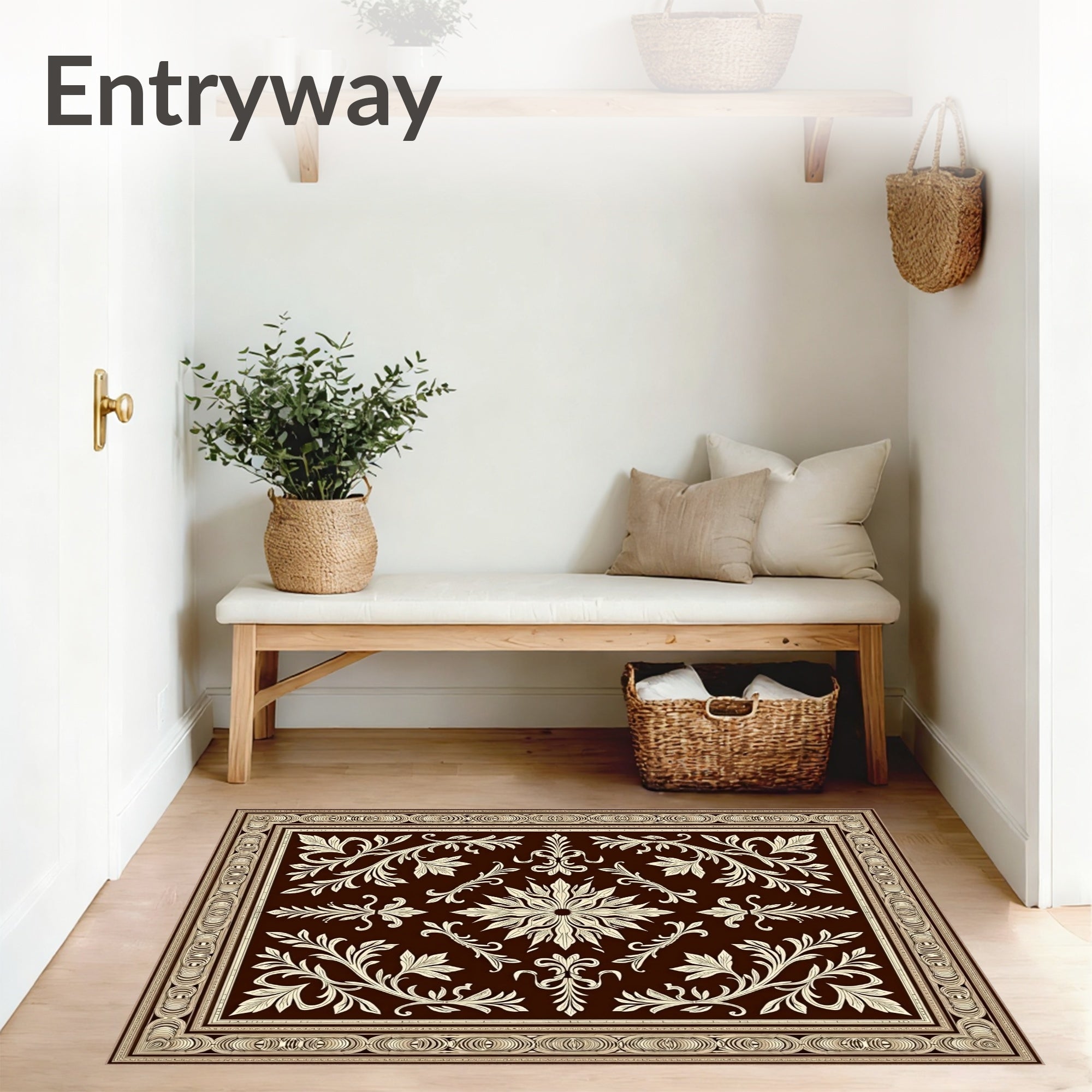 Ultra Soft Area Rug, Non Slip, Stain Resistant, Washable Area Rugs for Living Room, Bedroom, Damask Floral with Traditional European Elegance(Brown) Overview: