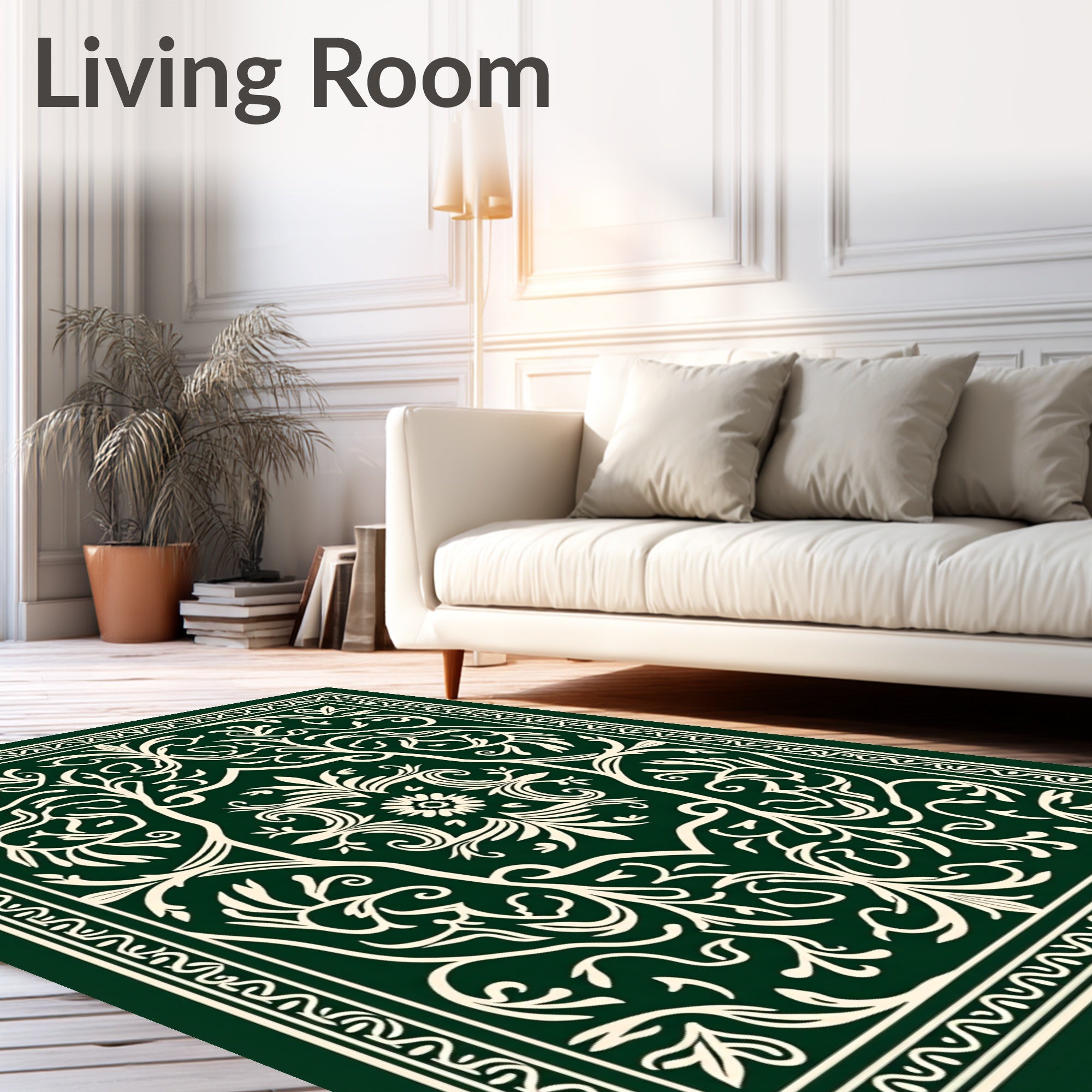 Ultra Soft Area Rug, Non Slip, Stain Resistant, Washable Area Rugs for Living Room, Bedroom, Damask Flourish Area Elegant Scrollwork(Green) Overview: