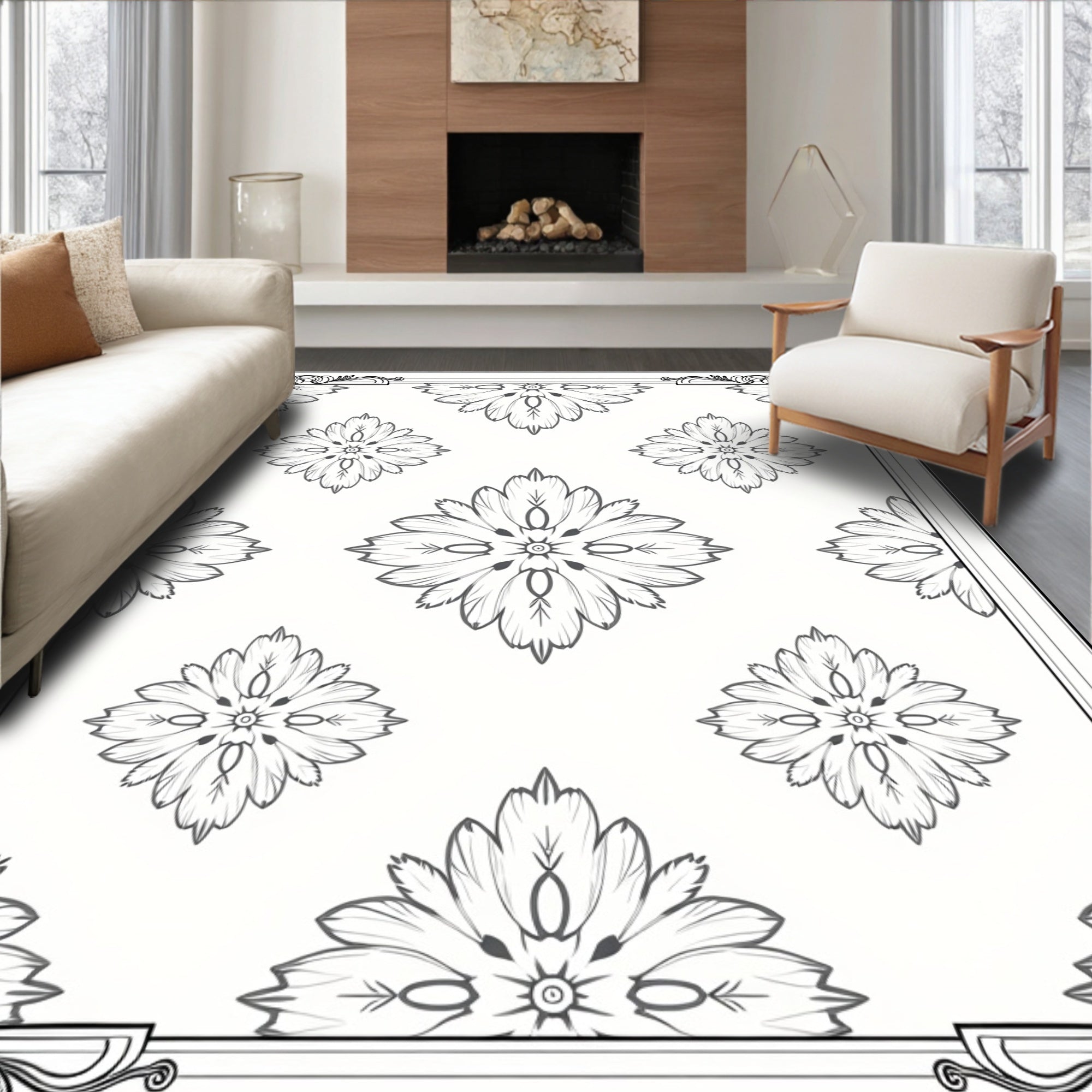Ultra Soft Area Rug, Non Slip, Stain Resistant, Washable Area Rugs for Living Room, Bedroom, Damask Heirloom Artistry(White) Overview: