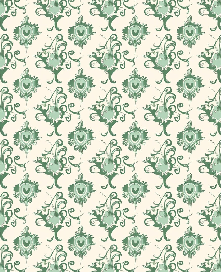 Damask Ornamental Scrollwork Floral Majesty(Green)