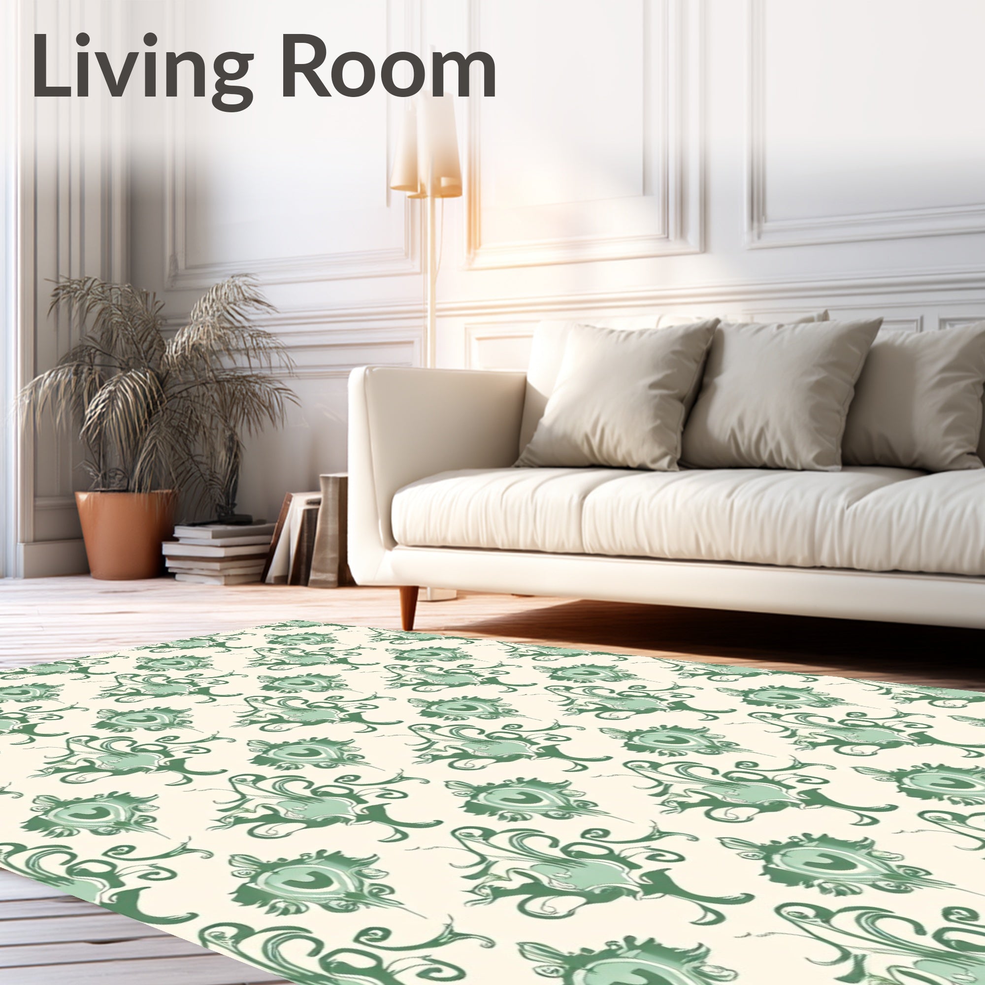 Ultra Soft Area Rug, Non Slip, Stain Resistant, Washable Area Rugs for Living Room, Bedroom, Damask Ornamental Scrollwork Floral Majesty(Green) Overview: