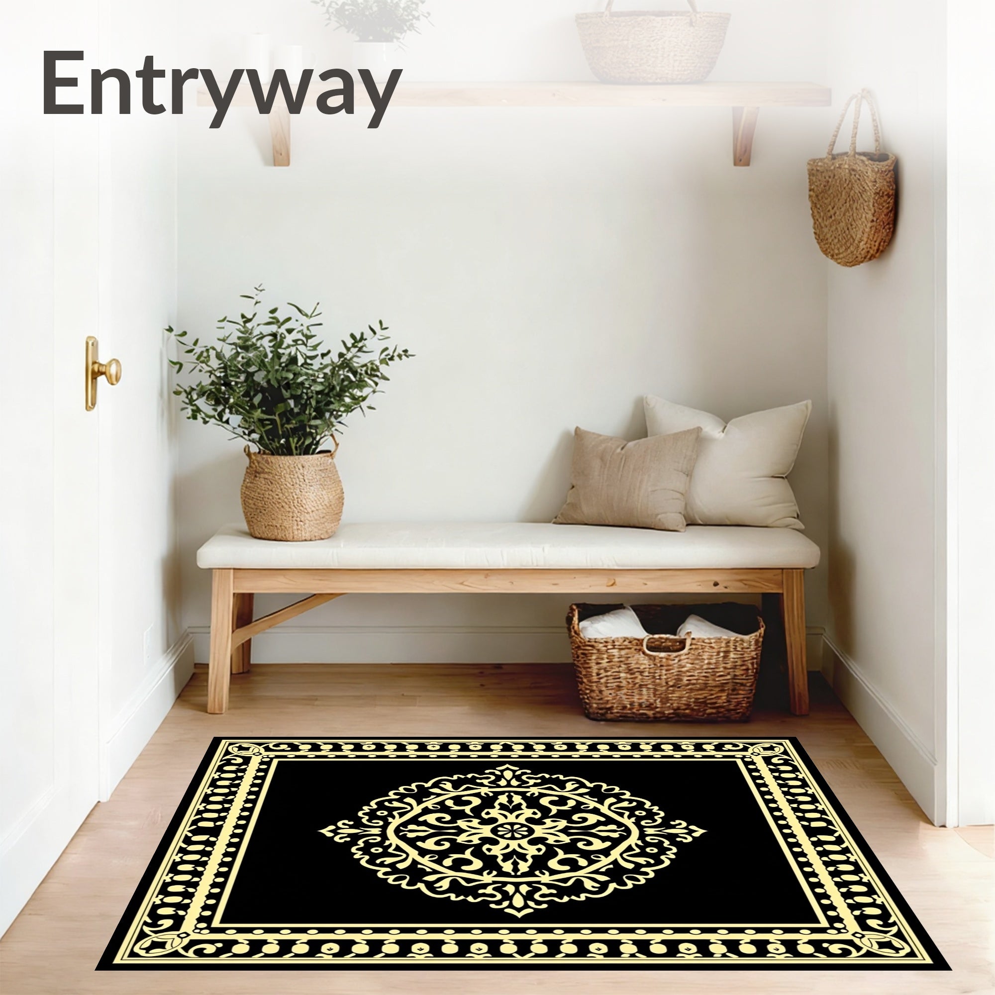 Ultra Soft Area Rug, Non Slip, Stain Resistant, Washable Area Rugs for Living Room, Bedroom, Damask Scroll Trellis Ornamental Faded Heritage(Black) Overview: