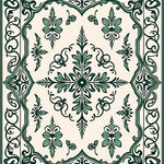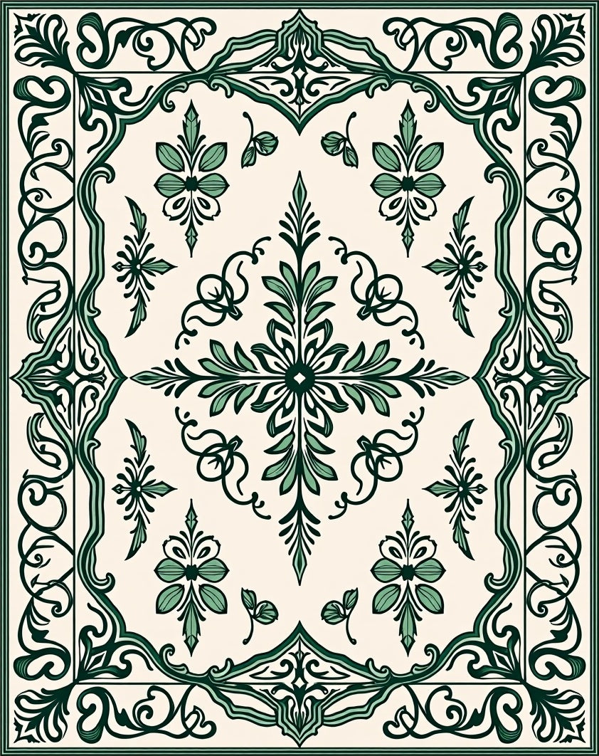 Damask Scrollwork Design with Ornate Flourish(Green)