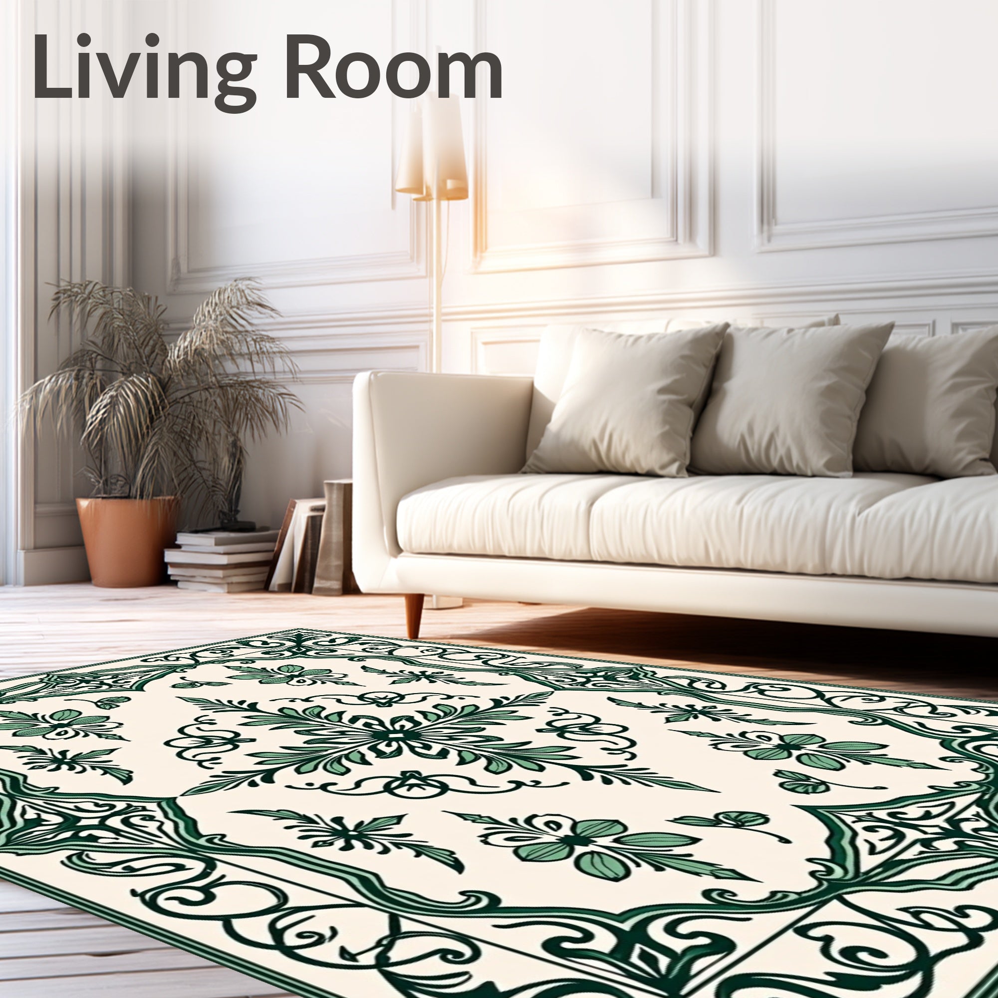 Ultra Soft Area Rug, Non Slip, Stain Resistant, Washable Area Rugs for Living Room, Bedroom, Damask Scrollwork Design with Ornate Flourish(Green) Overview: